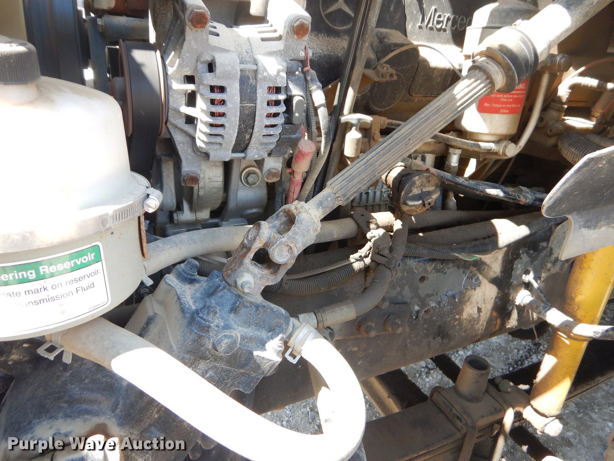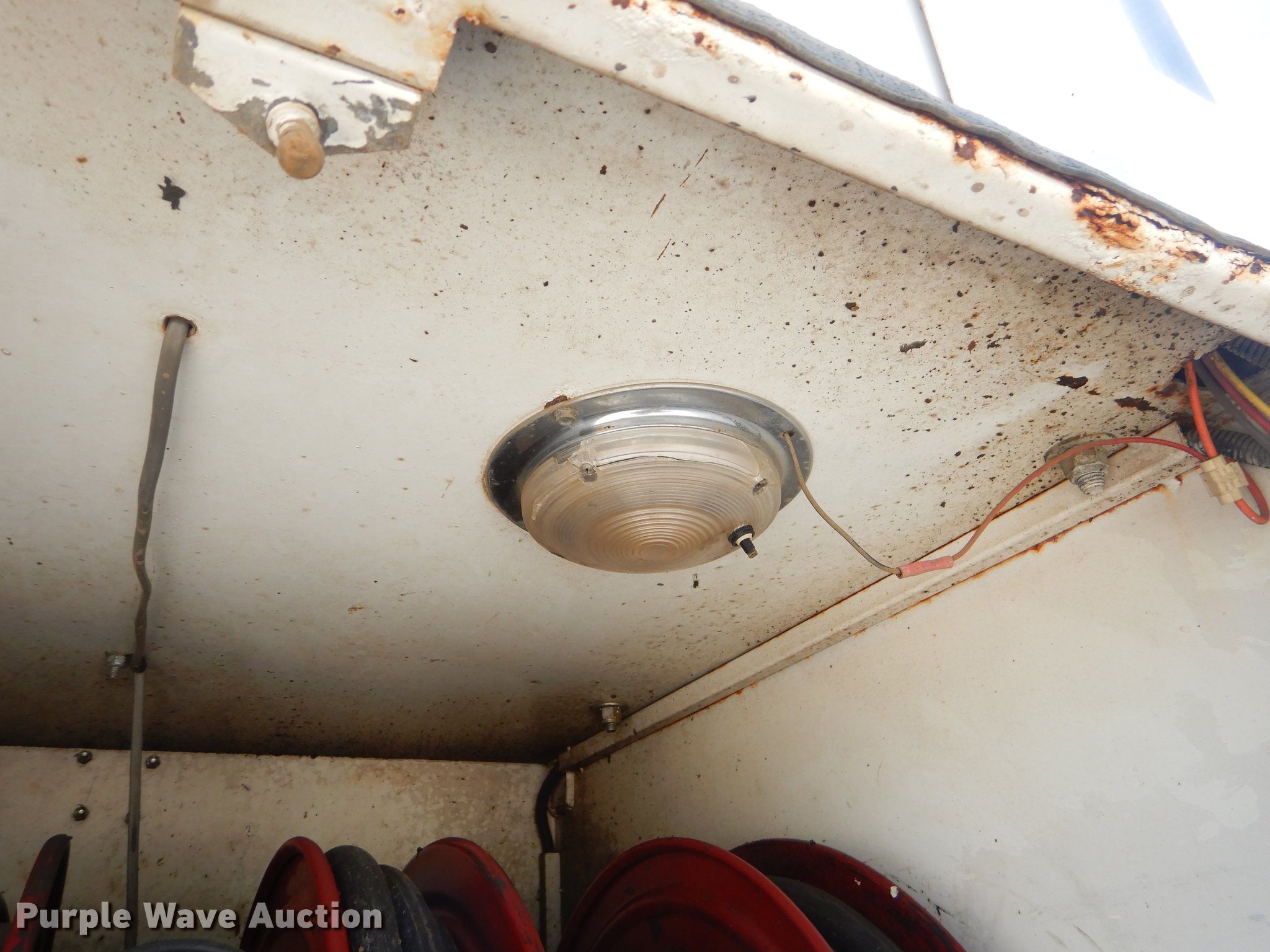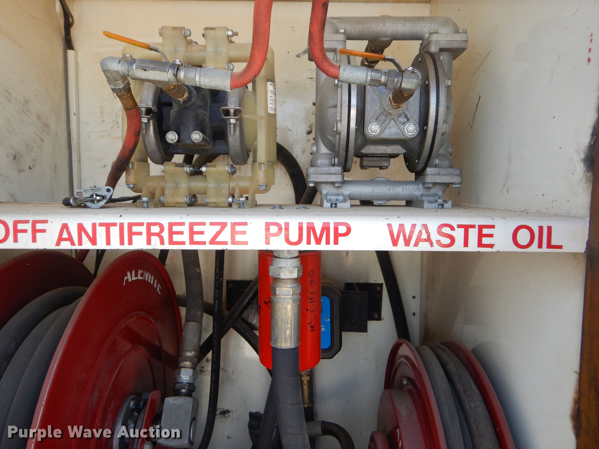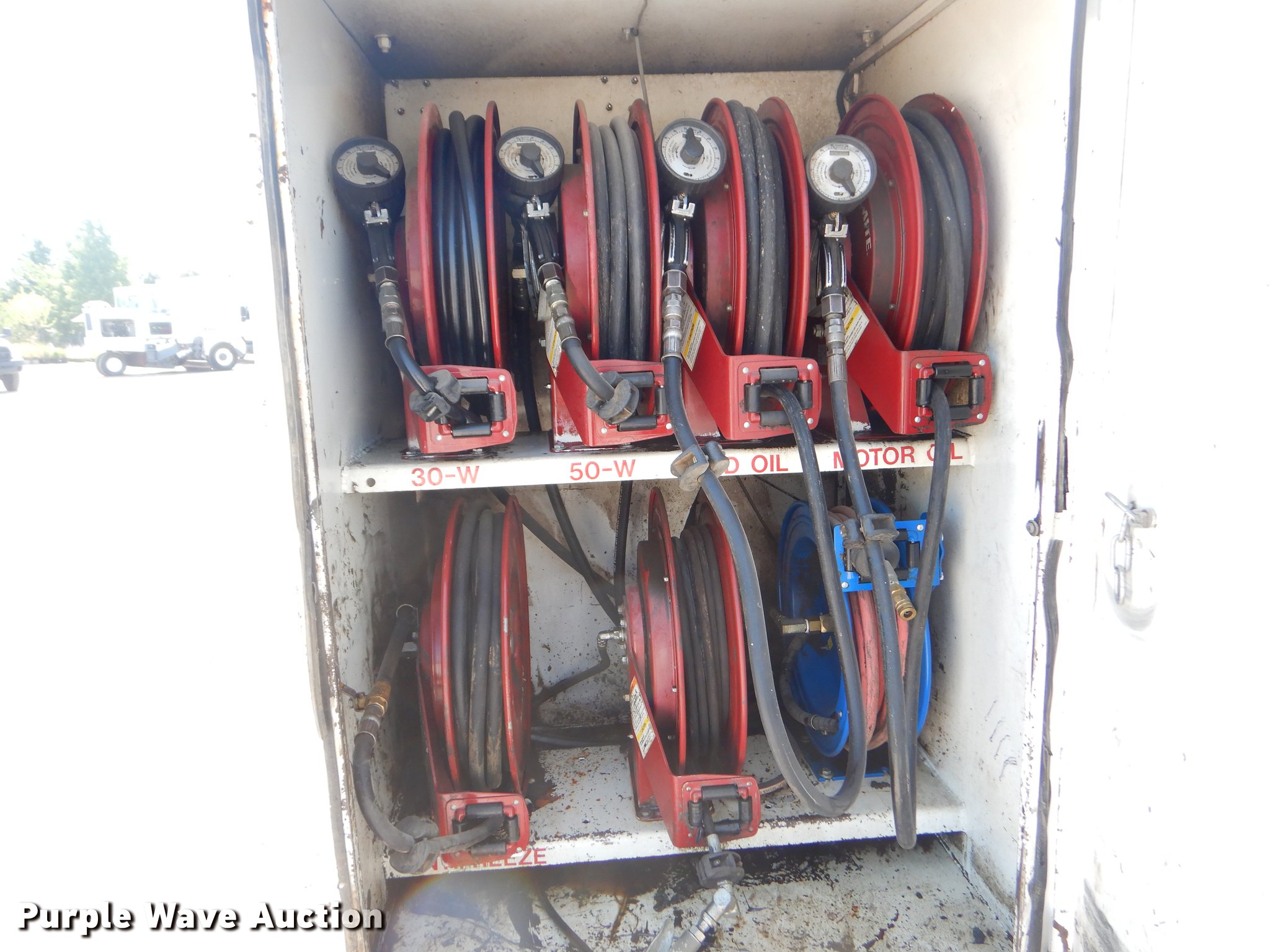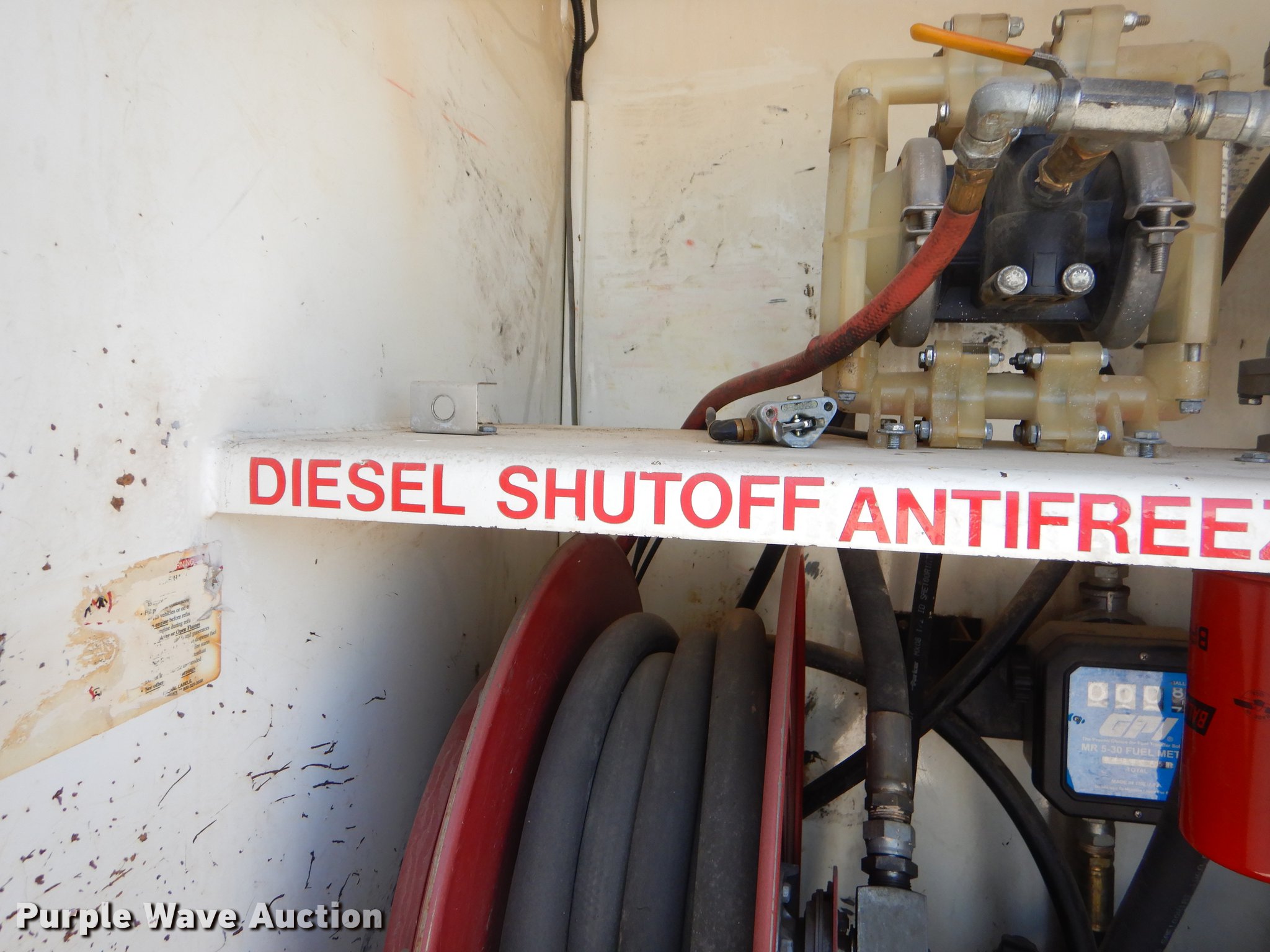 Purple Wave is selling a used Fuel Truck in Oklahoma. This item is a 2007 Sterling A-Line fuel and lube truck with the following: 293,064 miles on odometer, 19,923 hours on meter, Mercedes Benz MBE 4000 12.0L I6 turbo diesel engine, 450 HP, Eaton Fuller Road Ranger 10 speed manual transmission, Tandem axle, AC and heat, AM/FM/CD, Air suspension seat, PTO, Wet kit, 21'L fuel and lube bed, (4) toolboxes, 1,800W power inverter, Antifreeze compartment, Automatic transmission fluid compartment, Gear oil compartment, Hydraulic oil compartment, Motor oil compartment, Waste oil compartment, Waste oil nozzle missing, Hose reels, Nozzles, Auxiliary fuel tank, Pump, Nozzles,, Auto Crane air compressor, Hose reel, Work lights, Single exhaust stack, Dual fuel tanks, Air suspension, Air brakes, 11R22.5 front tires, 295/75R22.5 rear tires