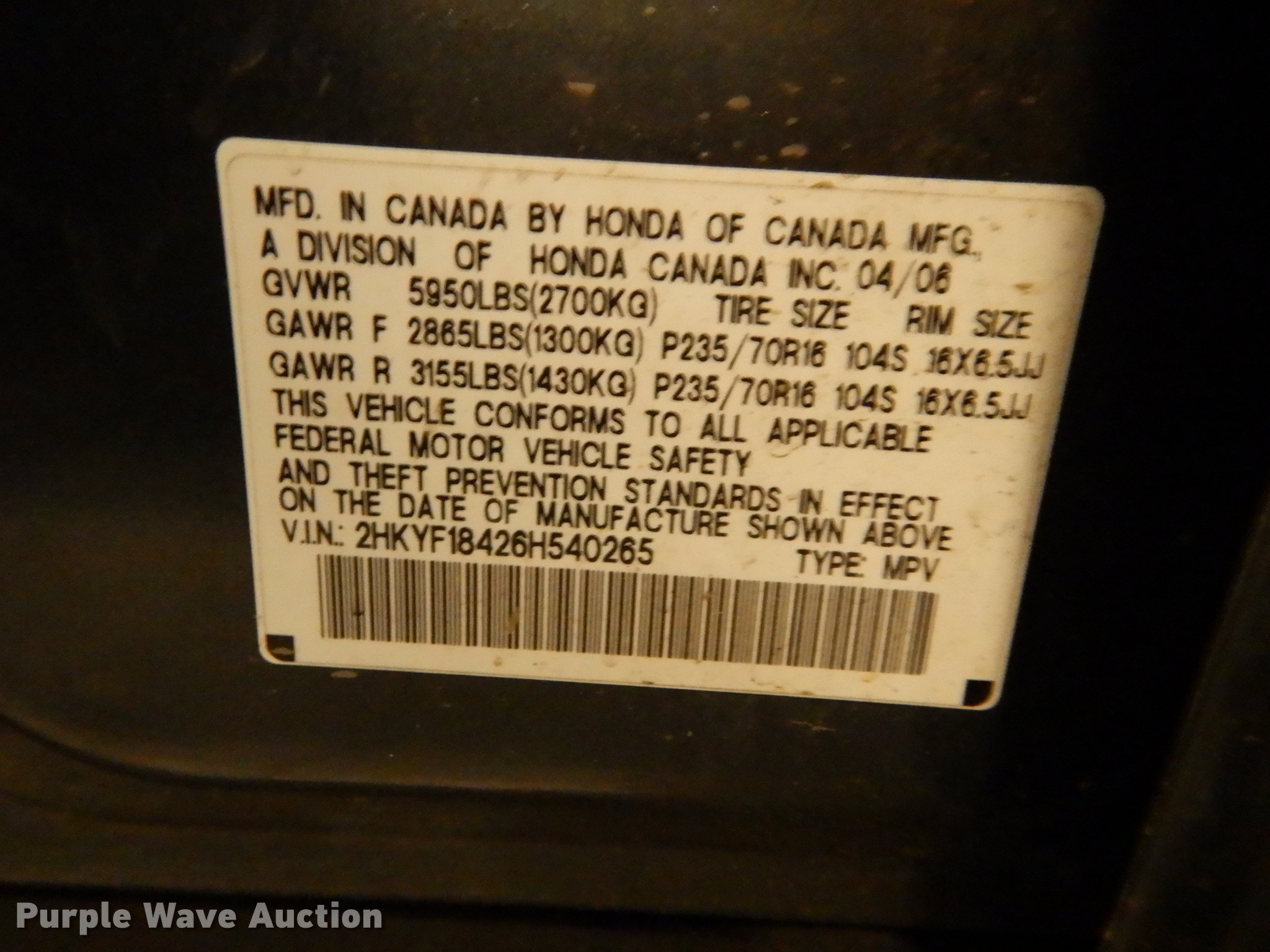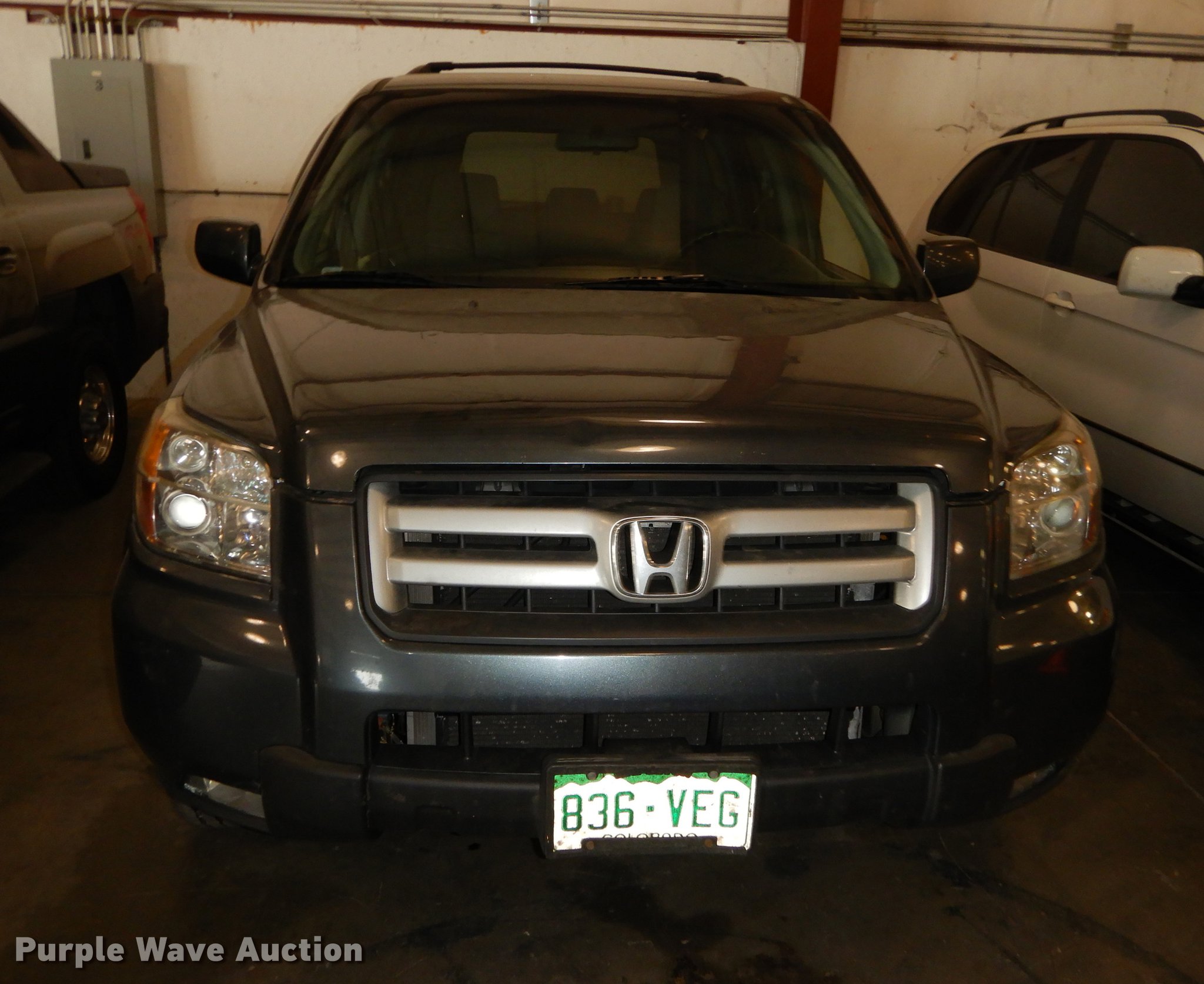 Purple Wave is selling a used Passenger Vehicle in Kansas. This item is a 2006 Honda Pilot SUV with the following: 275,290 miles on odometer, 3.5L V6 SOHC 24V gas engine, Automatic transmission, All wheel drive, AC and heat, Tilt, Cruise, AM/FM/CD, Power windows, locks, mirrors, and seat, Cloth interior, Fog lights, Receiver hitch, Trailer wiring, Goodyear 225/75R16 tires, Dead battery, Hail damage