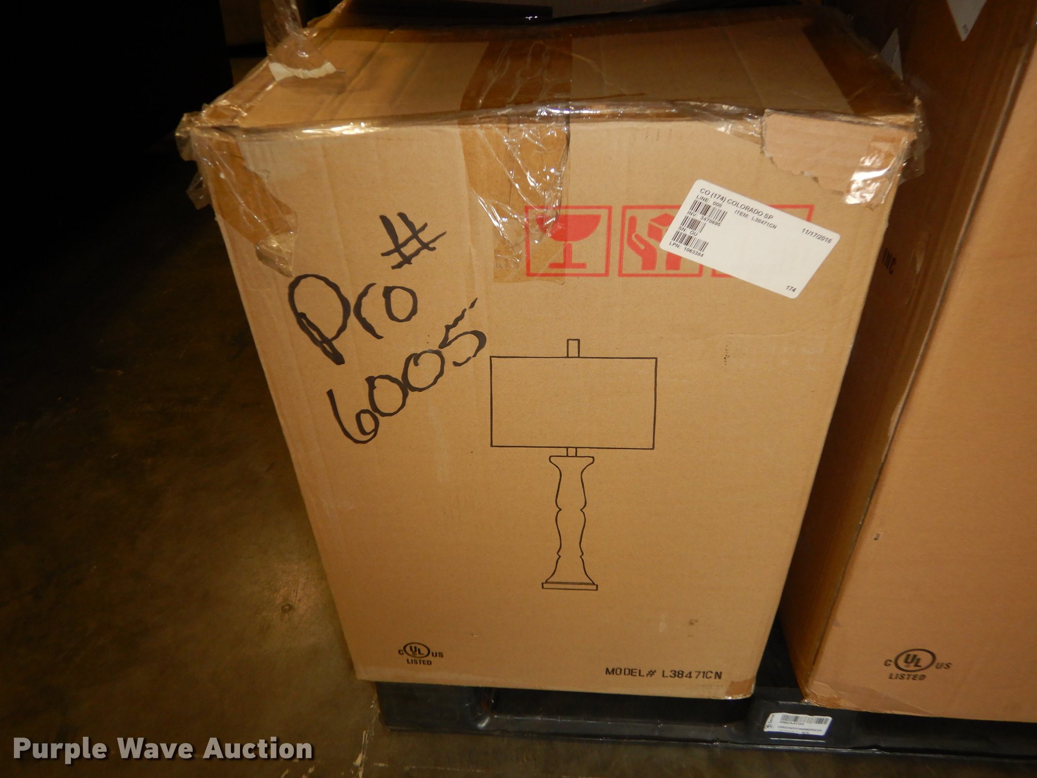 Purple Wave is selling a used All Other Household Items in Kansas. This item is a Home decor with the following: Austin mirror, (4) Craft lamps, Conn's mirrors, Conn's end table glass tops, Unused