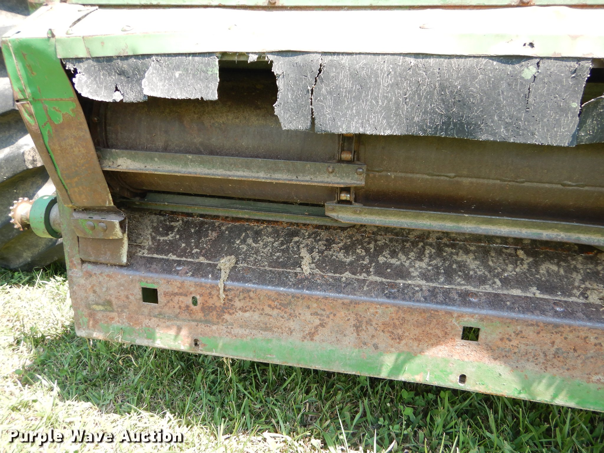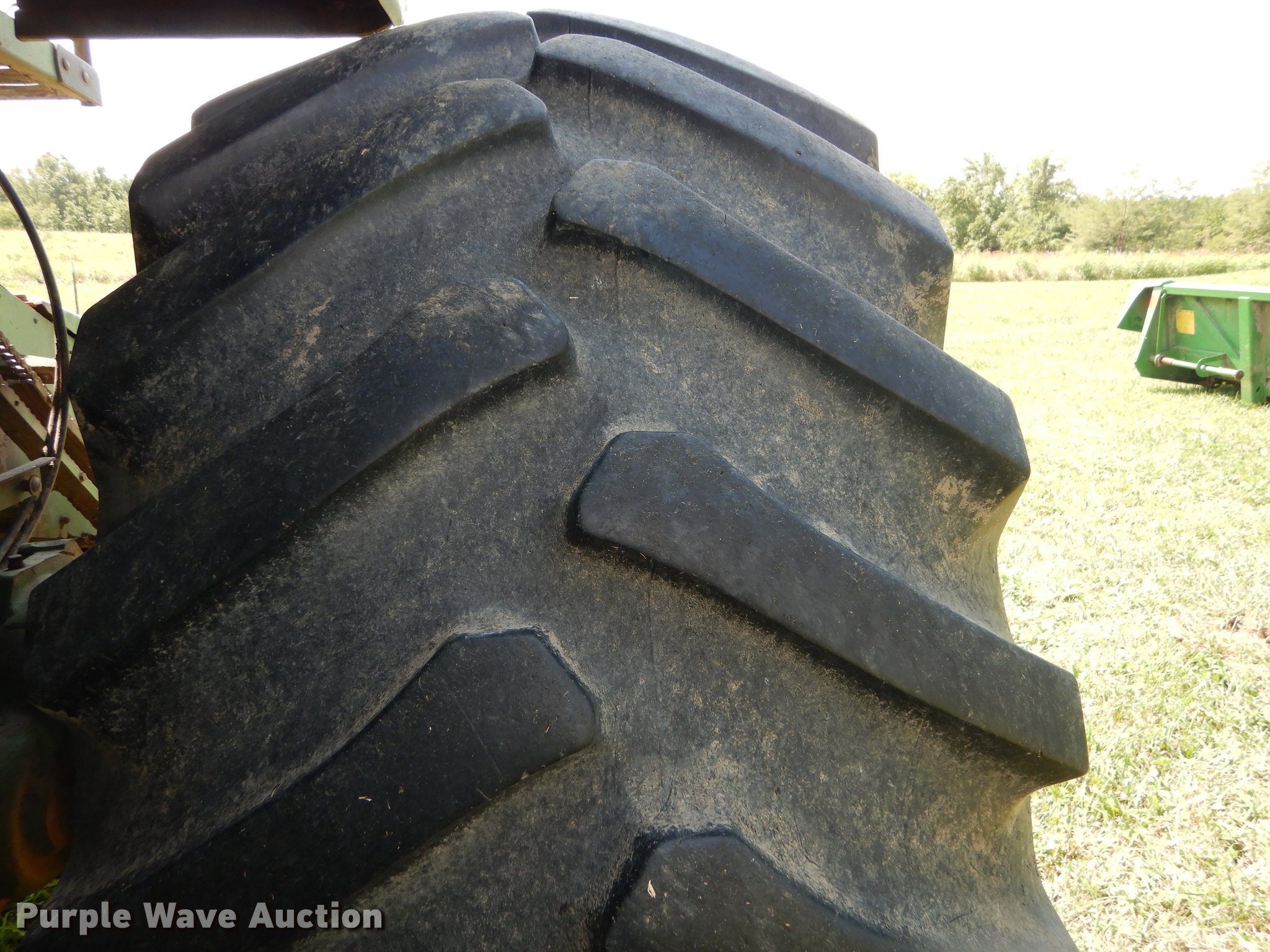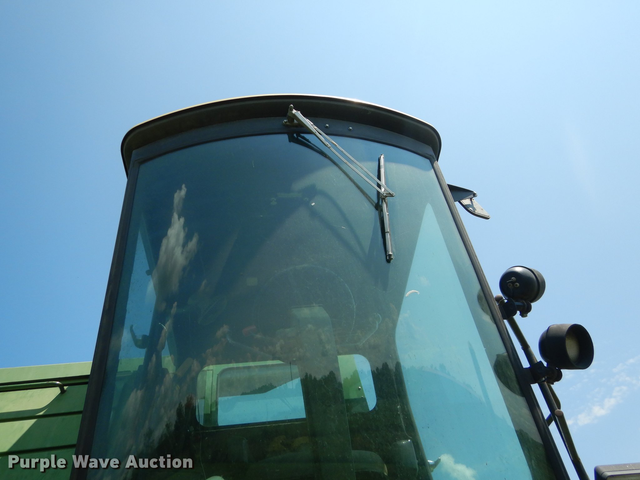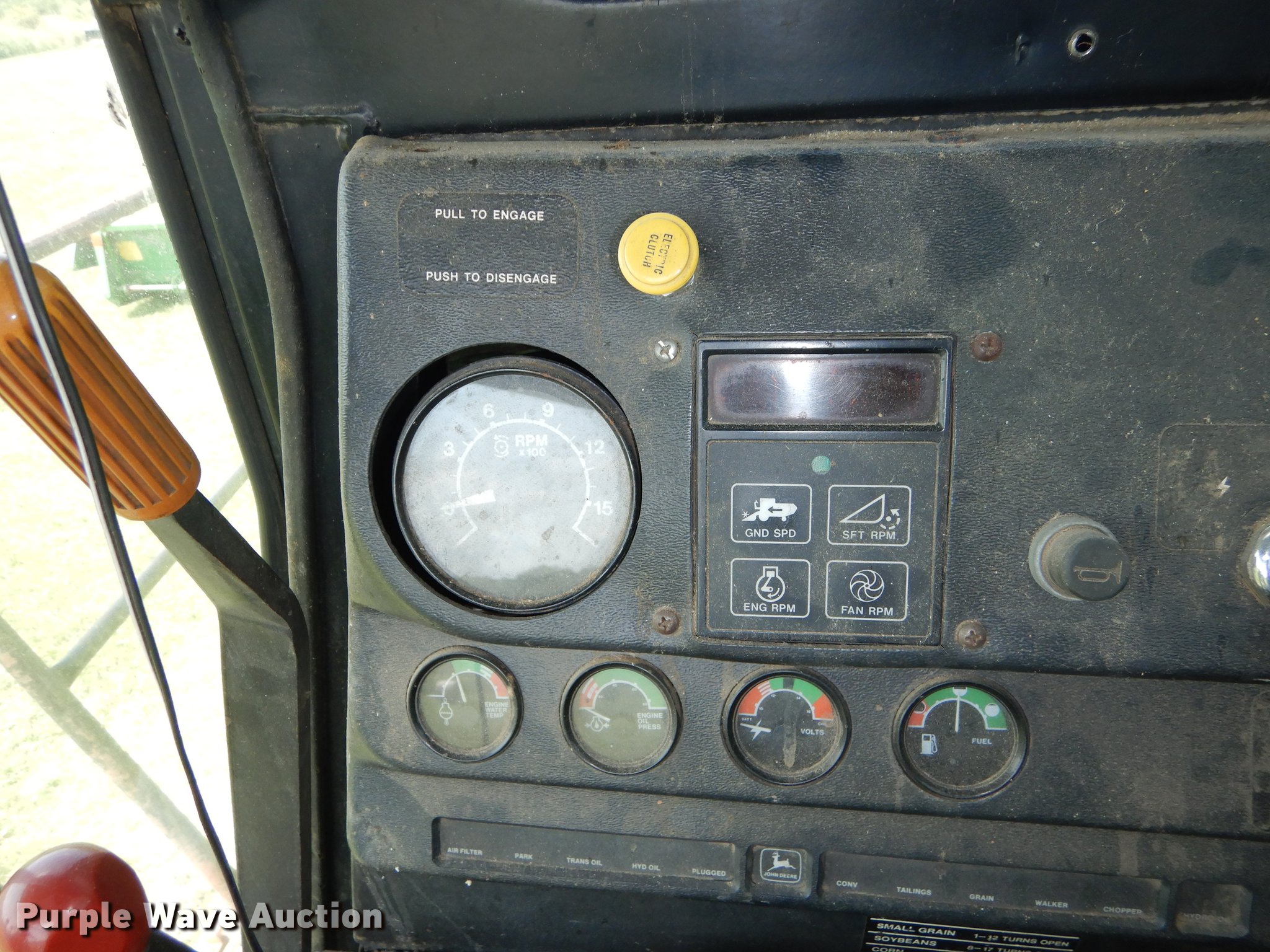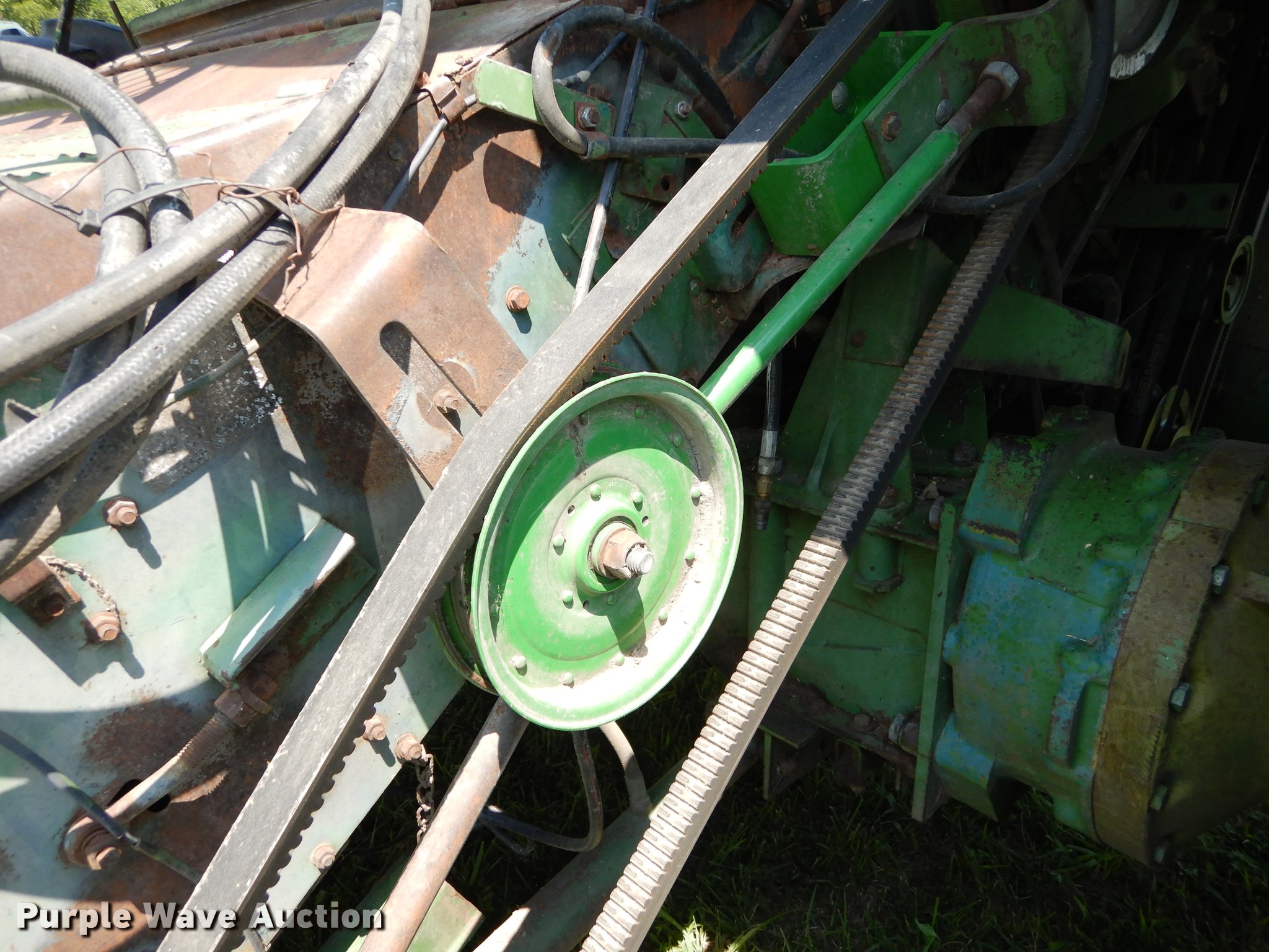 Purple Wave is selling a used Combine in Kansas. This item is a 1980 John Deere 8820 combine with the following: 2,257 engine hours on meter, John Deere six cylinder turbo diesel engine, Hydrostatic transmission, AC and heat, AM/FM, Tilt steering wheel, Wipers, Work lights, Straw chopper, 200 bu. grain bin, 12'L unloading auger, Firestone 30.5-32 front tires, Firestone 16.9-26 rear tires, Non-operational AC, One conveyor auger missing, Battery dead, Serial 416172