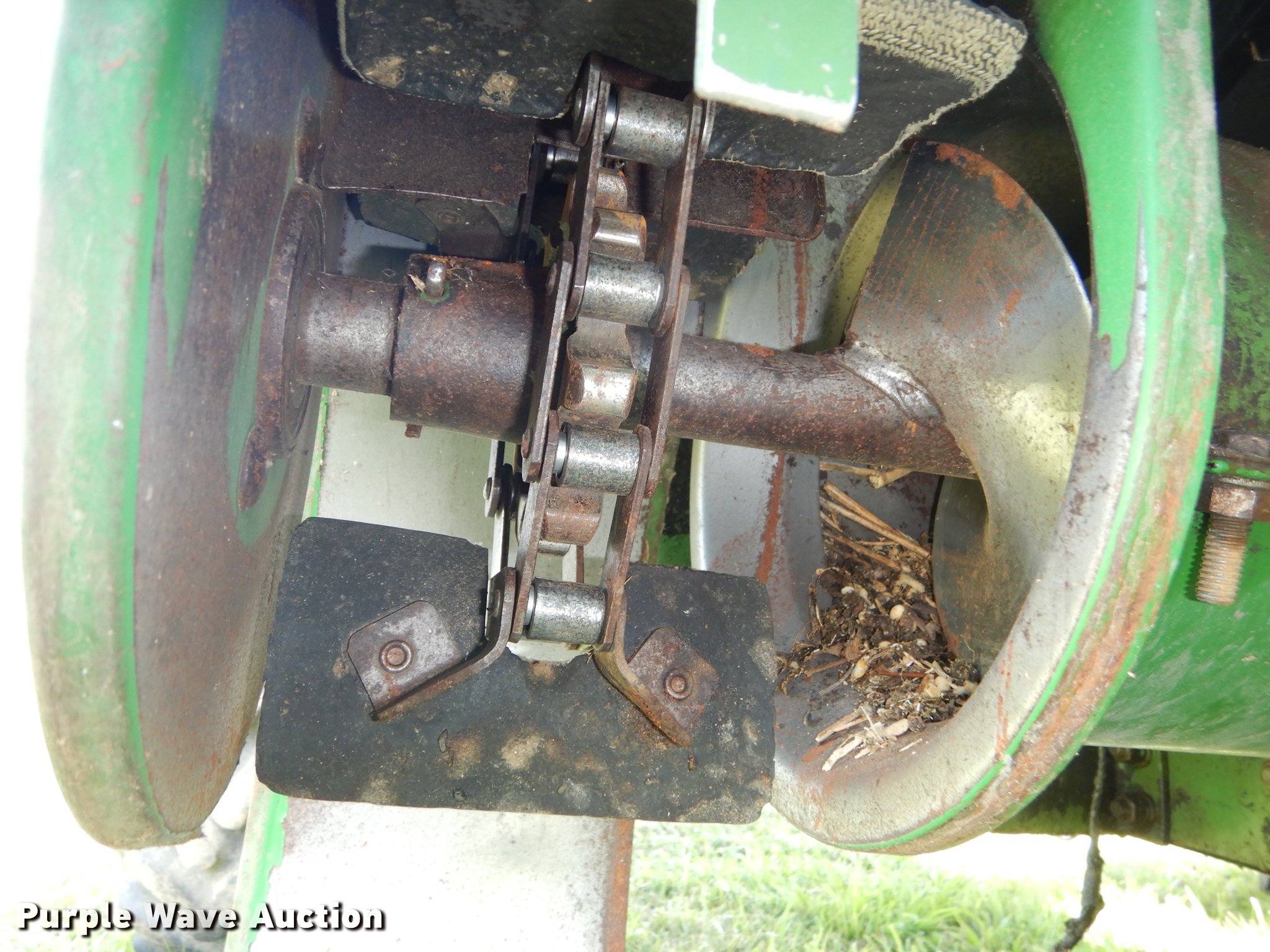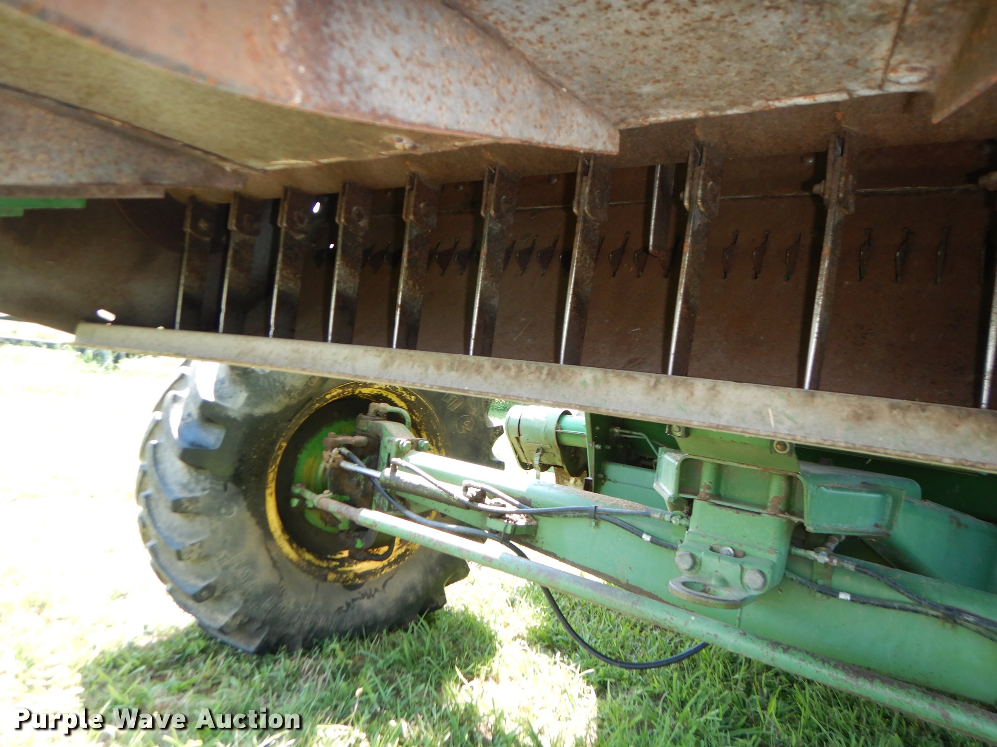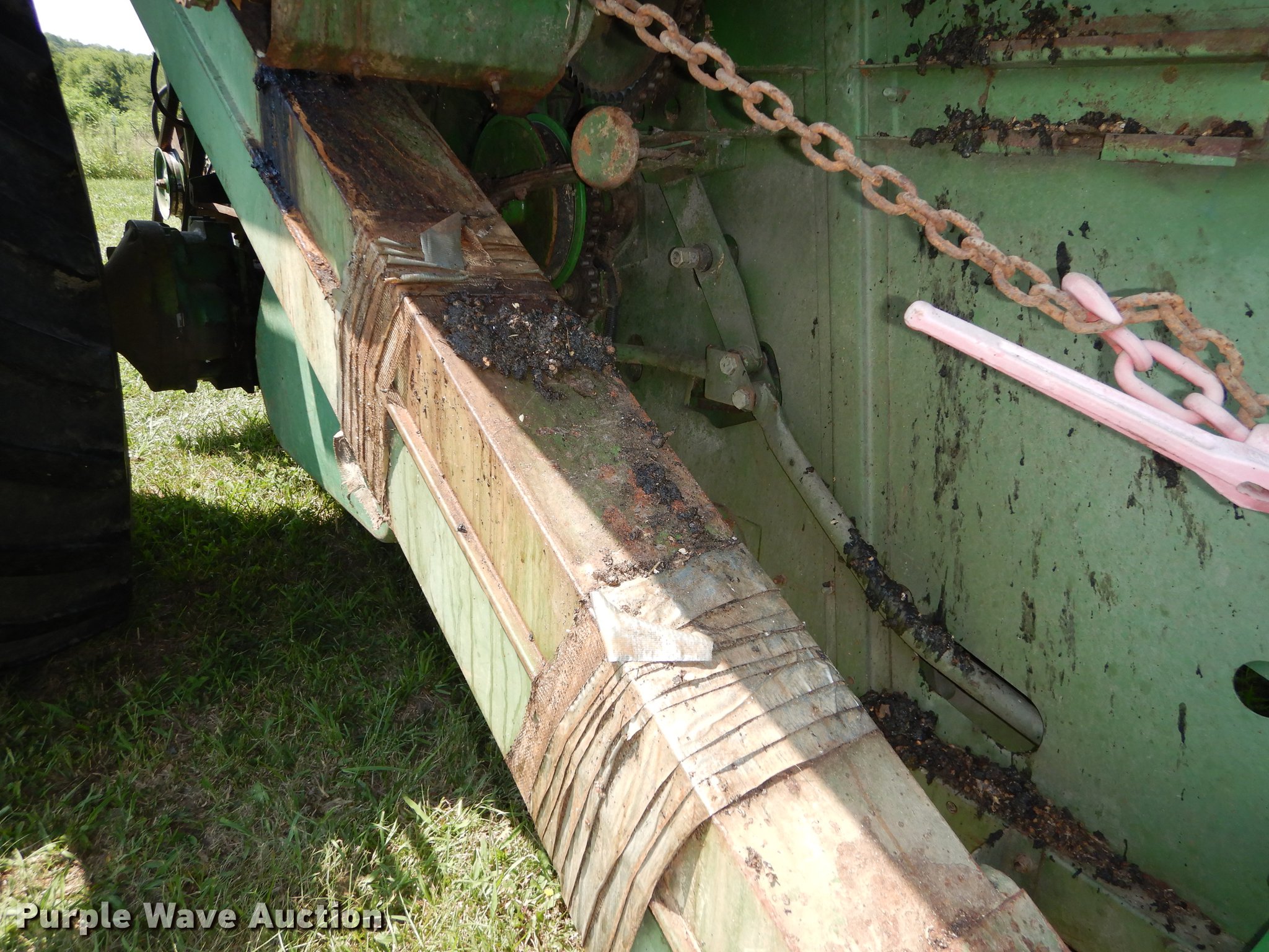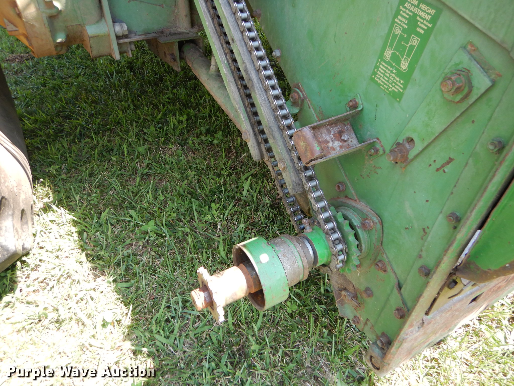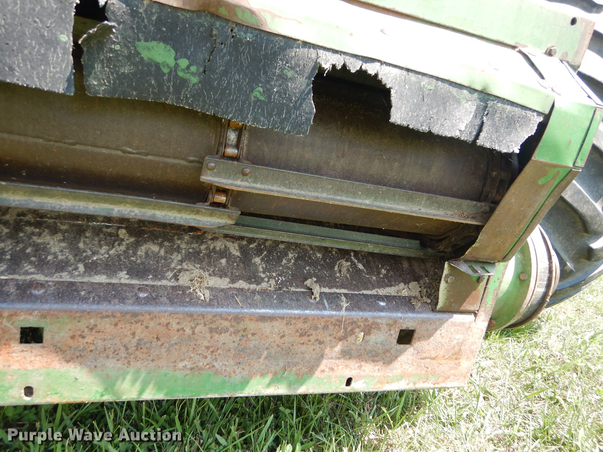 Purple Wave is selling a used Combine in Kansas. This item is a 1980 John Deere 8820 combine with the following: 2,257 engine hours on meter, John Deere six cylinder turbo diesel engine, Hydrostatic transmission, AC and heat, AM/FM, Tilt steering wheel, Wipers, Work lights, Straw chopper, 200 bu. grain bin, 12'L unloading auger, Firestone 30.5-32 front tires, Firestone 16.9-26 rear tires, Non-operational AC, One conveyor auger missing, Battery dead, Serial 416172