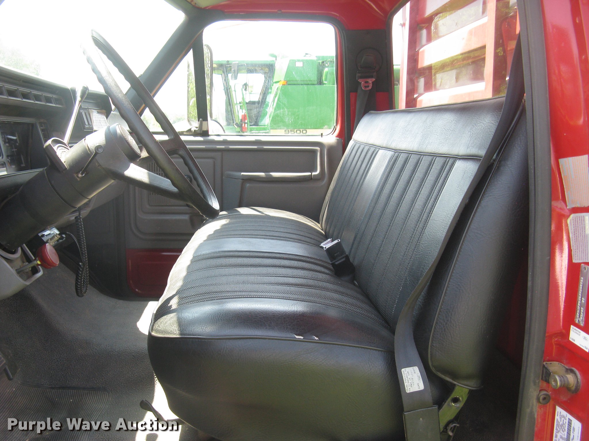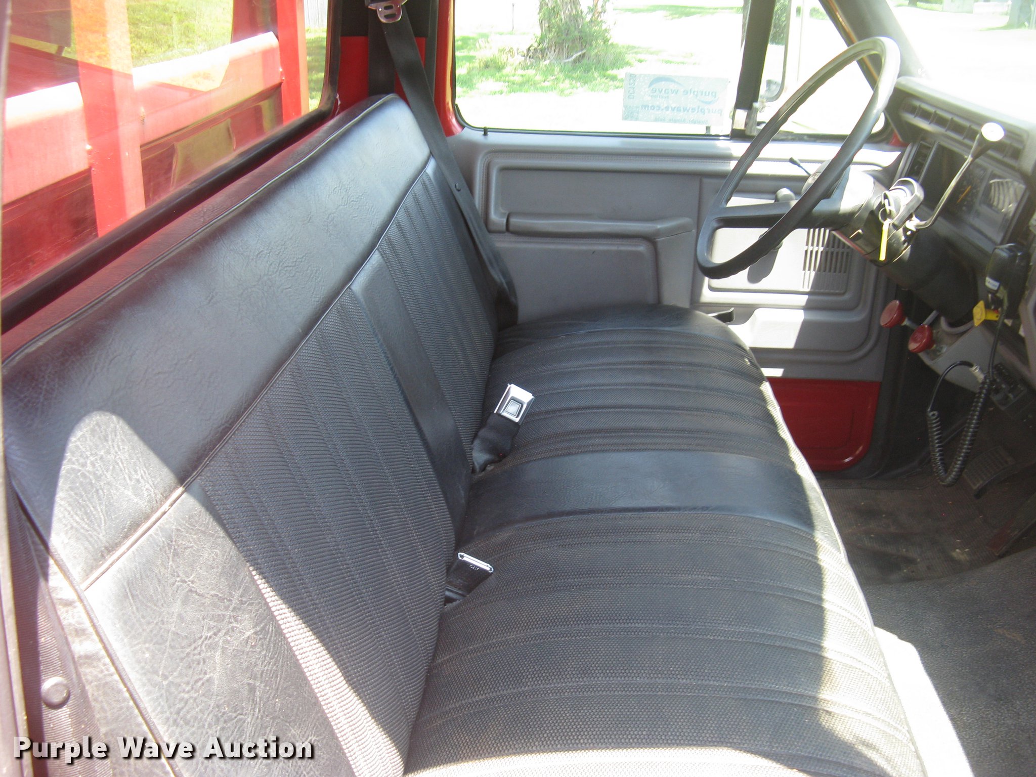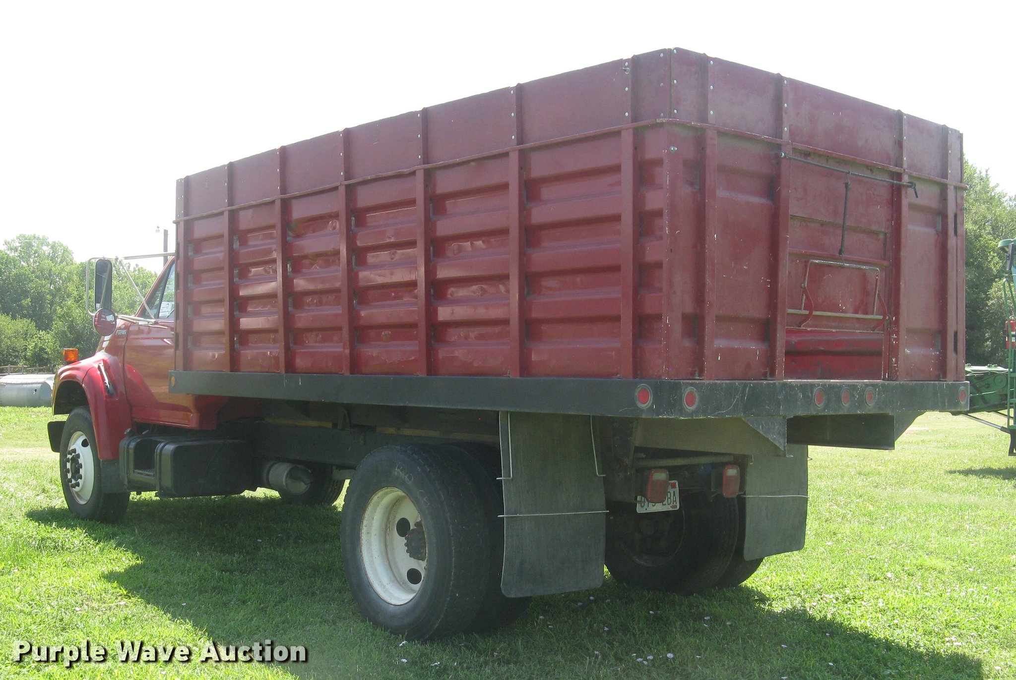Purple Wave is selling a used Grain Truck in Kansas. This item is a 1998 Ford F700 grain truck with the following: 119,523 miles on odometer, 7.0L V8 gas engine, Allison AT545N automatic transmission, Single axle, AC and heat, AM/FM, CB radio, PTO, Rugby grain bed, 15'L x 94"W, 40" side height, 12" side board height, Single ram hoist, Manual grain door end gate, 350 to 390 bushel capacity, Single fuel tank, Spring suspension, Hydraulic brakes, 295/75R22.5 front tires, 275/80R22.5 rear tires, 295/75R22.5 rear tires, GVWR 25,900 lbs, FAWR 9,000 lbs, RAWR 16,900 lbs