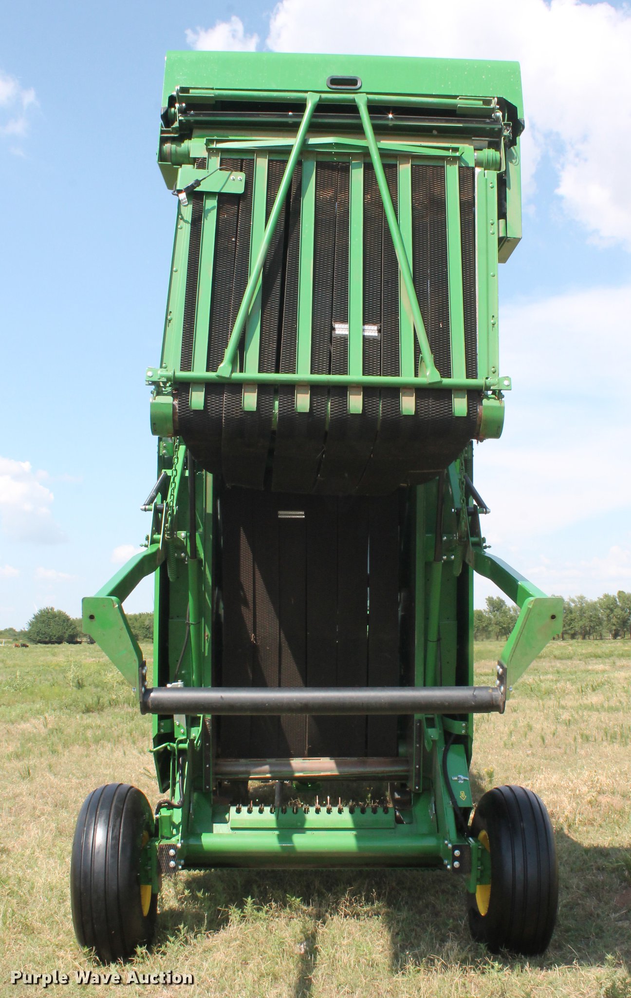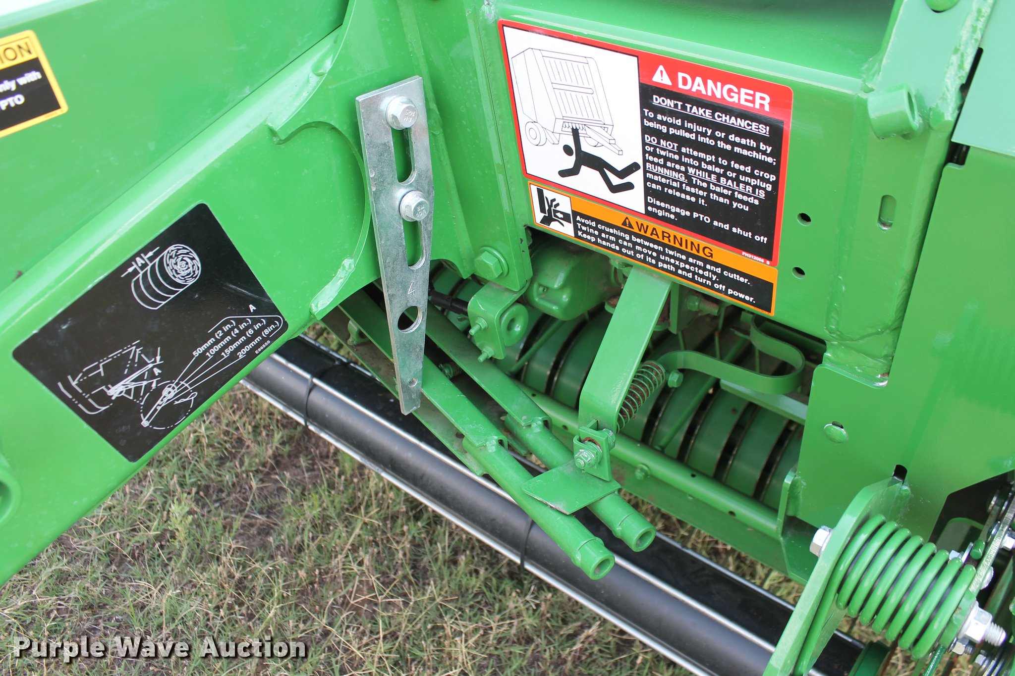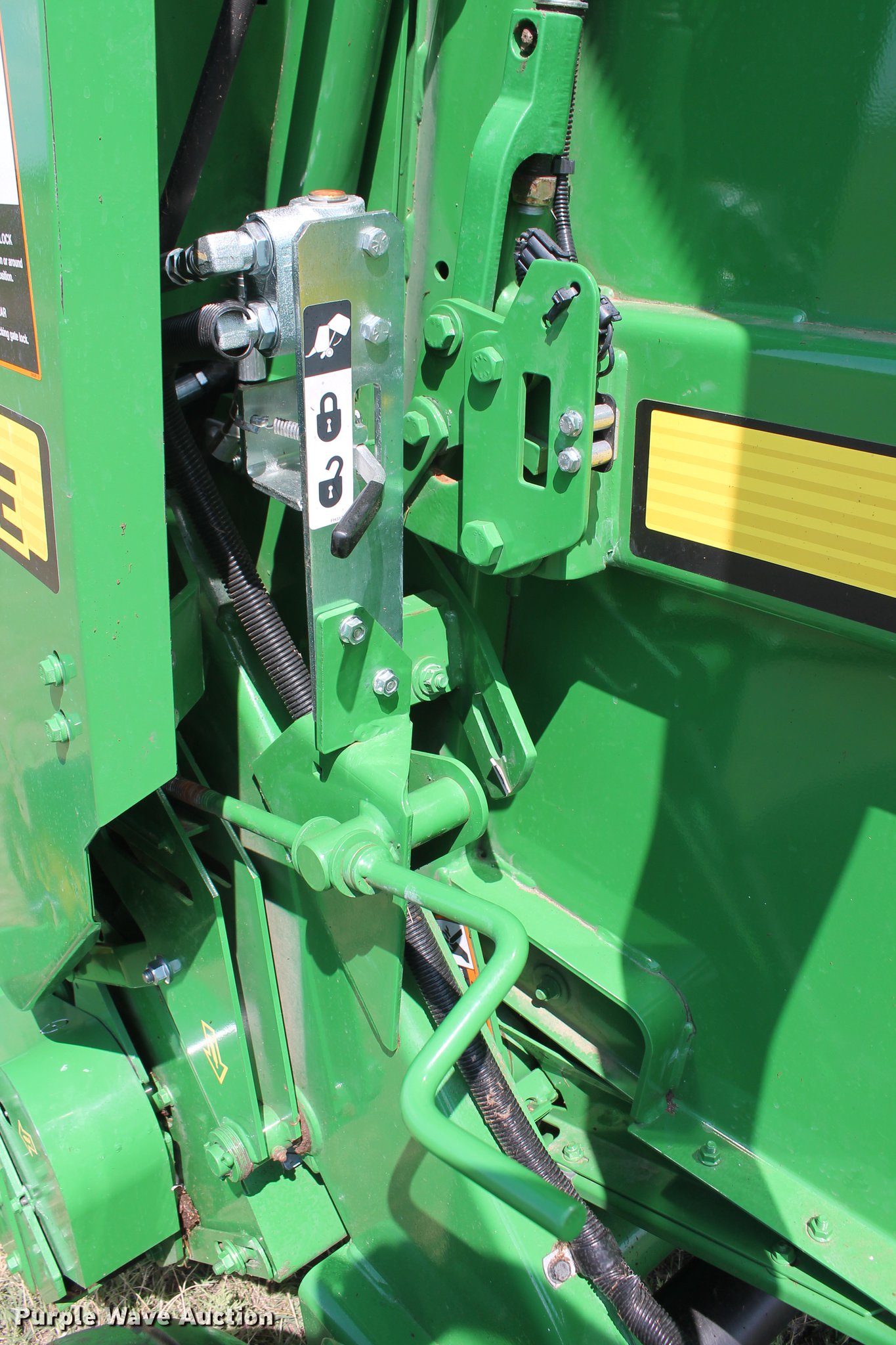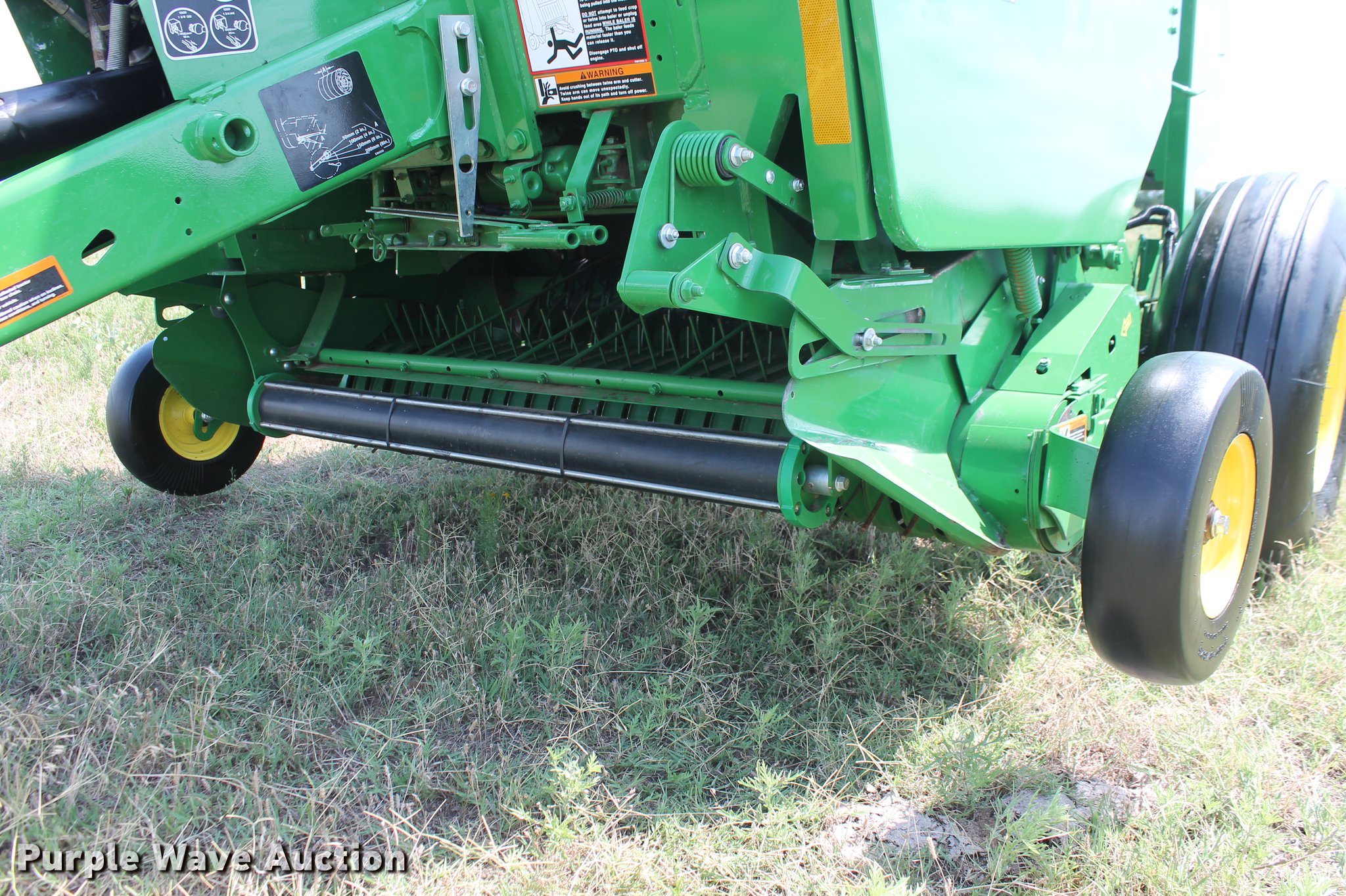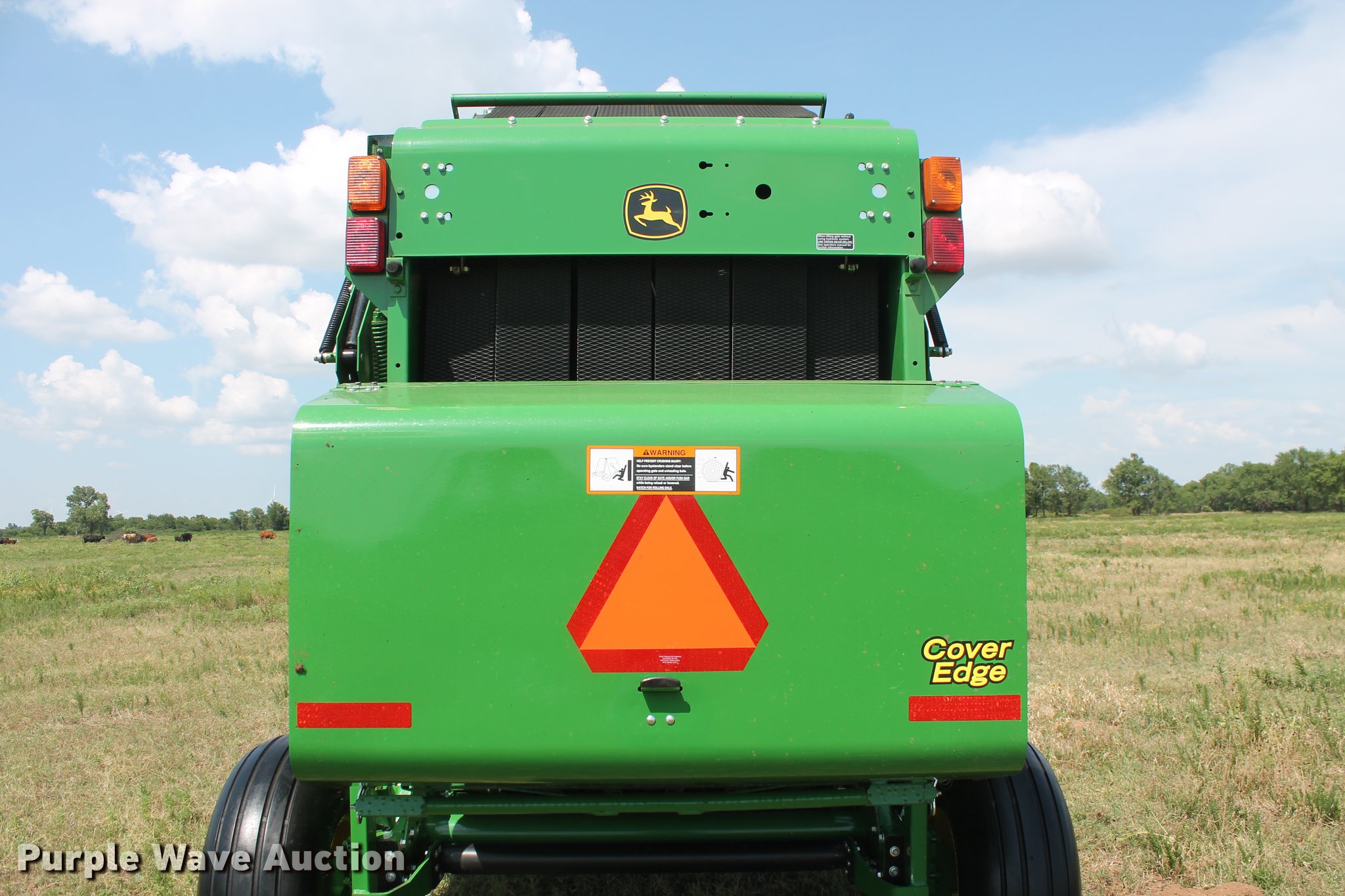 Purple Wave is selling a used Round Baler in Oklahoma. This item is a 2017 John Deere 469 Mega Wide Plus Silage Special round baler with the following: 504 bale count, 4' x 6' bale capacity, 60"W pickup, Hydraulic pickup lift, 4.80-8/3.75 gauge wheels, Rotor cutter, Feed assist roller, John Deere Bale Rak Pro AFH210762 monitor, Auto-tie, Twin twine tie, CoverEdge net-wrap, Bale kicker, Transport lights, Pin hitch, Goodyear 14L-16.1SL tires, Serial 1E00469SLHH432043