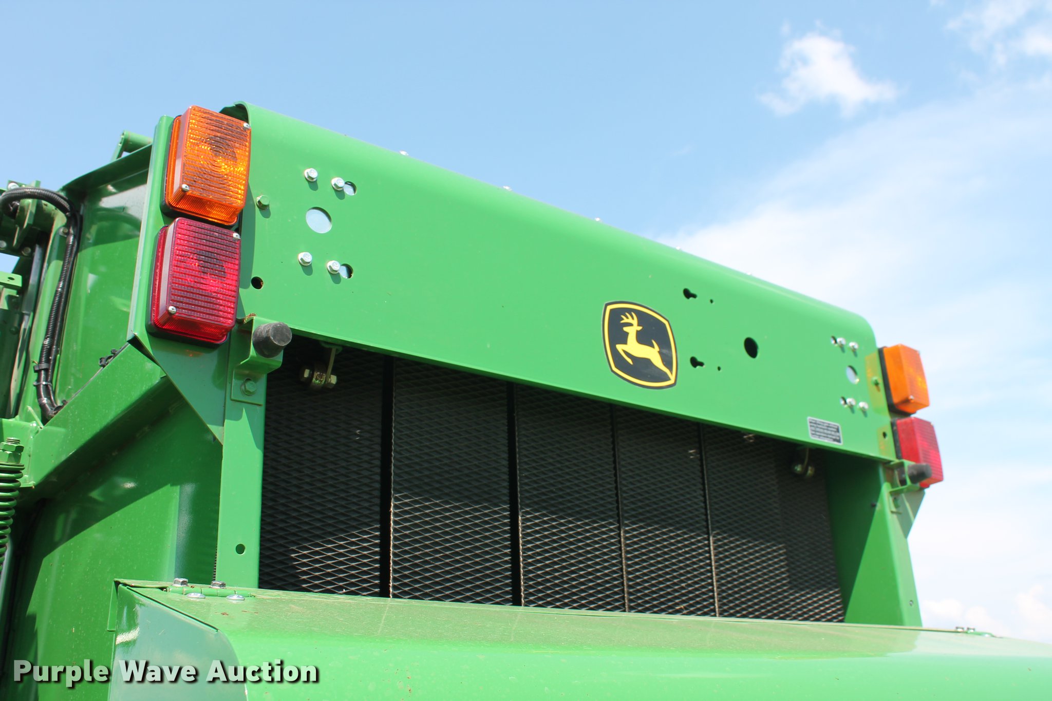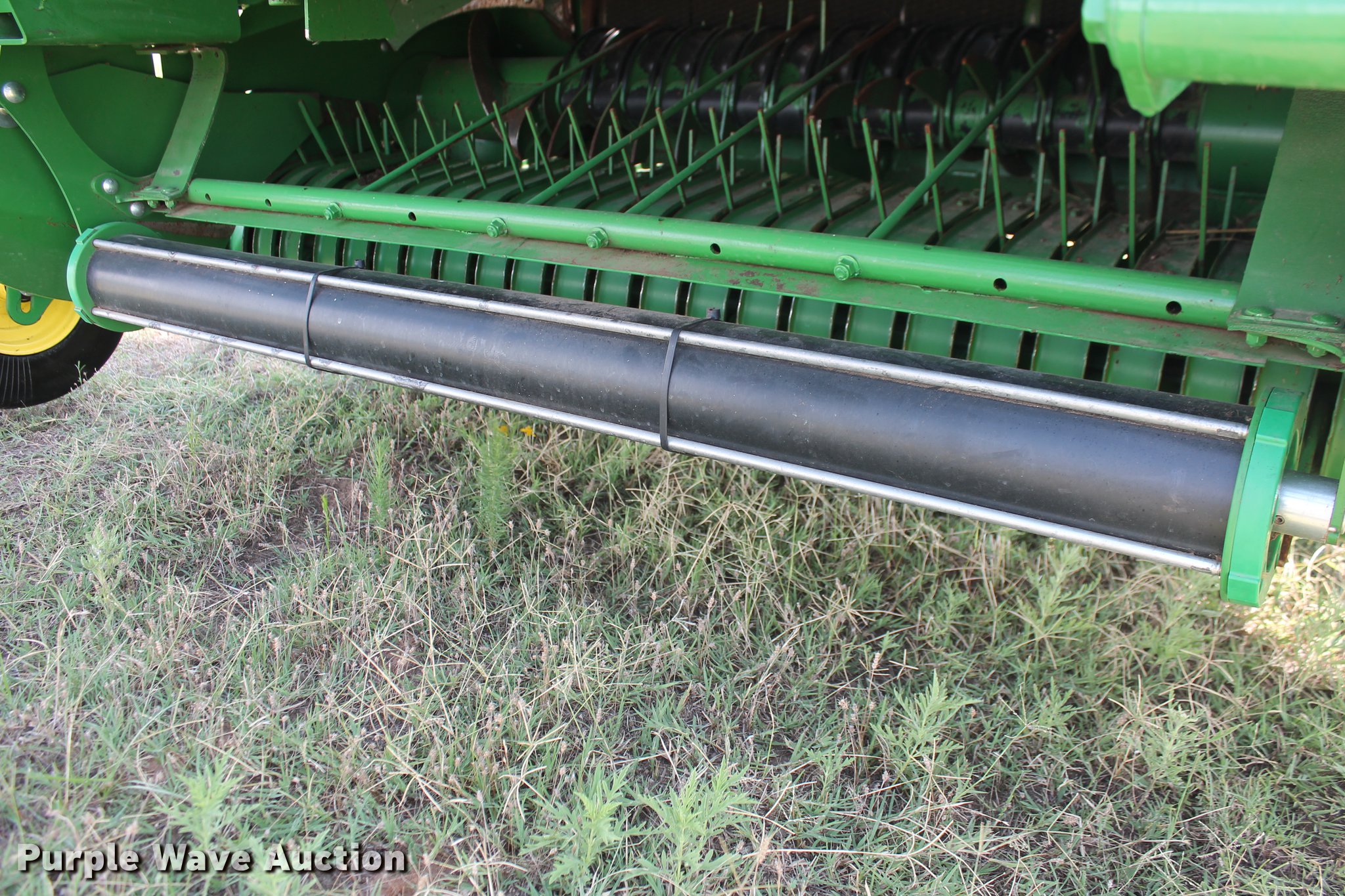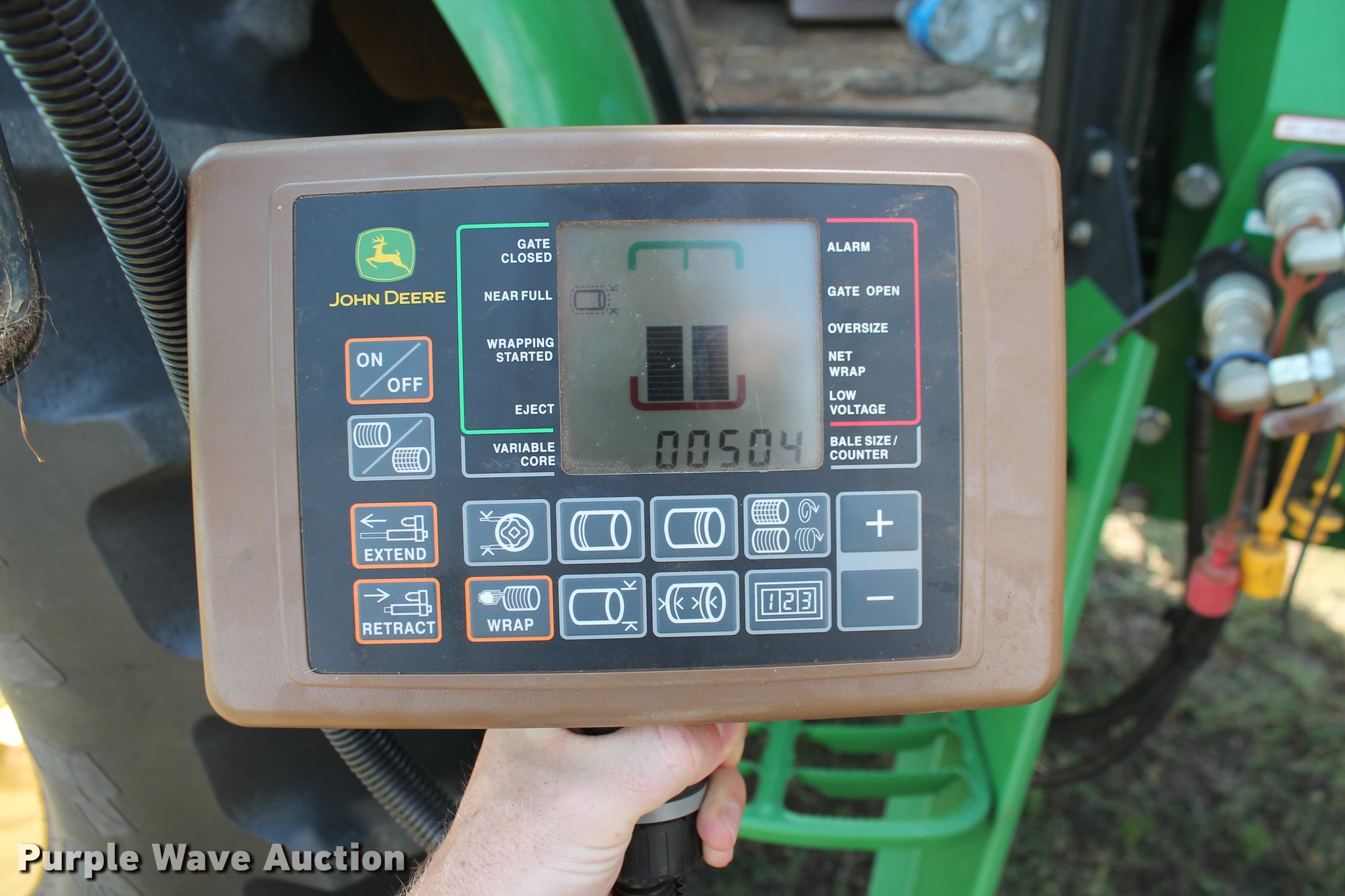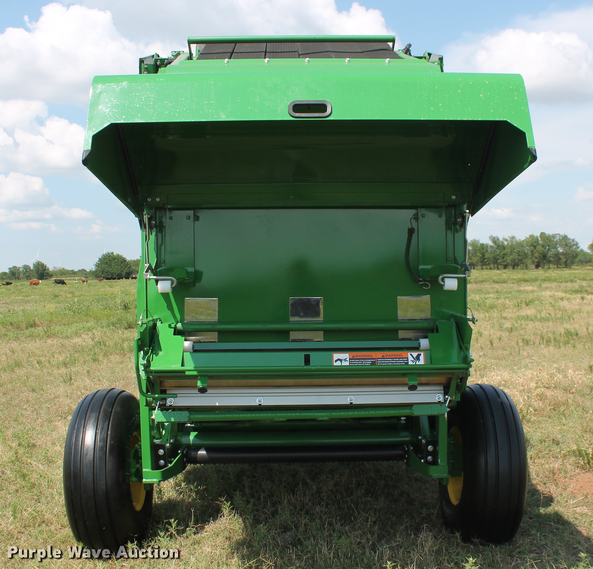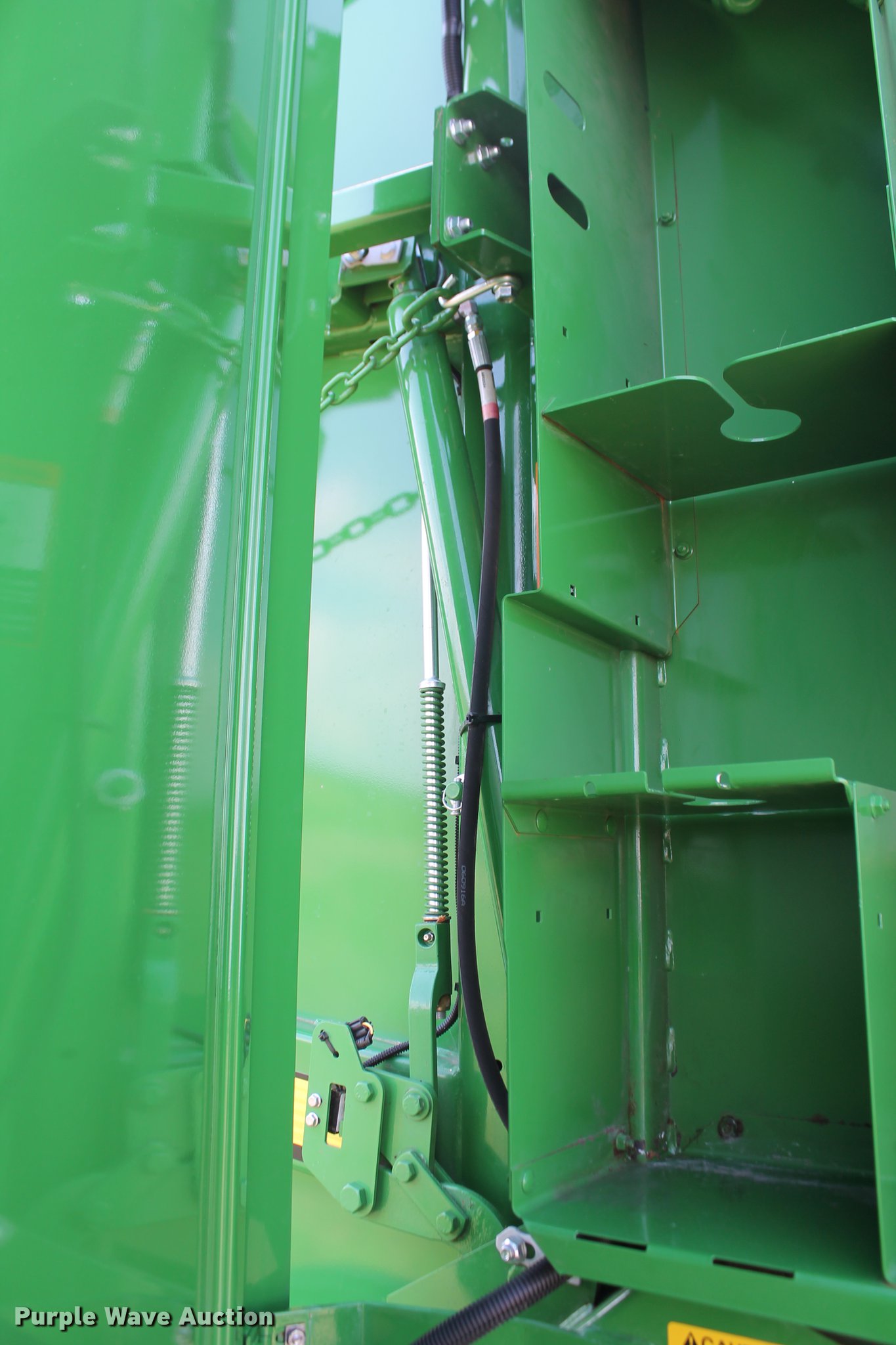 Purple Wave is selling a used Round Baler in Oklahoma. This item is a 2017 John Deere 469 Mega Wide Plus Silage Special round baler with the following: 504 bale count, 4' x 6' bale capacity, 60"W pickup, Hydraulic pickup lift, 4.80-8/3.75 gauge wheels, Rotor cutter, Feed assist roller, John Deere Bale Rak Pro AFH210762 monitor, Auto-tie, Twin twine tie, CoverEdge net-wrap, Bale kicker, Transport lights, Pin hitch, Goodyear 14L-16.1SL tires, Serial 1E00469SLHH432043