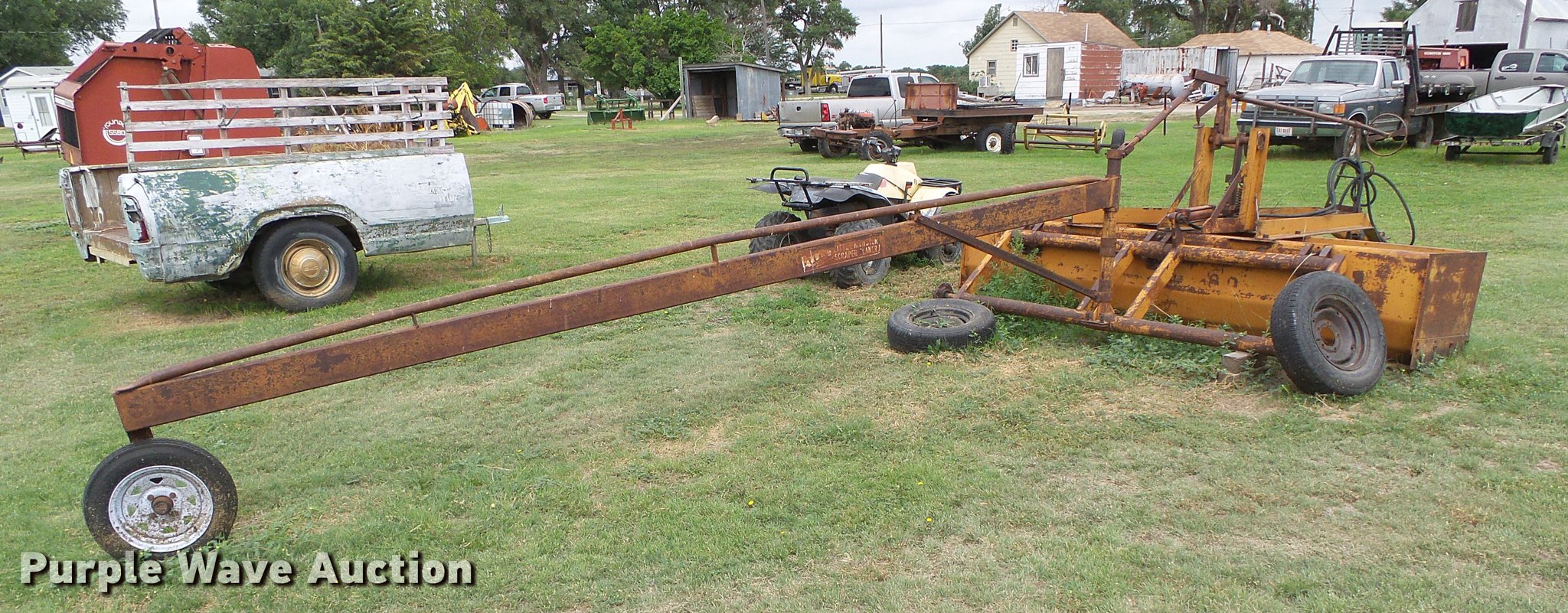 Purple Wave is selling a used Pull Type Scraper in Kansas. This item is a Amy Mfg. Little Moster land planer with the following: 30'L overall, 10'W box scraper, Hydraulic lift, Pin hitch, P205/75R14 tires, Tires will be reinstalled prior to auction, Serial 5167