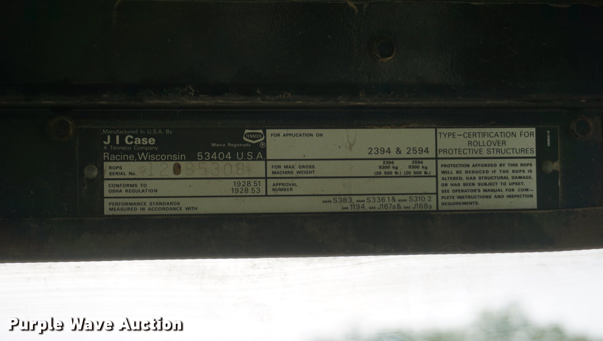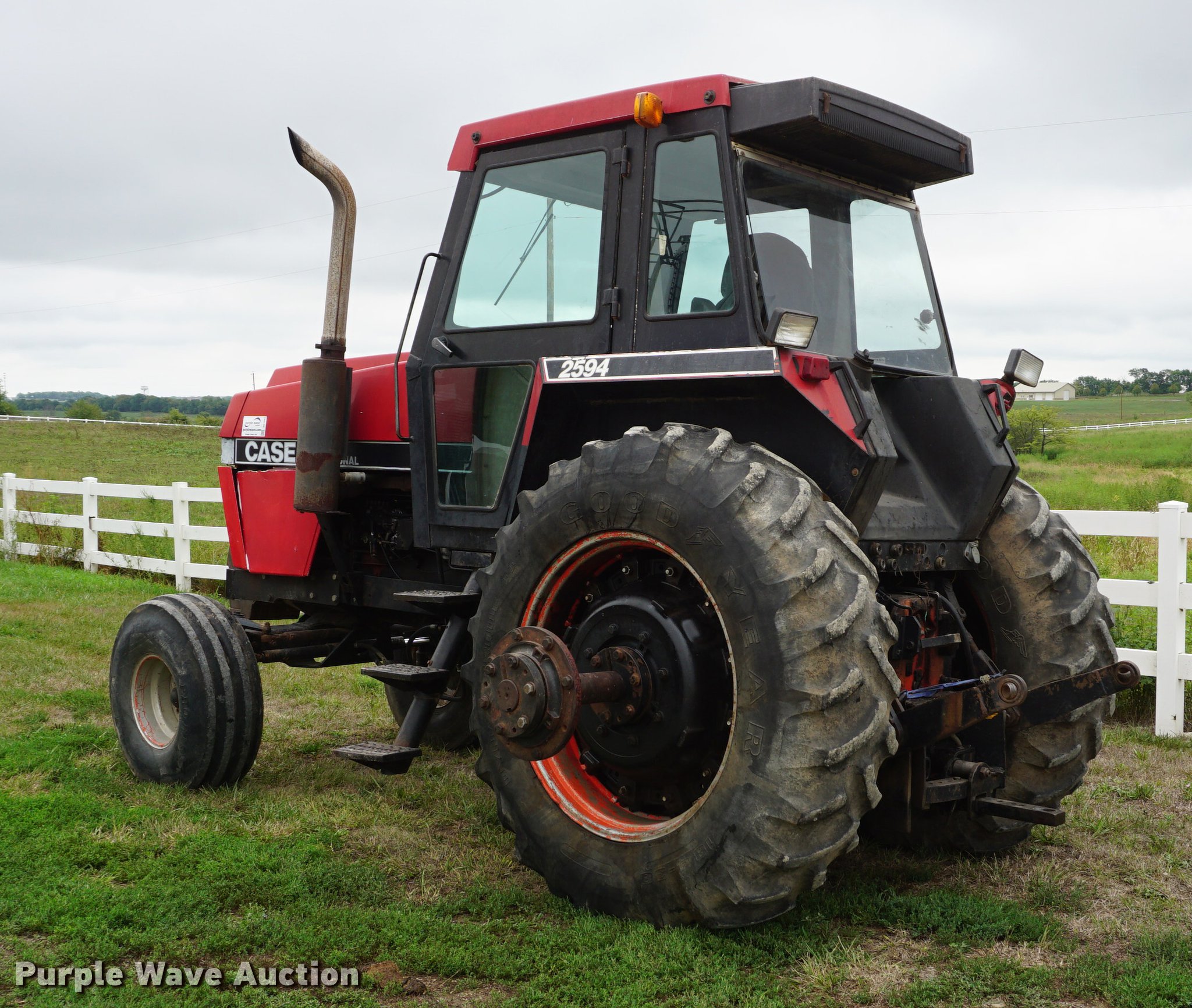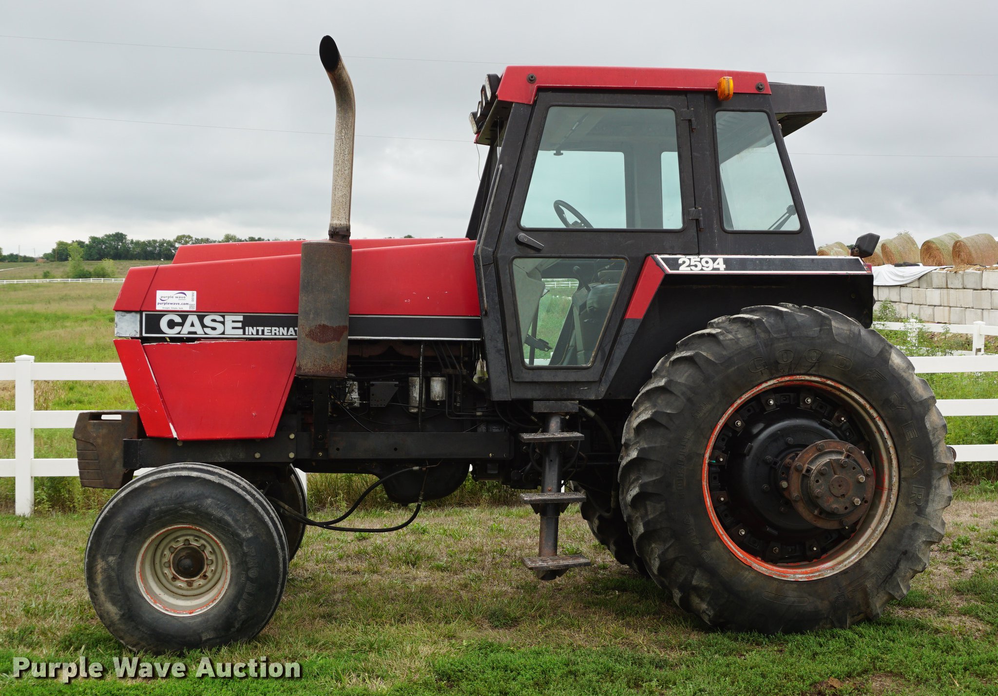 Purple Wave is selling a used Tractor in Kansas. This item is a 1984 Case IH 2594 tractor with the following: 8,313 hours on meter, Case IH 8.3L six cylinder turbo diesel engine, 217 HP, Powershift transmission, 12F-3R gears, AC and heat, AM/FM, Spring suspension seat, Tilt steering wheel, Three point, 1000 PTO, (2) rear hydraulic remote sets, (6) suitcase weights, 14-16.1 front tires, 18.4-38 dual rear tires, Serial 9933973