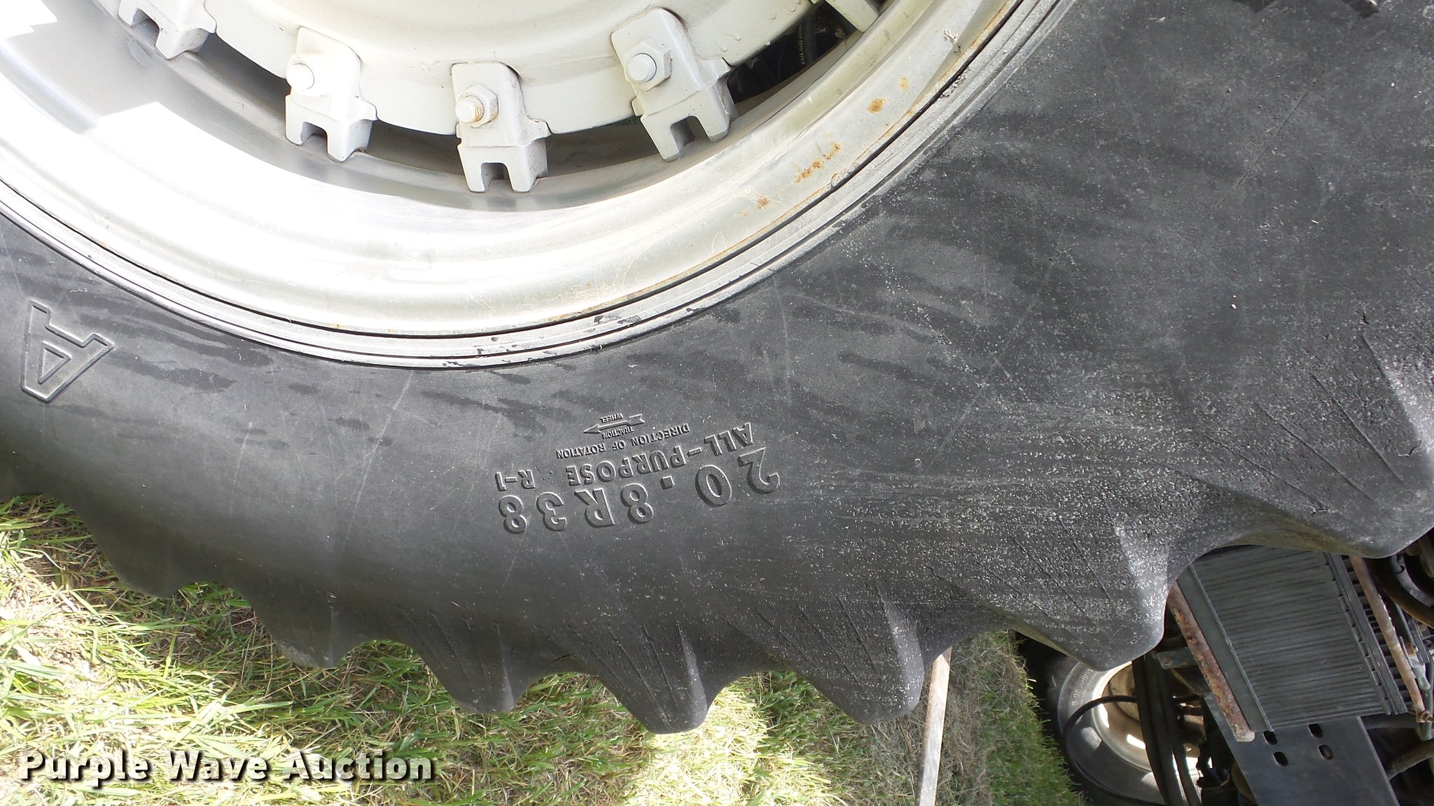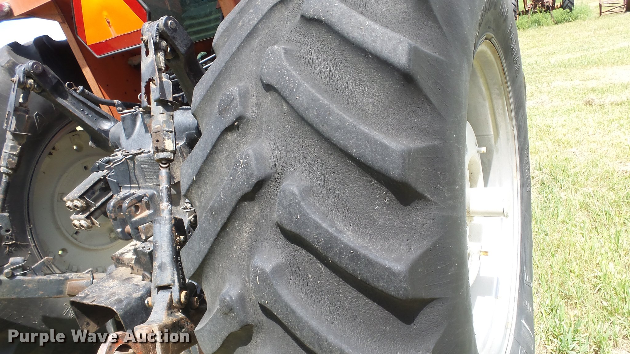 Purple Wave is selling a used Tractor in Kansas. This item is a Allis Chalmers 8050 tractor with the following: 4,366 hours on meter, Allis Chalmers 7.0L six cylinder diesel engine, Powershift transmission, 20F-4R gears, Enclosed cab, AC and heat, AM/FM, Suspension seat, Front and rear work lights, Wipers, Ether start, Three point, 540 PTO, (2) rear hydraulic remotes, (8) suitcase weights, 106" wheelbase, 14L-16.1 front tires, 20.8R38 rear tires