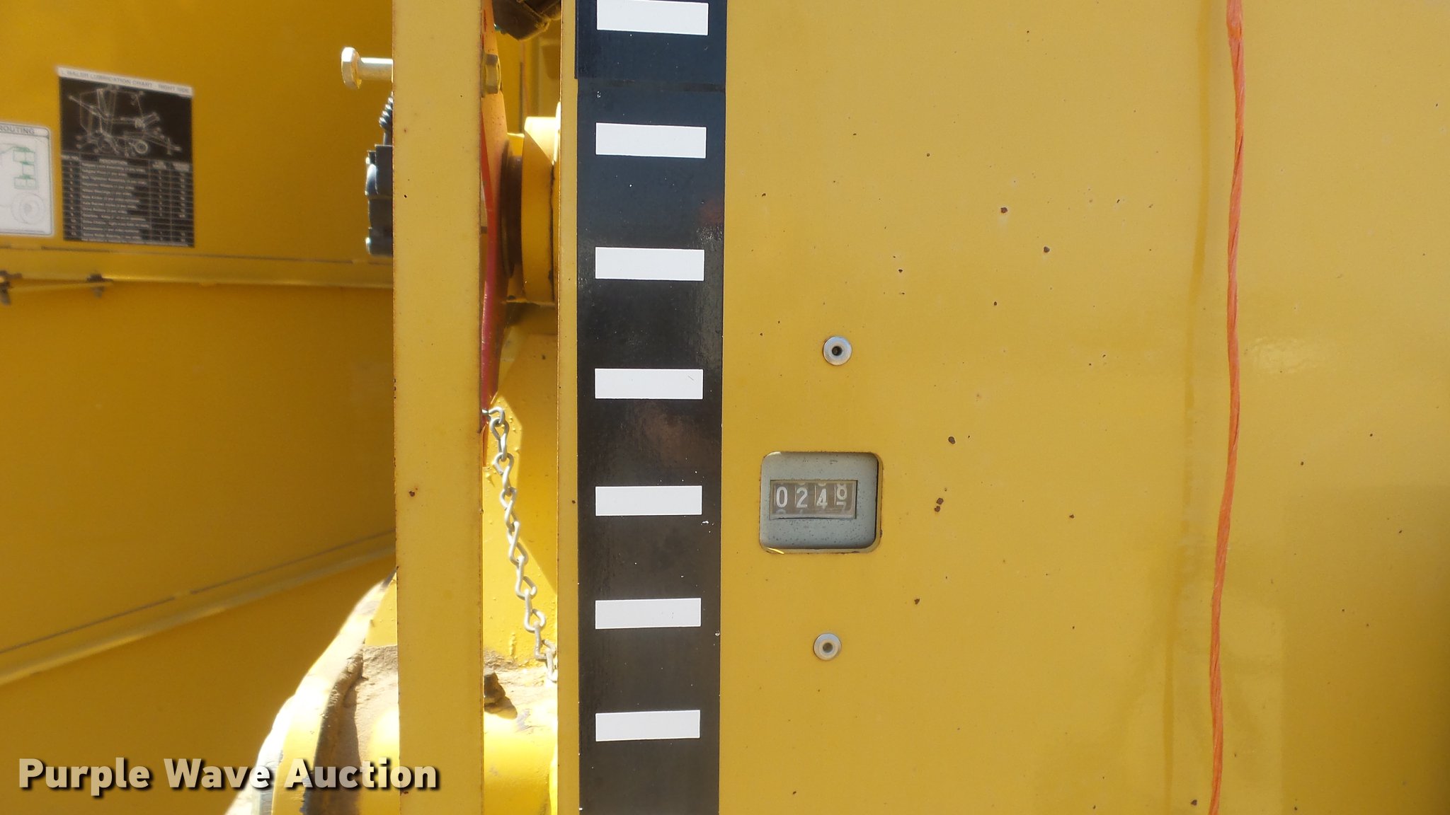 Purple Wave is selling a used Round Baler in Kansas. This item is a Vermeer 605XL round baler with the following: Approx. 72"W pickup, Hydraulic pickup lift, Gathering wheels, Monitor, Bale counter, Twine tie, Net-wrap, Transport lights, 1000 PTO, Pin hitch, Serial 1VRV141M121001232