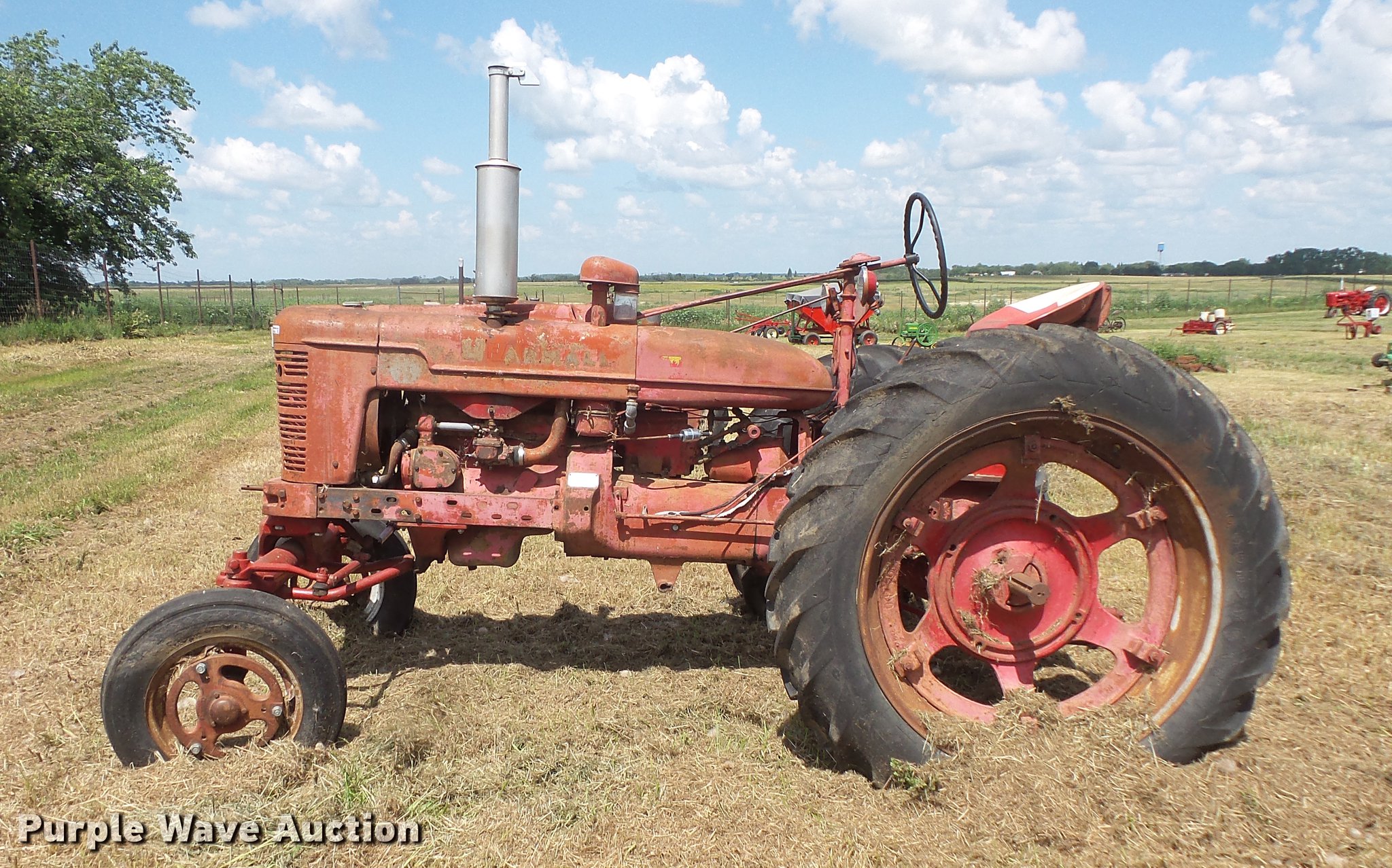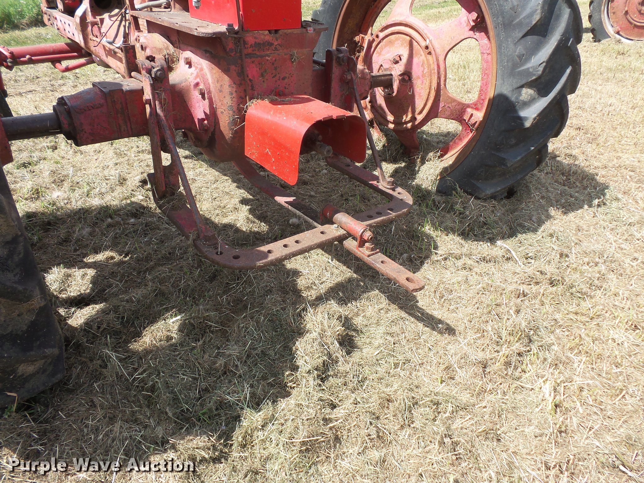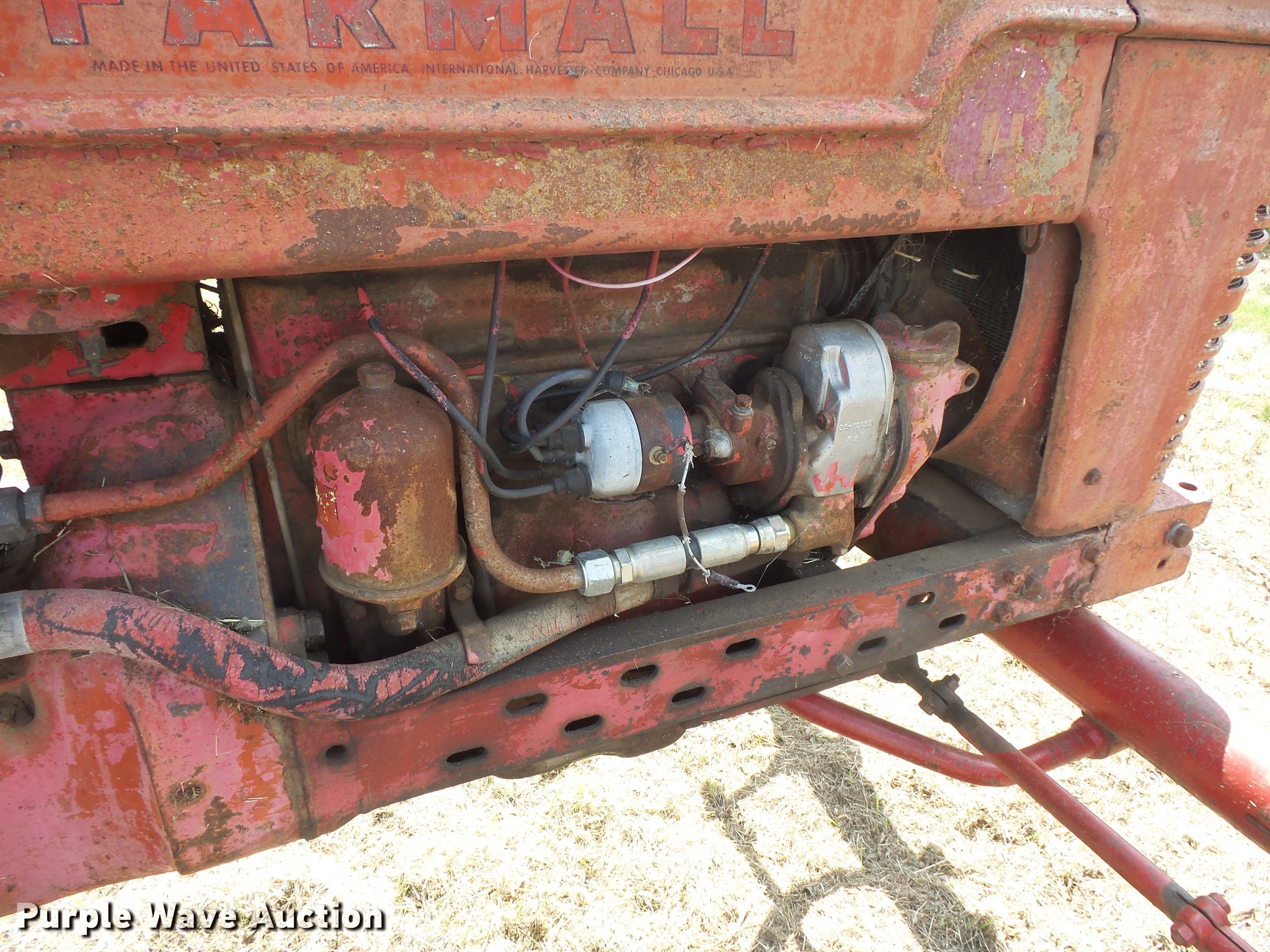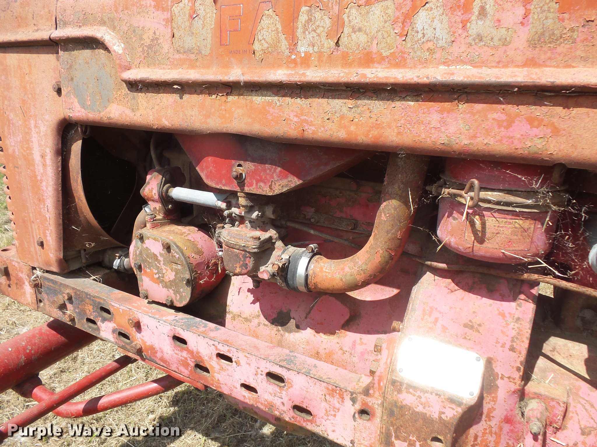Purple Wave is selling a used Tractor in South Dakota. This item is a Farmall Super H tractor with the following: Four cylinder gas engine, Manual transmission, 5F-1R gears, 540 PTO, Wide front end, 5.50-16 front tires, 12.4-38 rear tires, Engine is free, Unknown operating condition, Serial 27585AJ