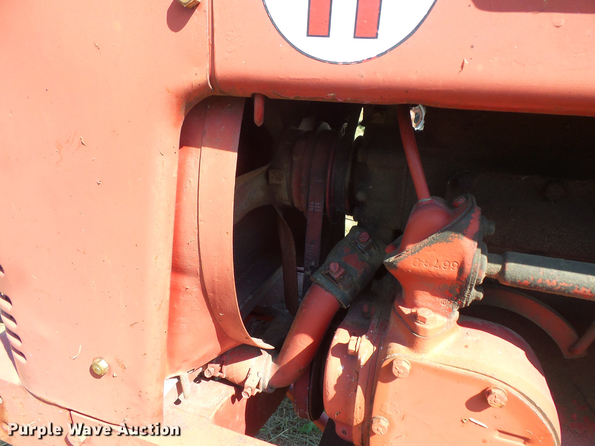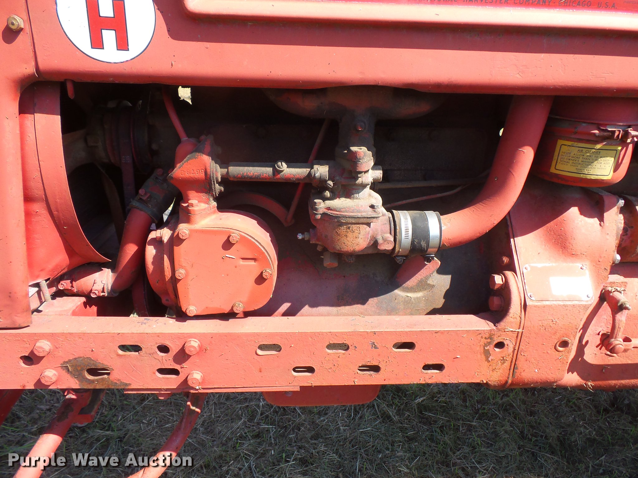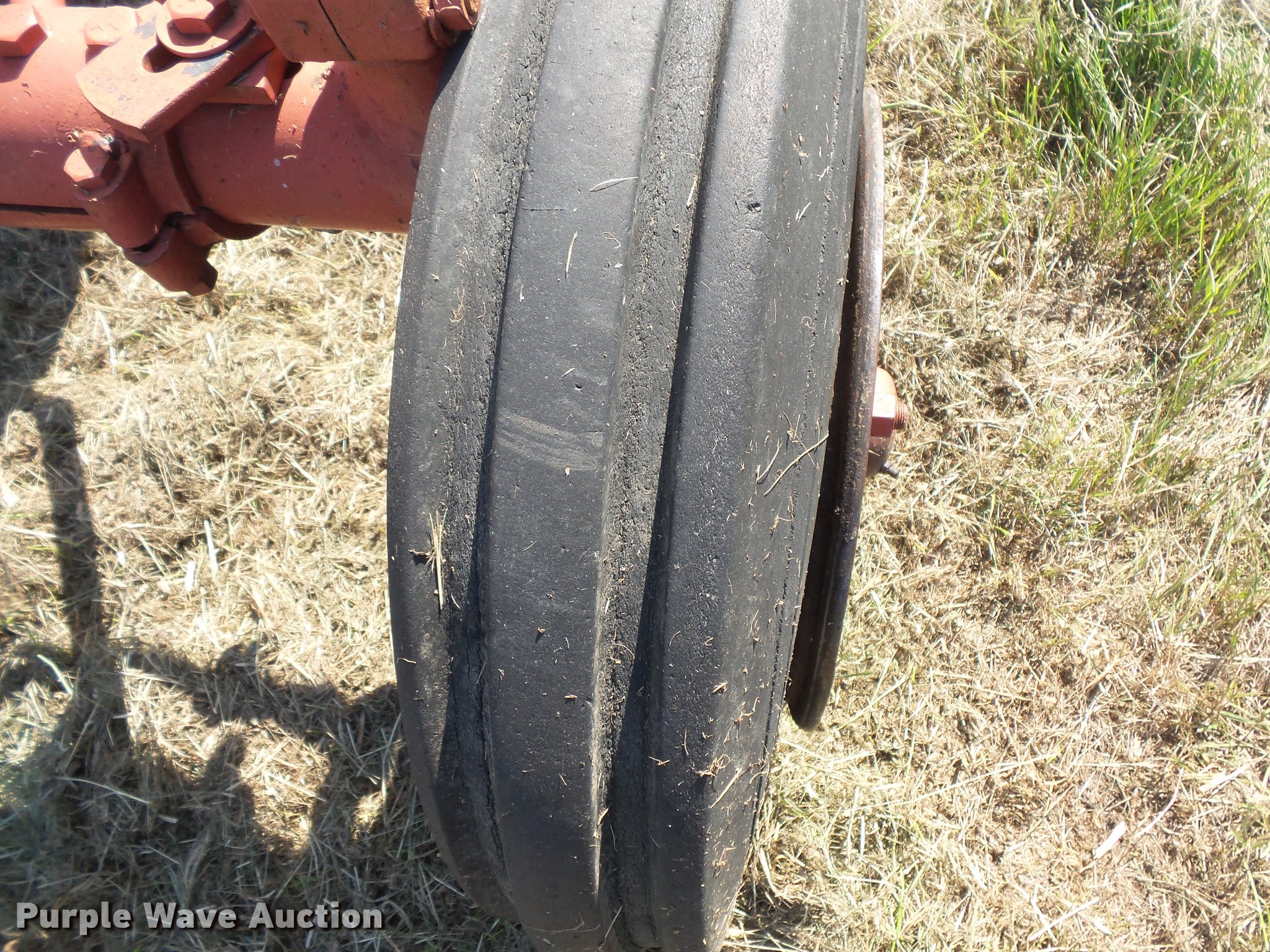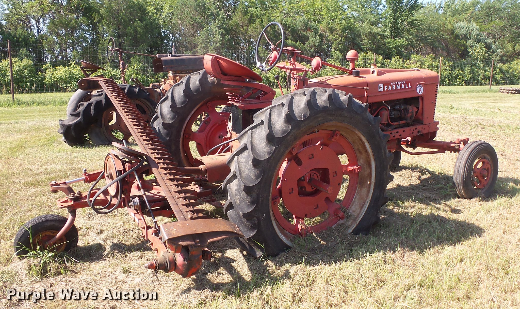 Purple Wave is selling a used Tractor in South Dakota. This item is a Farmall Super H tractor with the following: Four cylinder gas engine, Manual transmission, 5F-1R gears, 540 PTO, International sickle mower, 9'W, Wheel weights, 8.00-16 front tires, 13.6-38 rear tires, Engine stuck, Non-operational, Serial 26479J