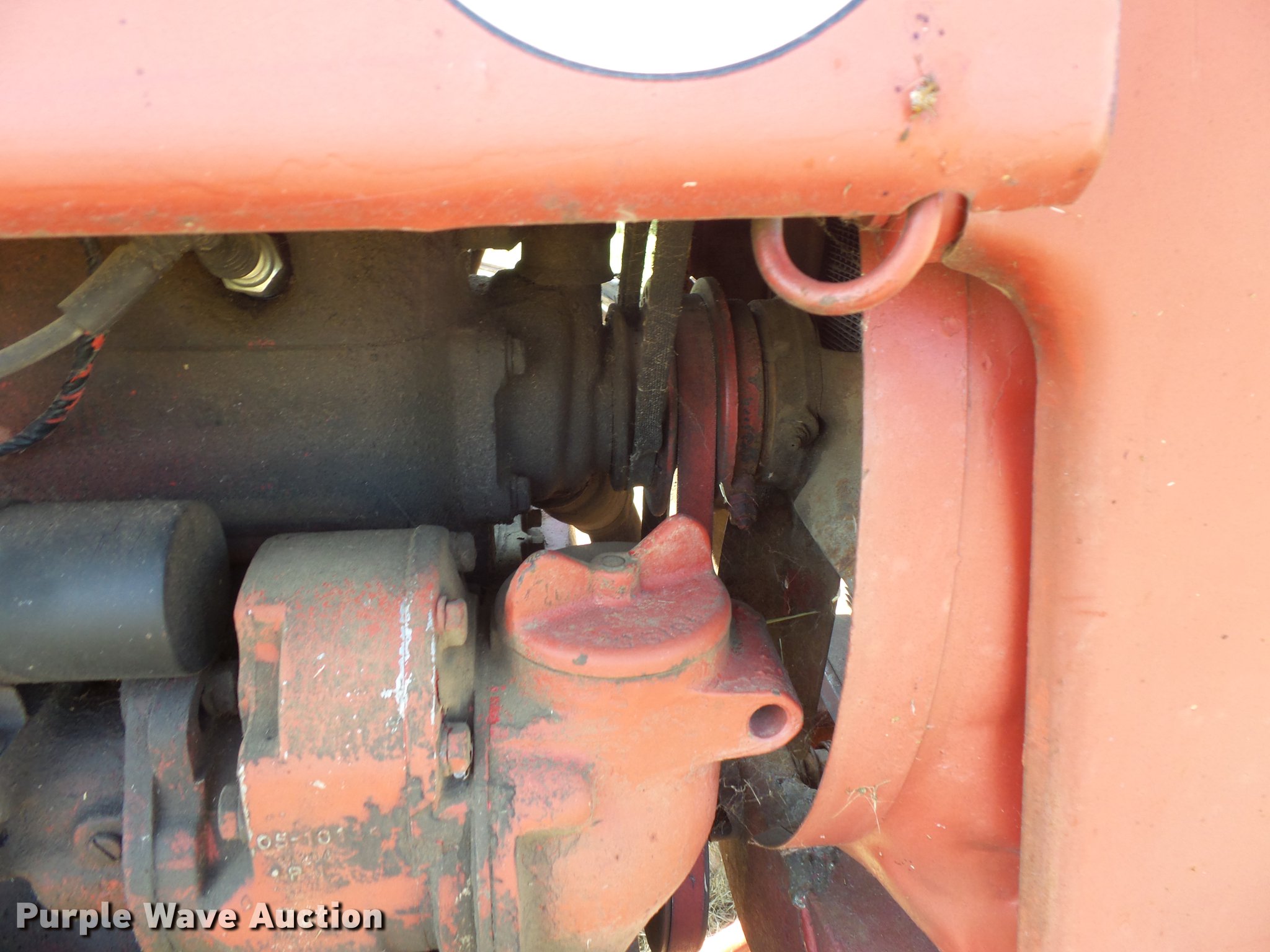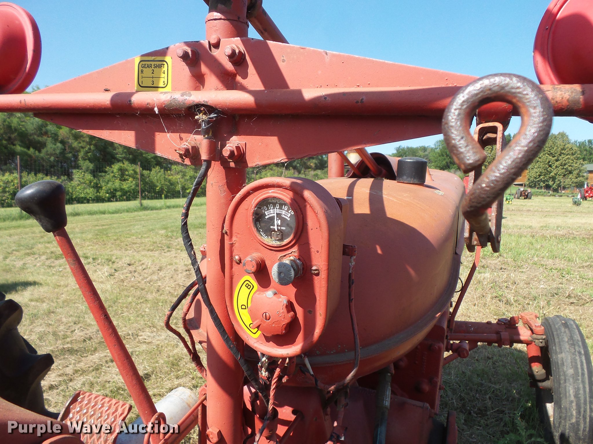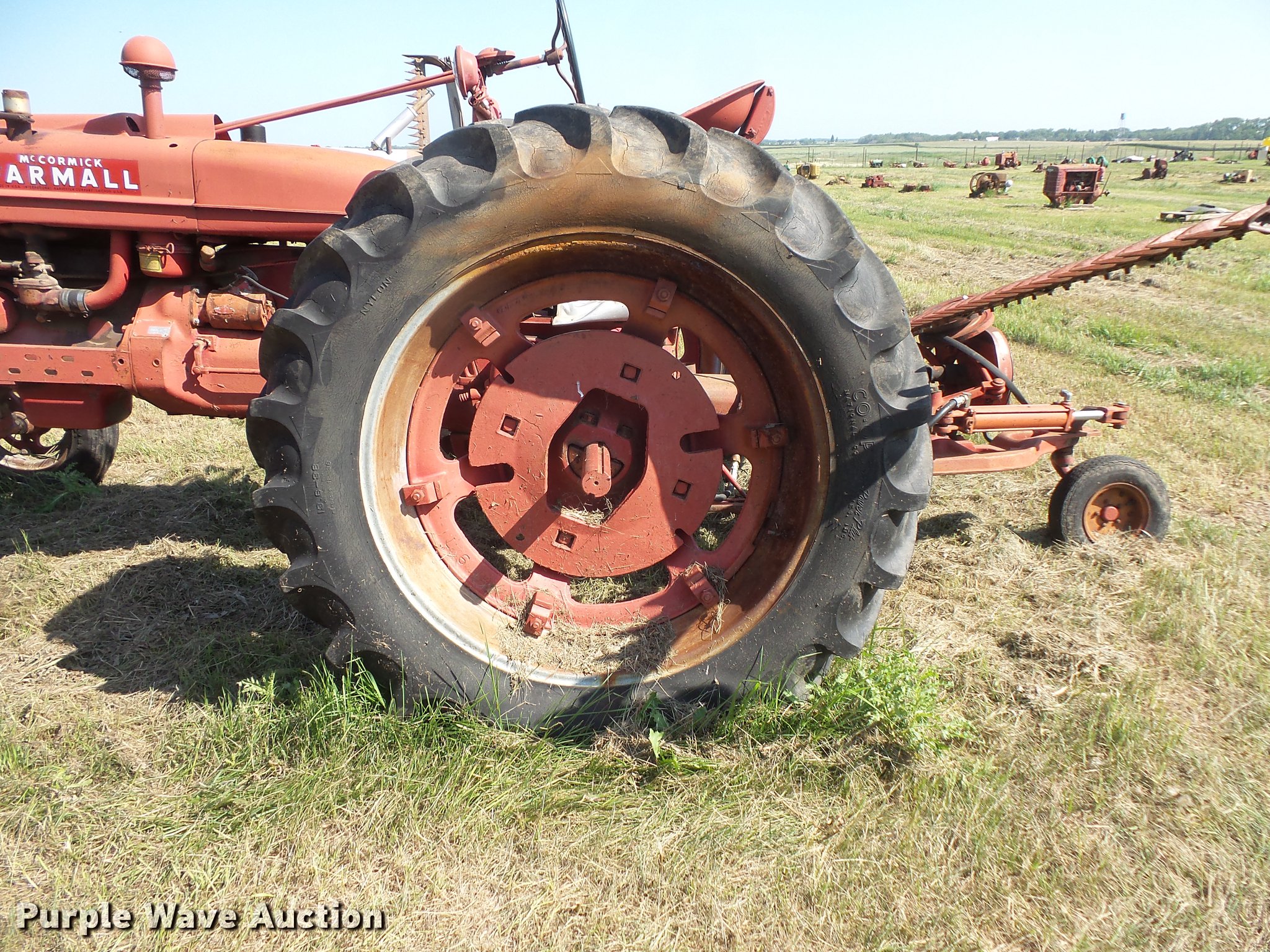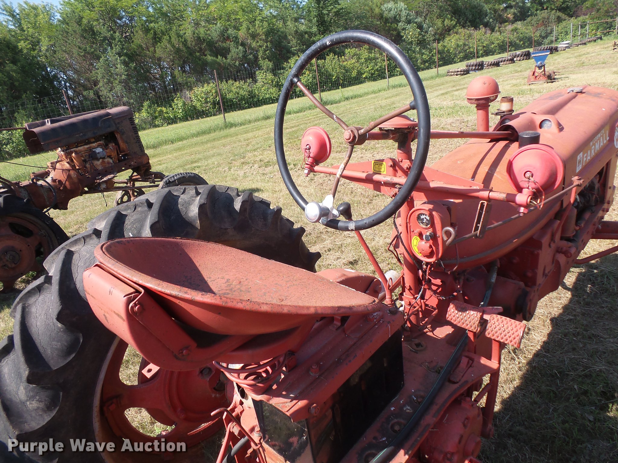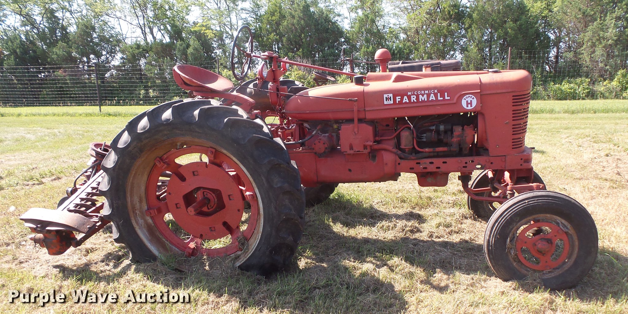 Purple Wave is selling a used Tractor in South Dakota. This item is a Farmall Super H tractor with the following: Four cylinder gas engine, Manual transmission, 5F-1R gears, 540 PTO, International sickle mower, 9'W, Wheel weights, 8.00-16 front tires, 13.6-38 rear tires, Engine stuck, Non-operational, Serial 26479J
