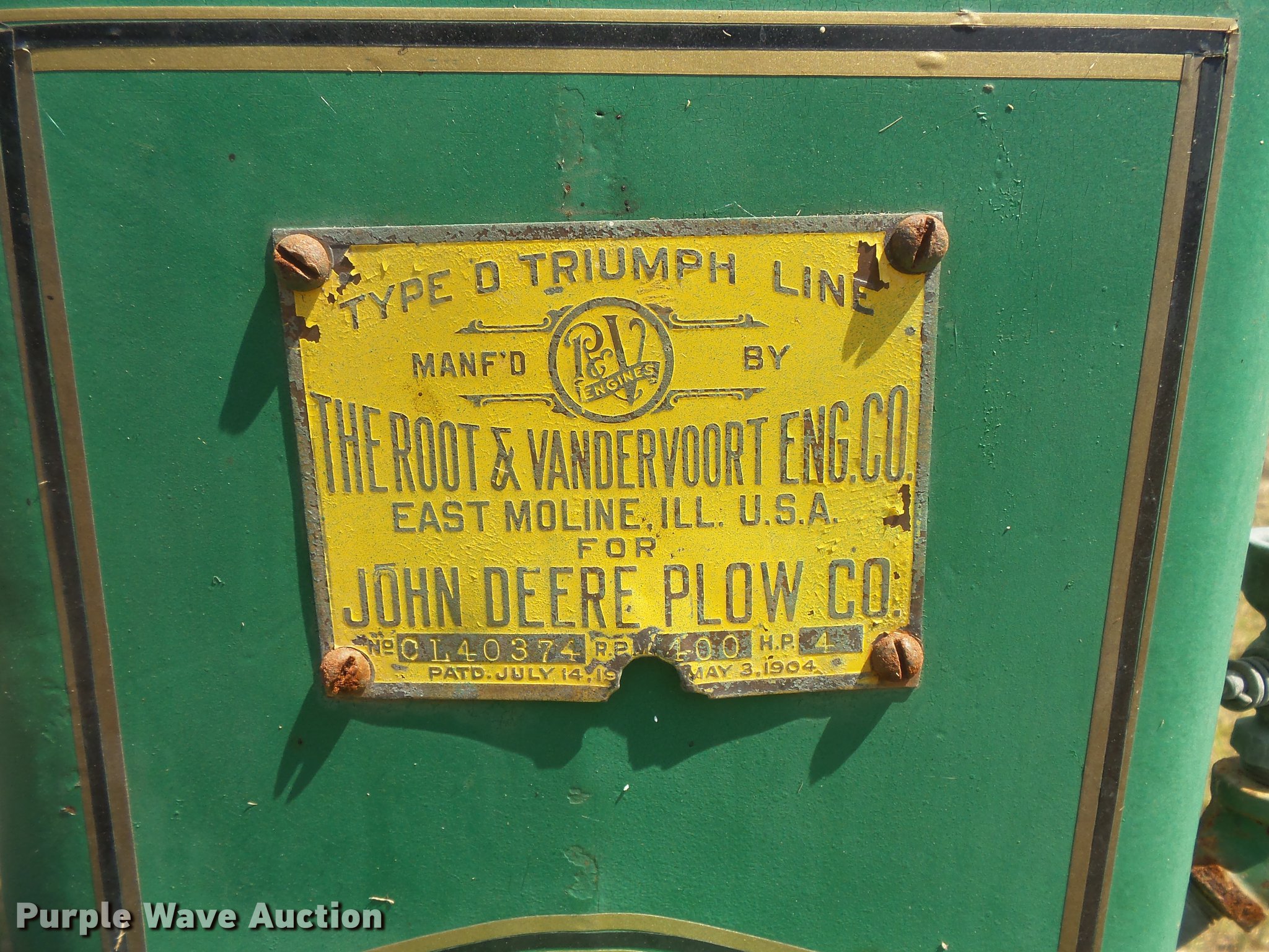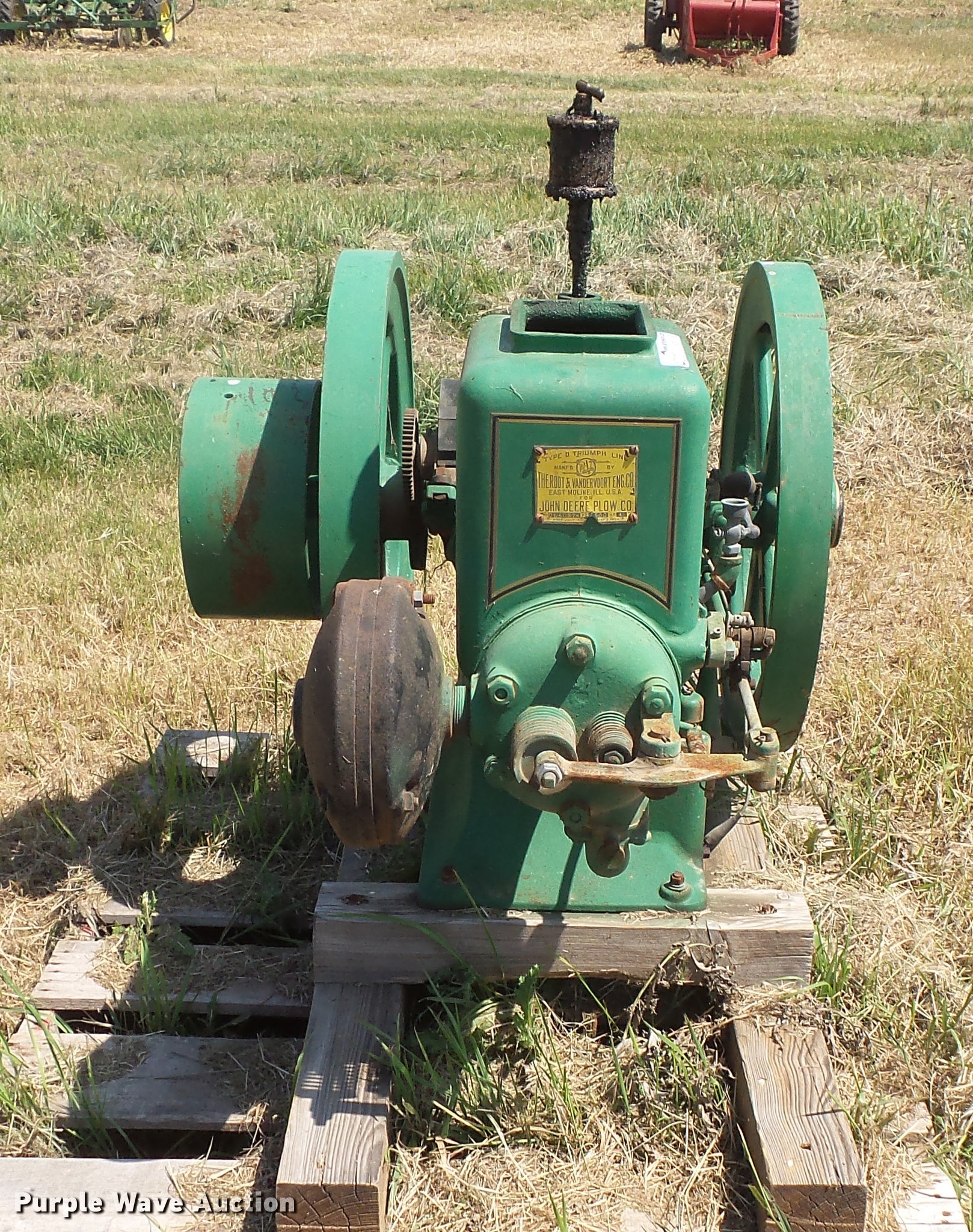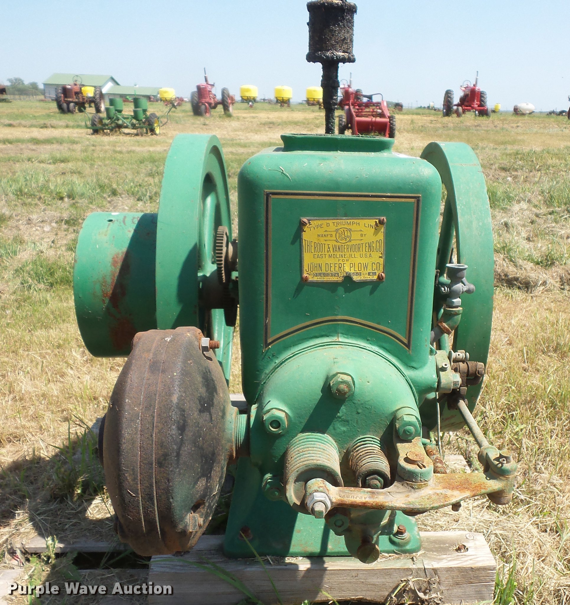 Purple Wave is selling a used Engine in South Dakota. This item is a Root & Vandervoort hit and miss engine with the following: 4 HP, Skid mounted, Engine is free, Unknown operating condition, Serial CL40374