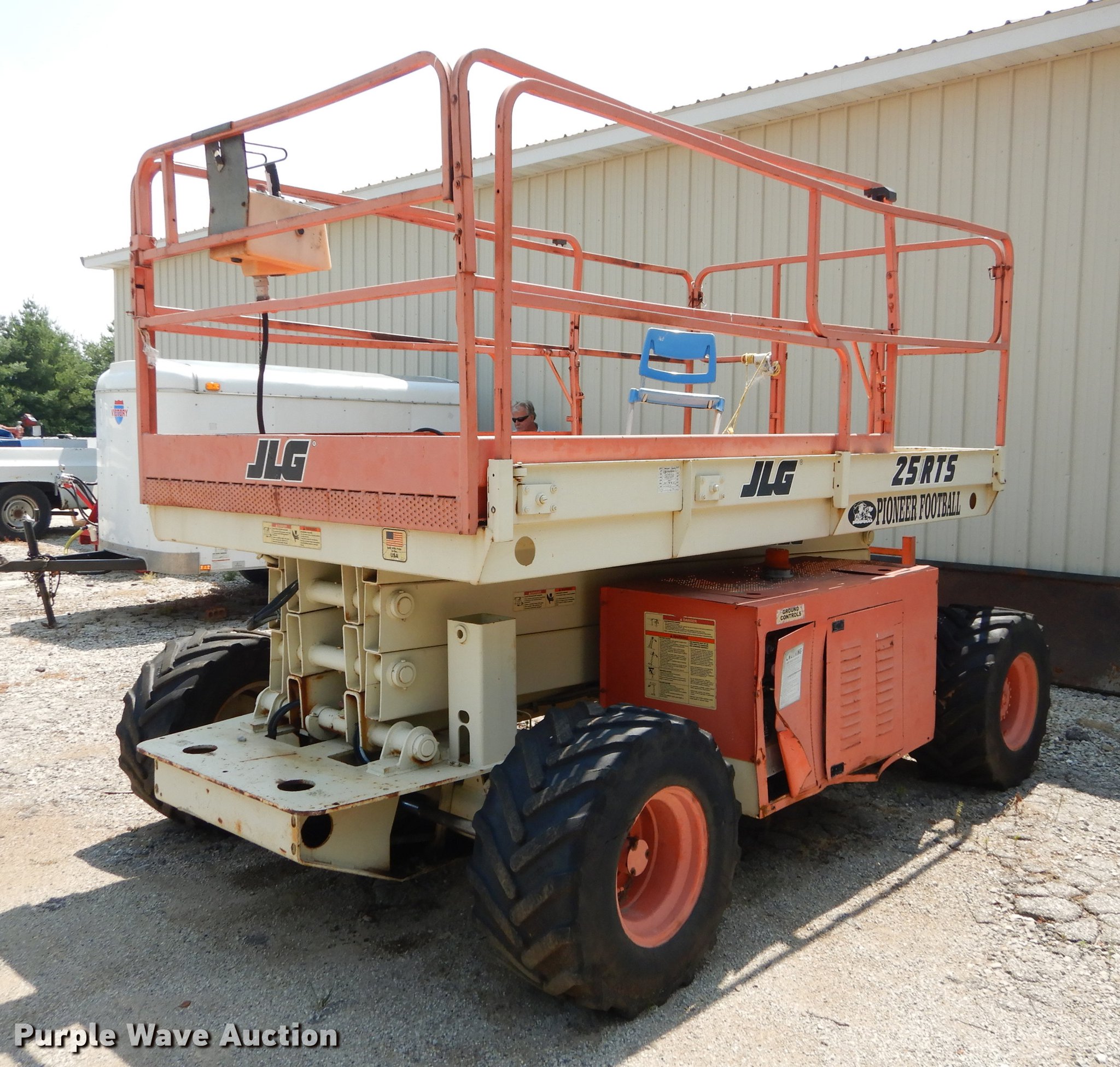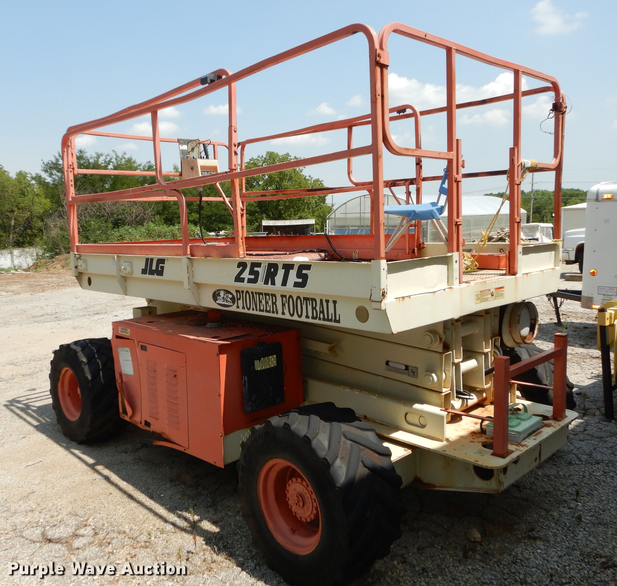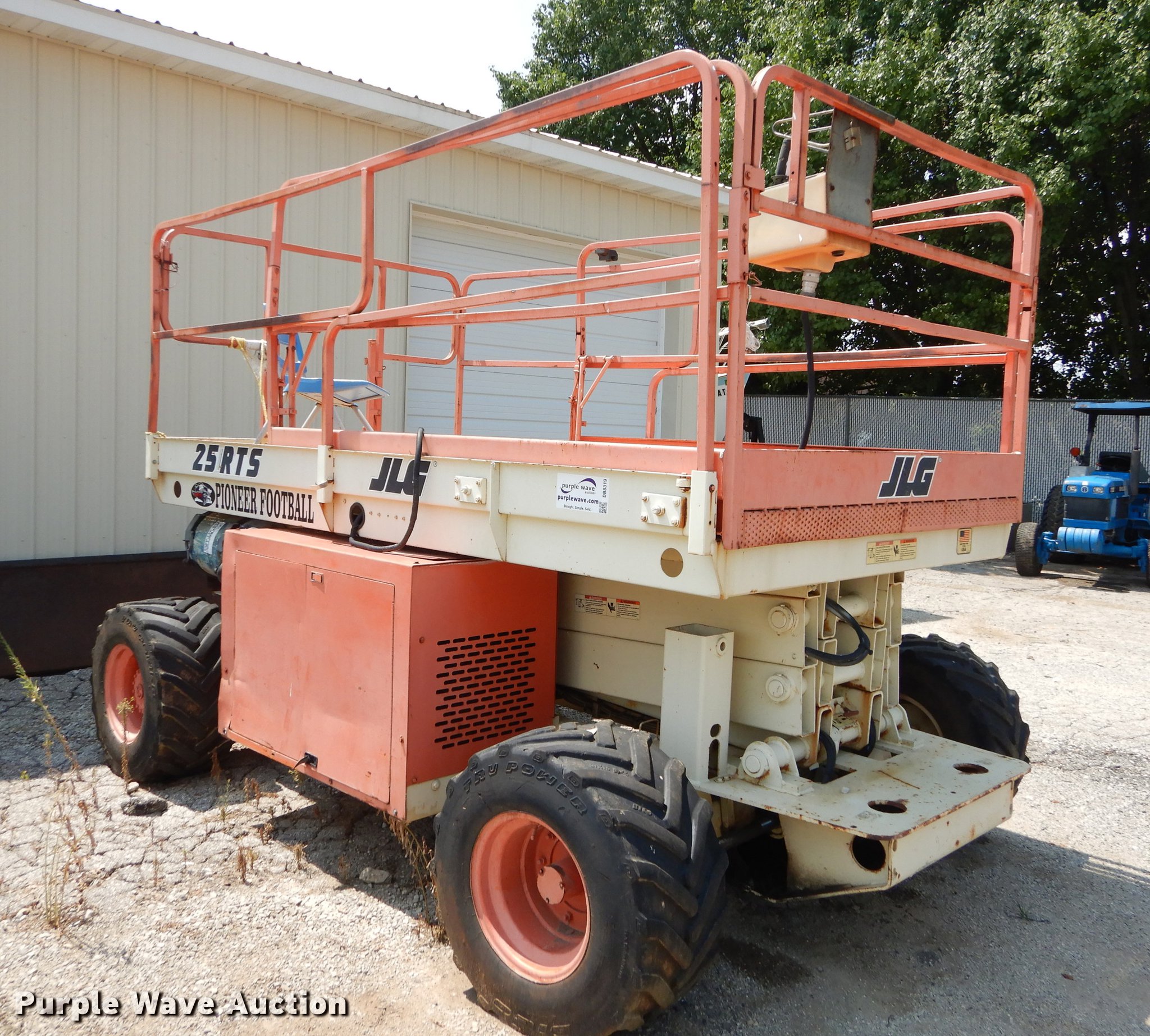 Purple Wave is selling a used Scissor or Vertical Lift in Kansas. This item is a JLG 25RTS scissor lift with the following: 2,906 hours on meter, Dual fuel engine, Gas or propane capable, 750 lbs maximum lift capacity, 25' maximum lift height, 6' x 126" platform, Platform extension, 31 x 15.5-15 tires, Propane tank included, Non-operational unit, Engine stuck