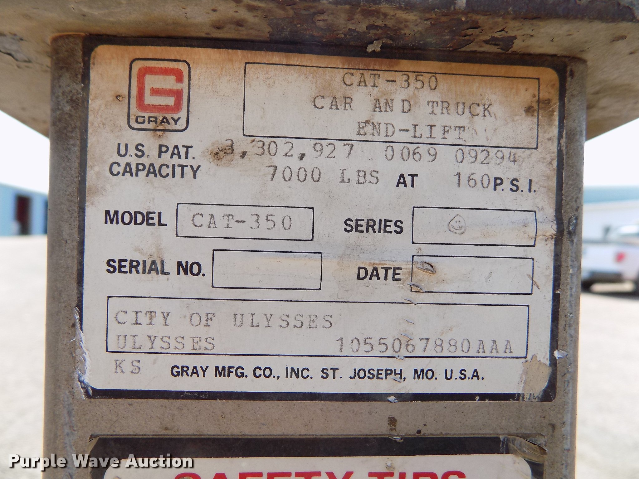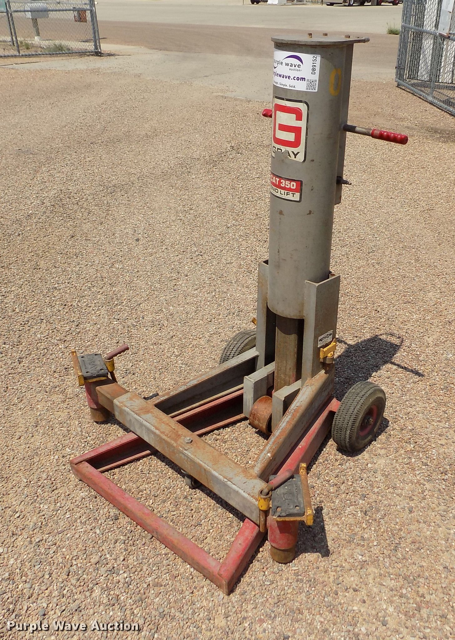Take a look at this used Gray Cat-350 pneumatic jack being sold on September 11th, 2018 in the SOLD! September 11 Government Auction made by Gray. Take a look at all of the item information below or take a look at similar auctions for Shop Tools.