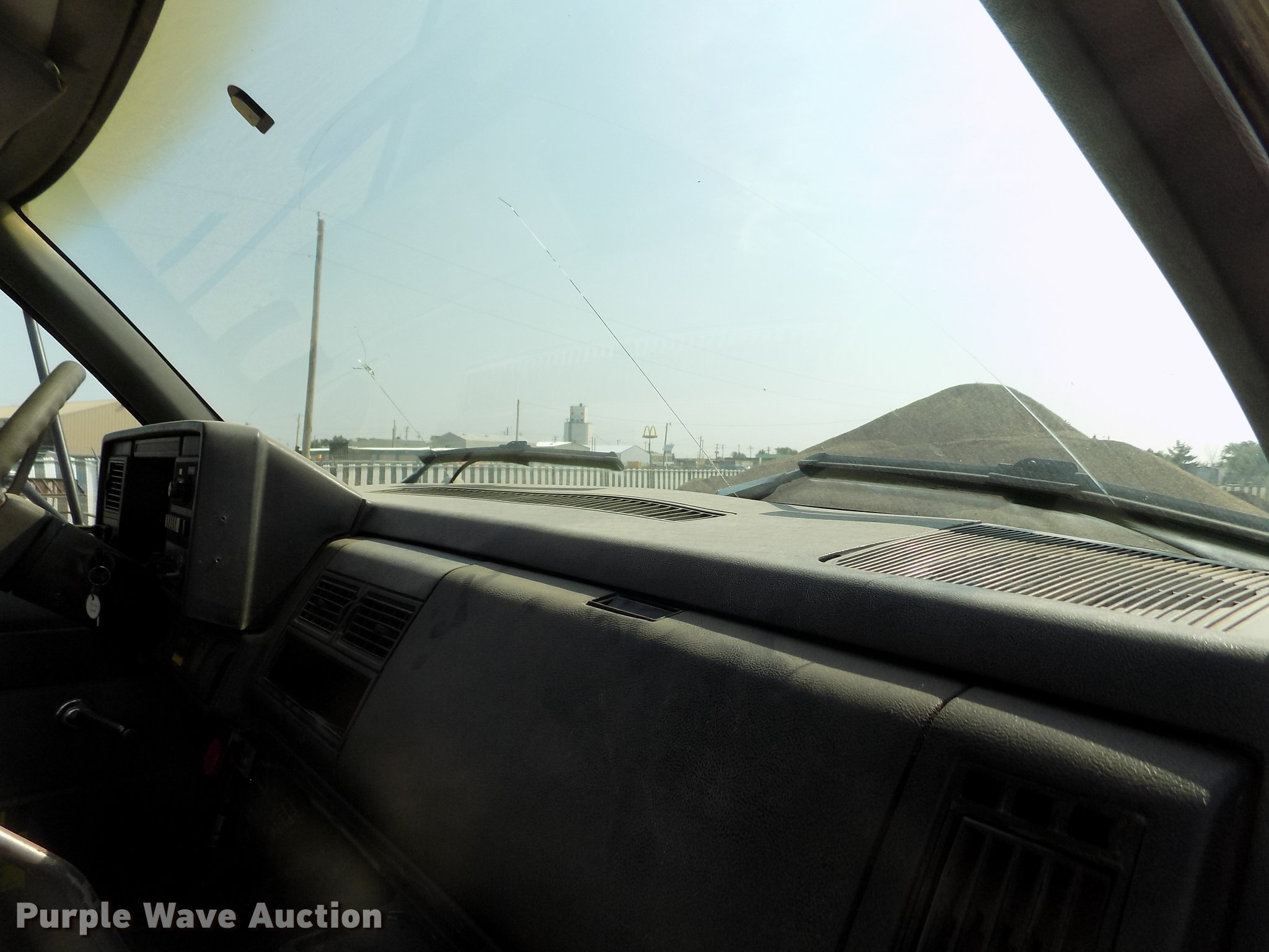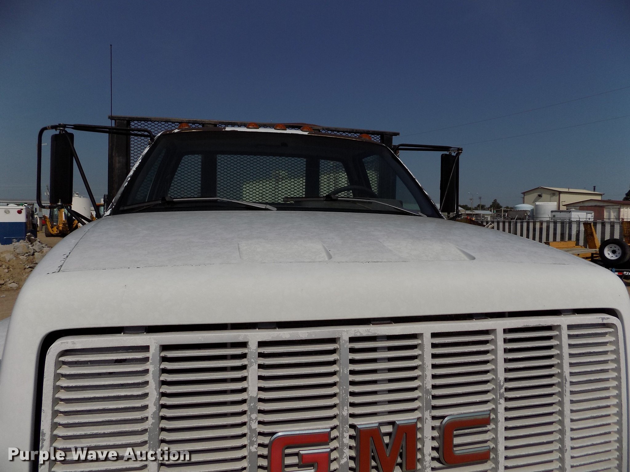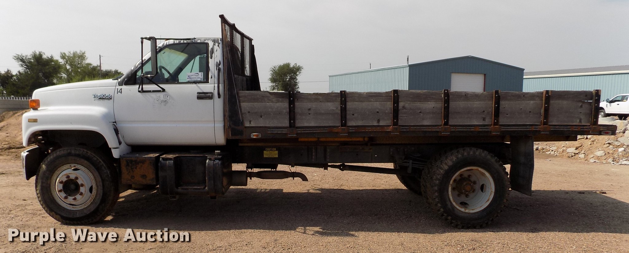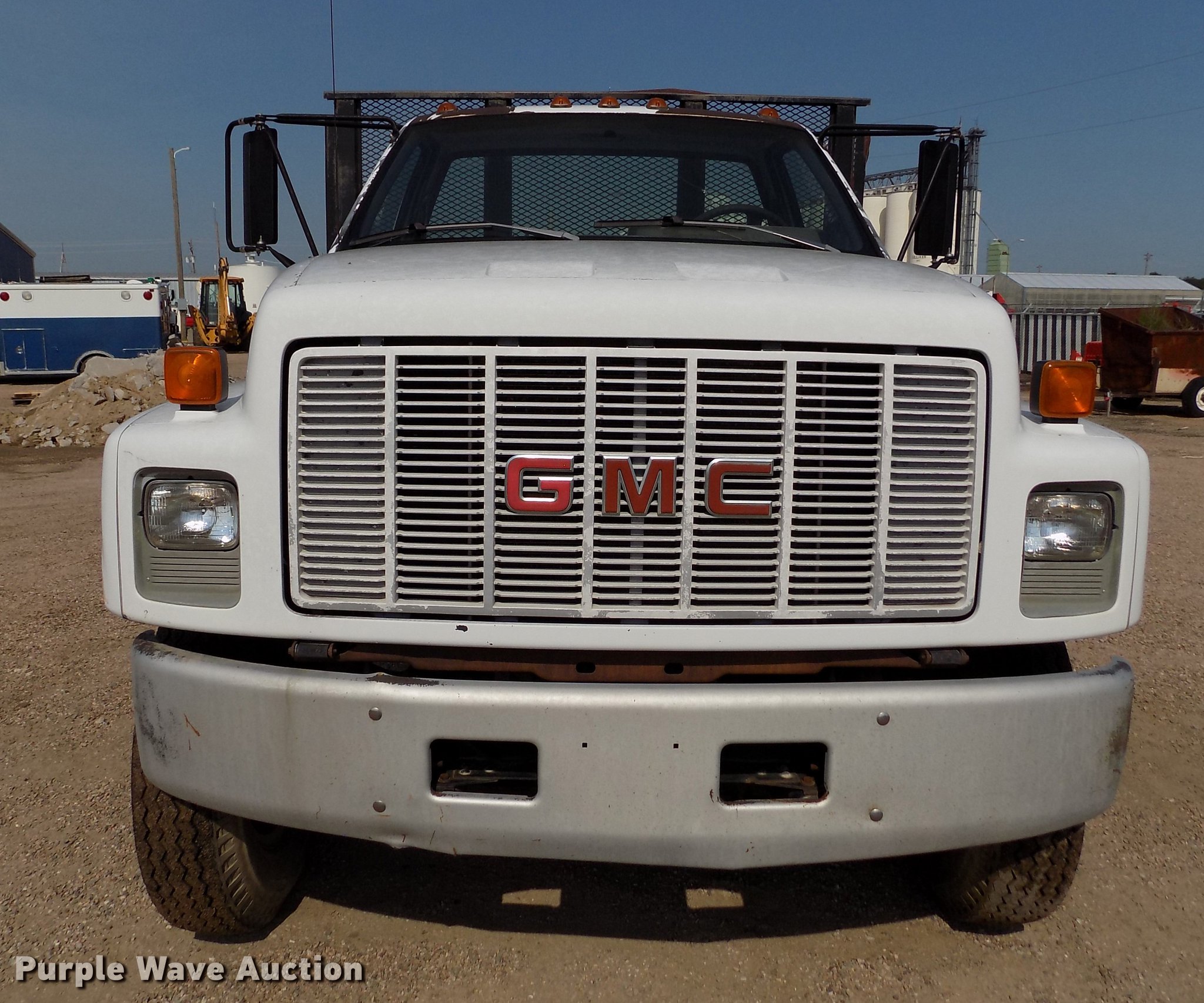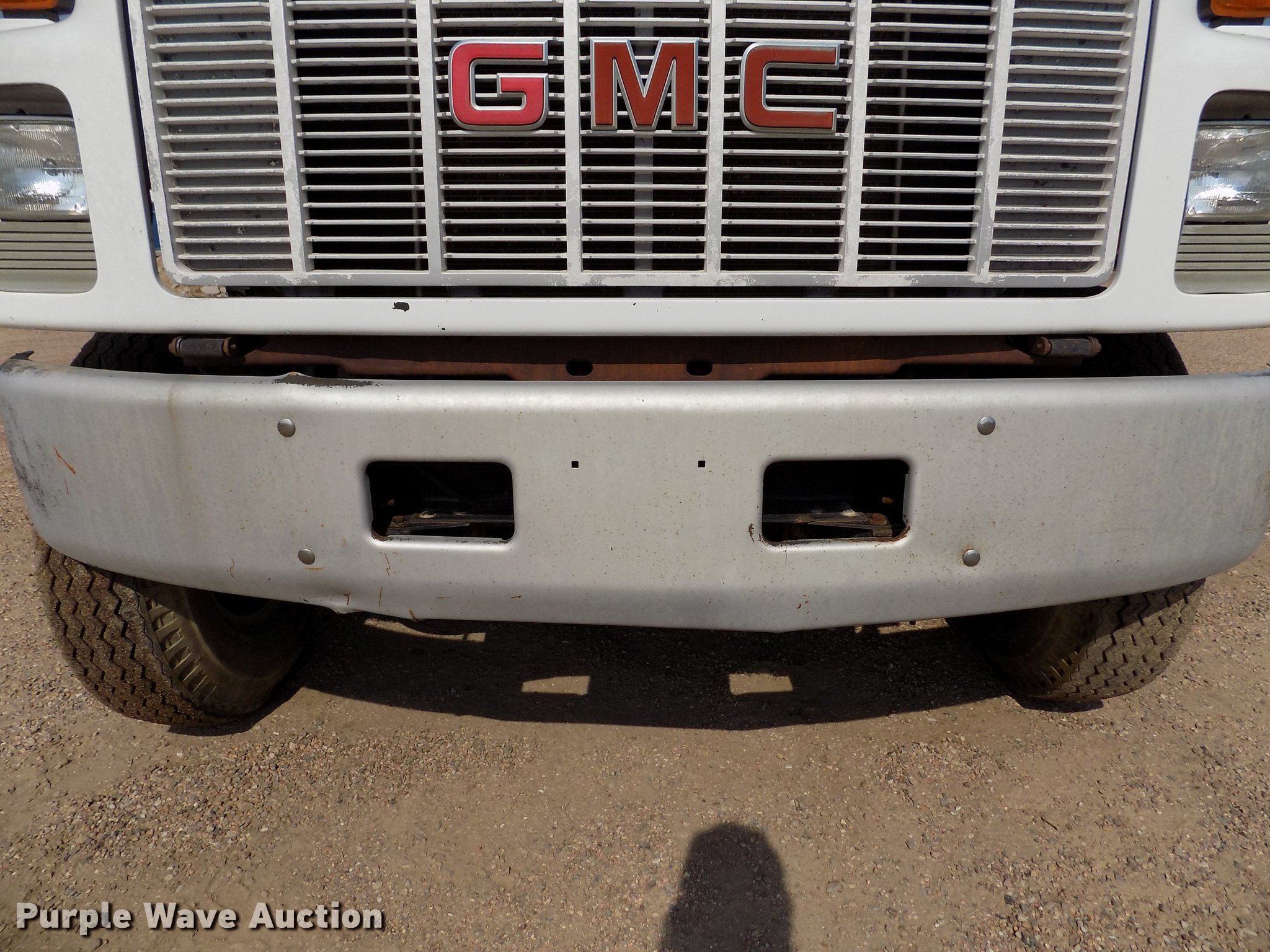 Purple Wave is selling a used Construction Dump Truck in Kansas. This item is a 1993 GMC TopKick dump truck with the following: 64,481 miles on odometer, 6.0L V8 gas engine, Five speed manual transmission, Steerable lift axle, Heat, AM/FM, PTO, 15.5'L x 92"W steel dump bed, 17" side board height, Single ram hoist, Single fuel tank, Spring suspension, Hydraulic brakes, 9.00-20 tires, GVWR 22,300 lbs, FAWR 8,100 lbs, RAWR 14,200 lbs, Windshield cracked, Hydraulic pump weak, Will not lift loaded bed