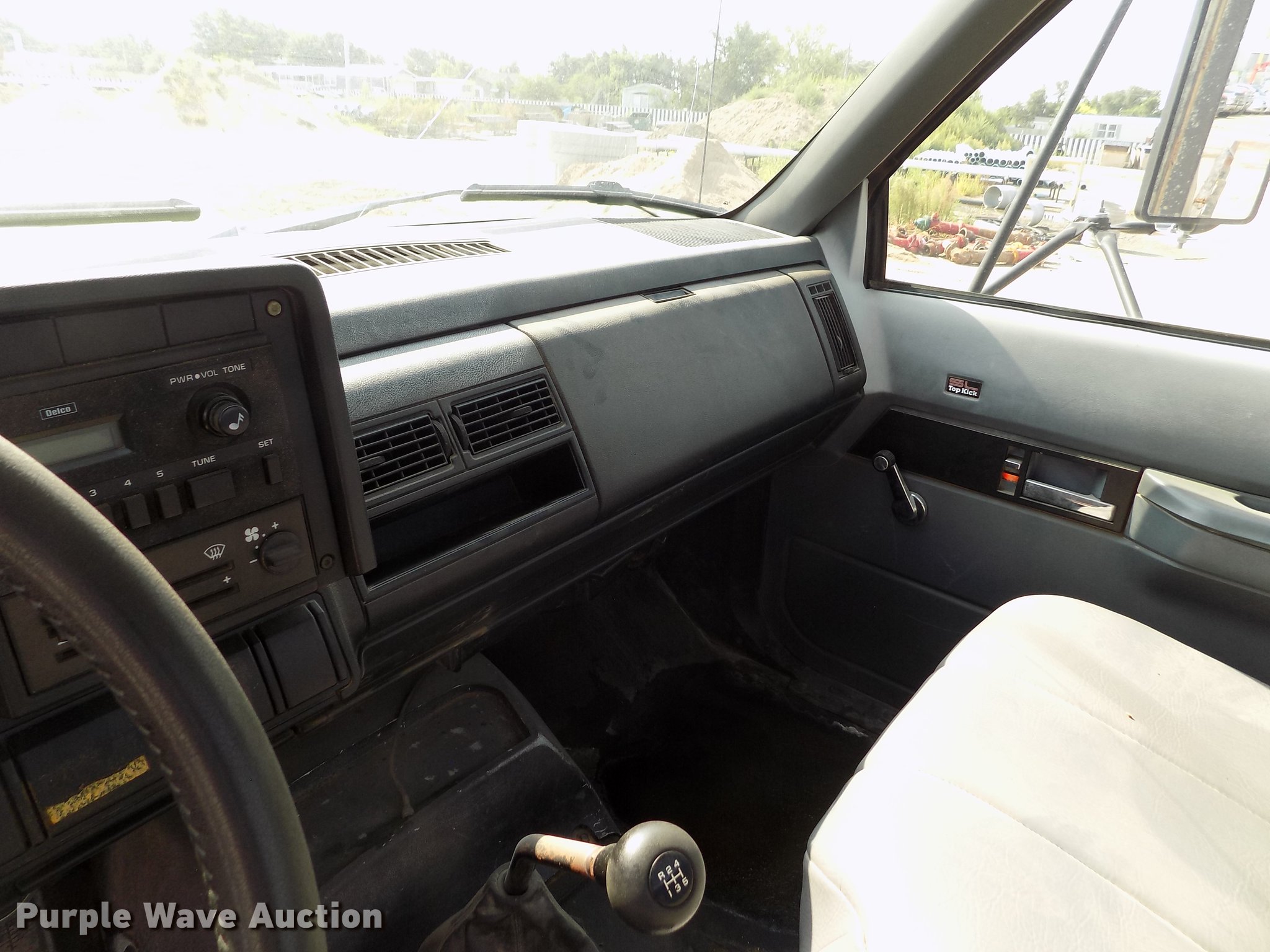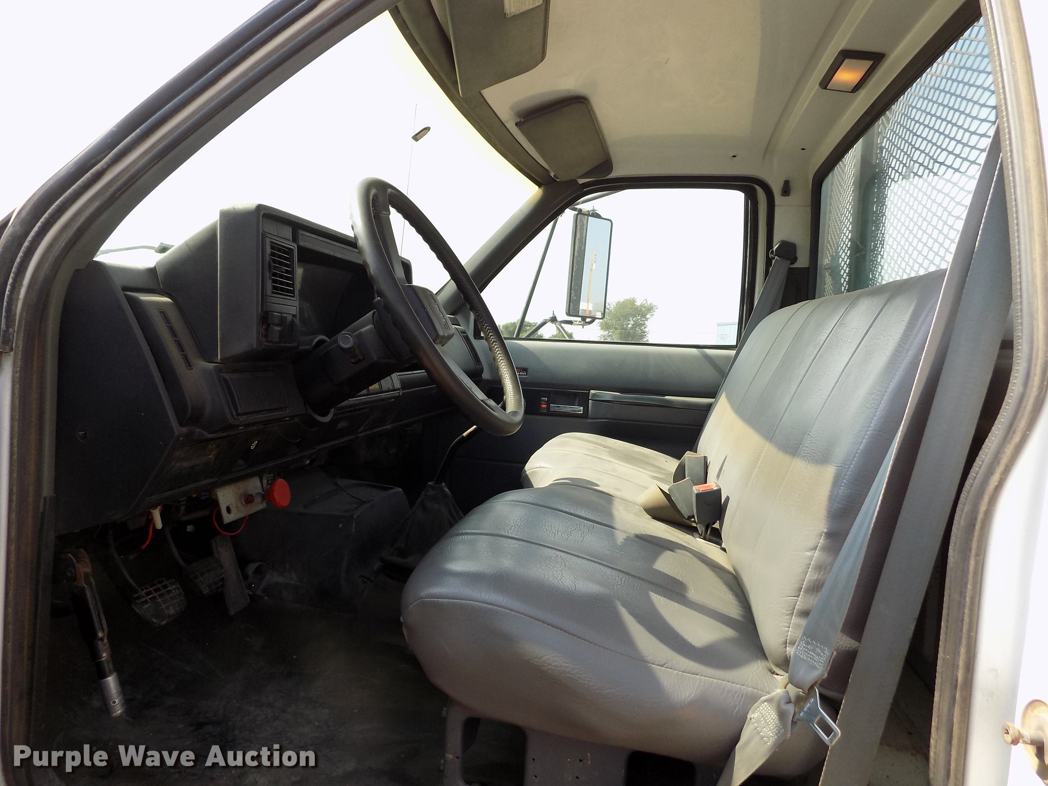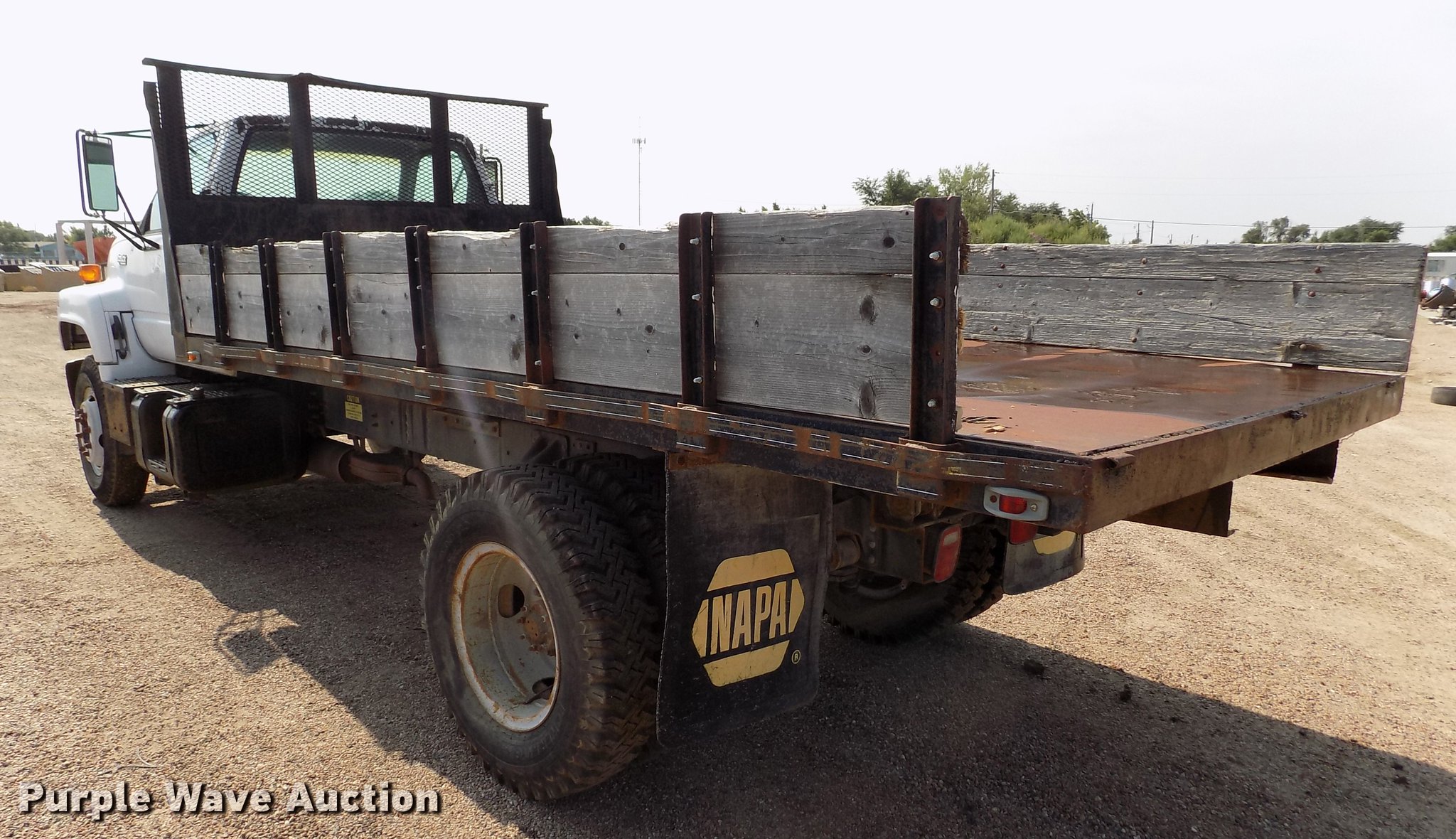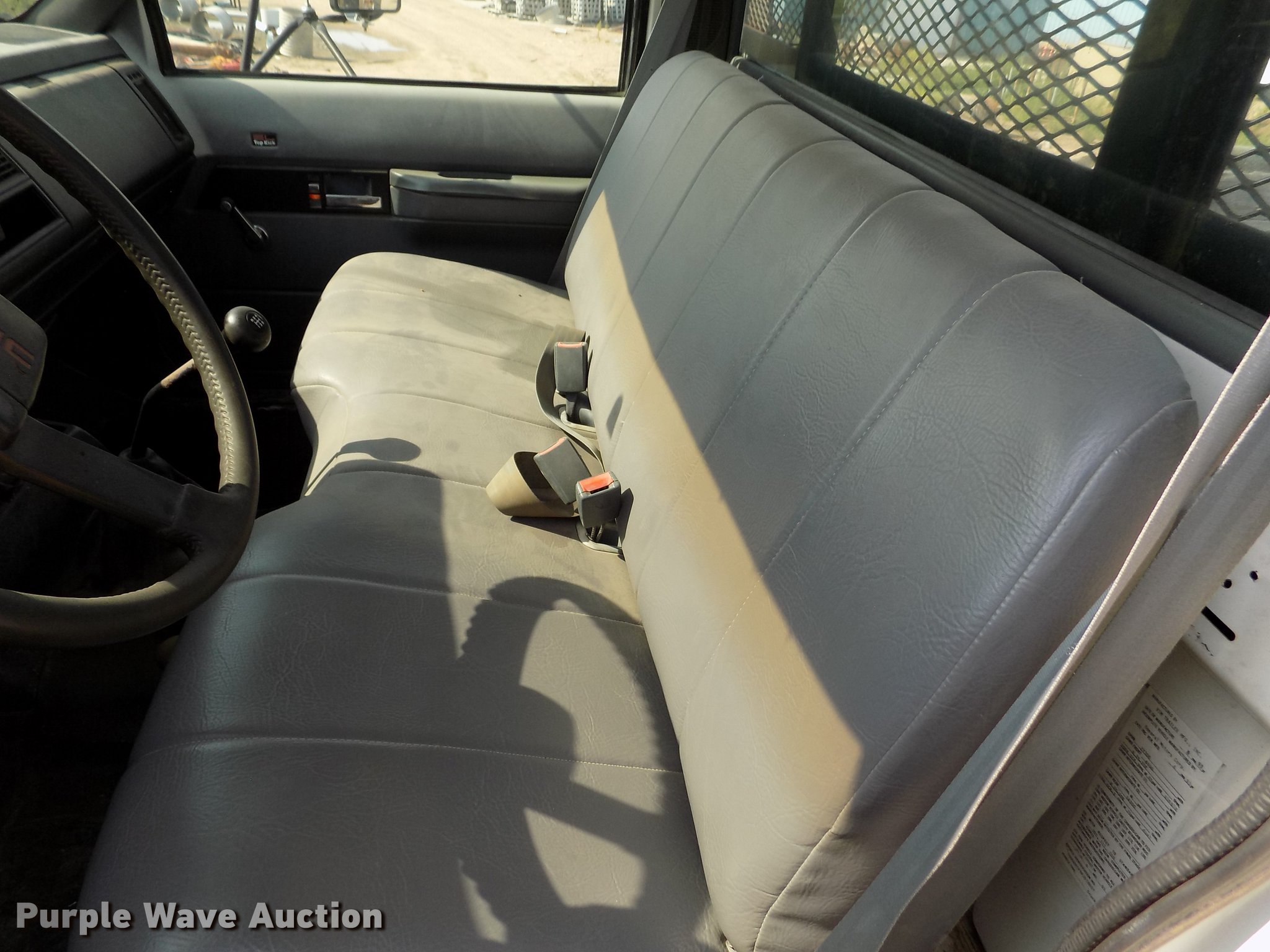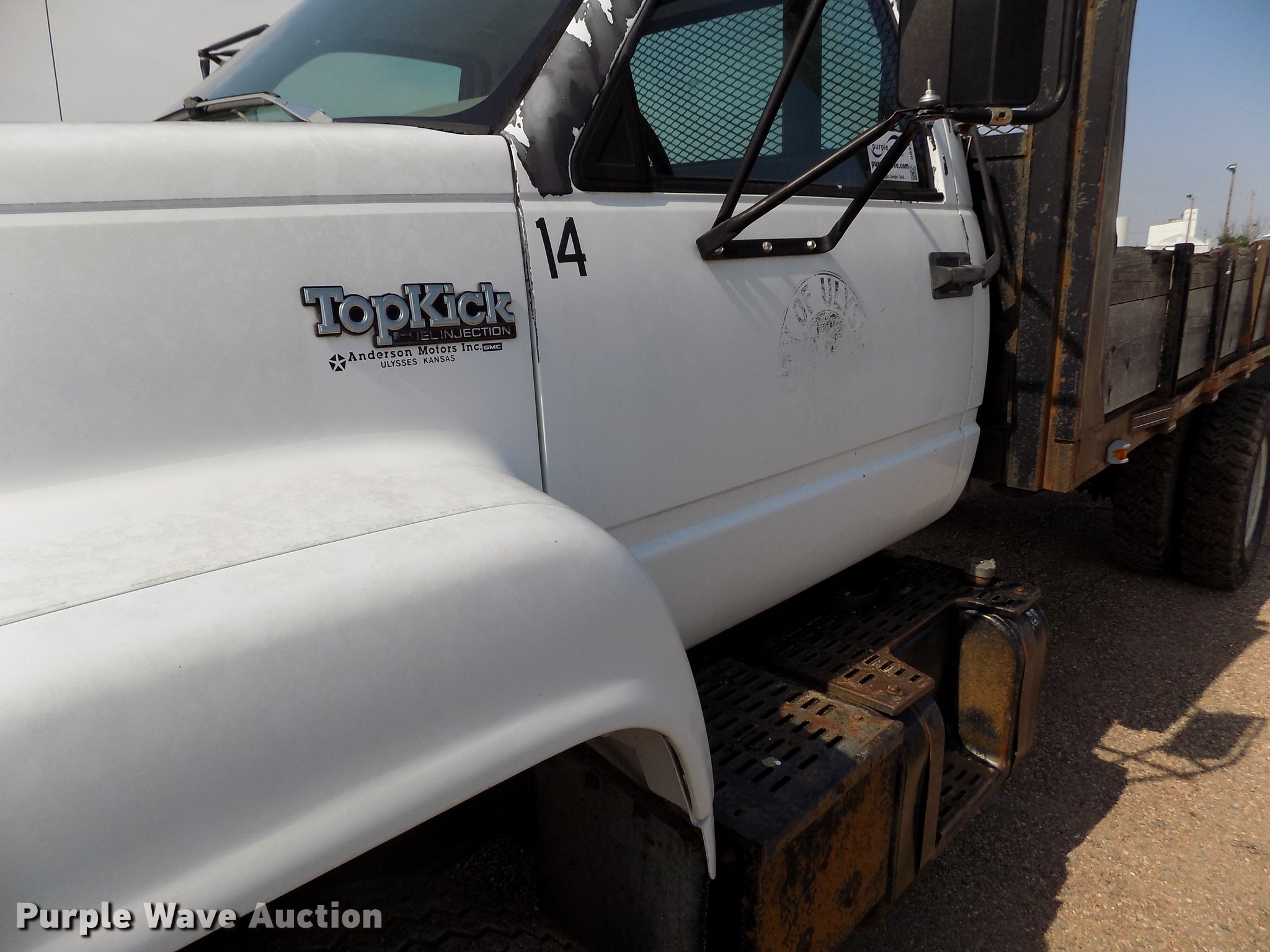 Purple Wave is selling a used Construction Dump Truck in Kansas. This item is a 1993 GMC TopKick dump truck with the following: 64,481 miles on odometer, 6.0L V8 gas engine, Five speed manual transmission, Steerable lift axle, Heat, AM/FM, PTO, 15.5'L x 92"W steel dump bed, 17" side board height, Single ram hoist, Single fuel tank, Spring suspension, Hydraulic brakes, 9.00-20 tires, GVWR 22,300 lbs, FAWR 8,100 lbs, RAWR 14,200 lbs, Windshield cracked, Hydraulic pump weak, Will not lift loaded bed