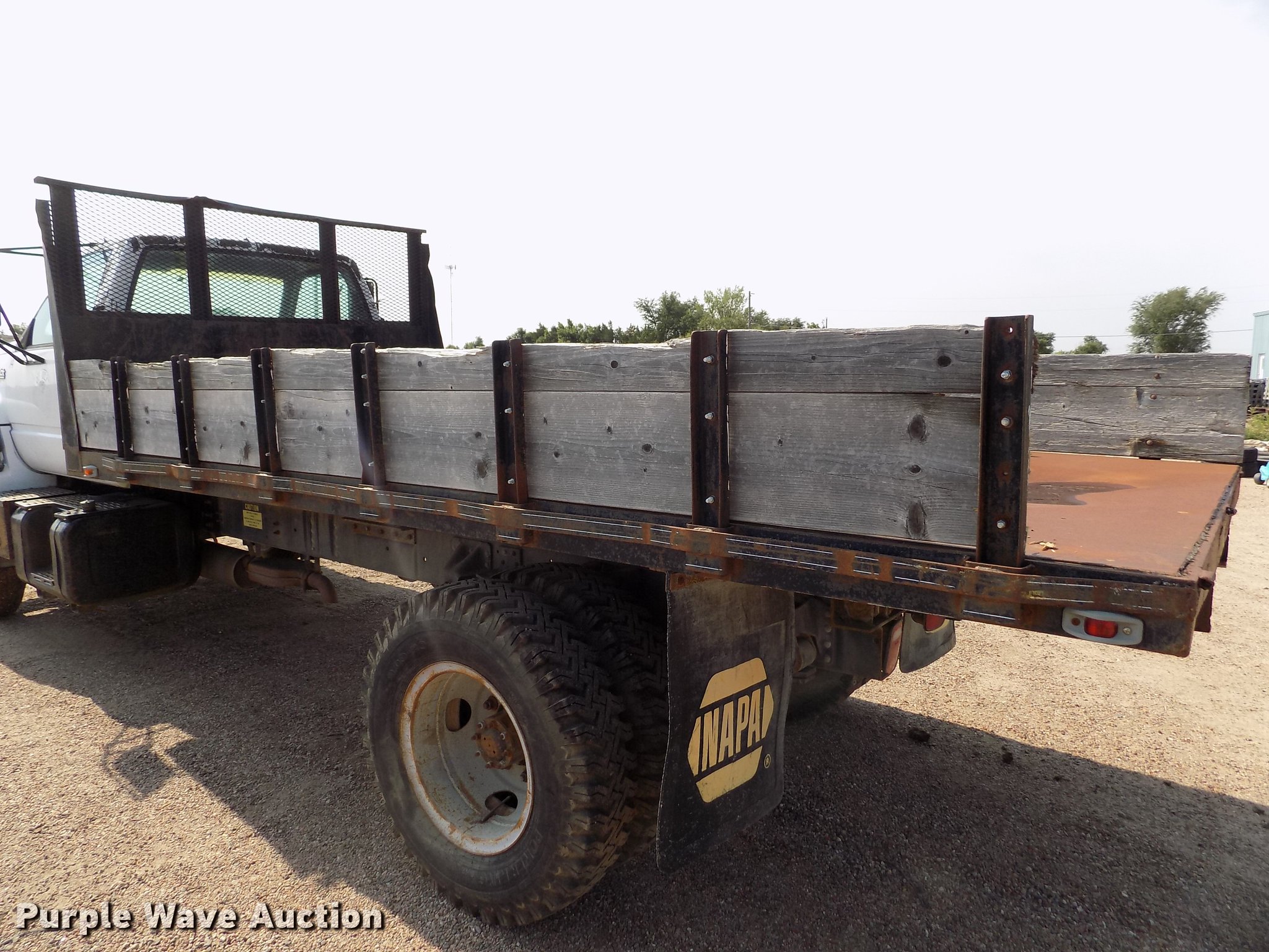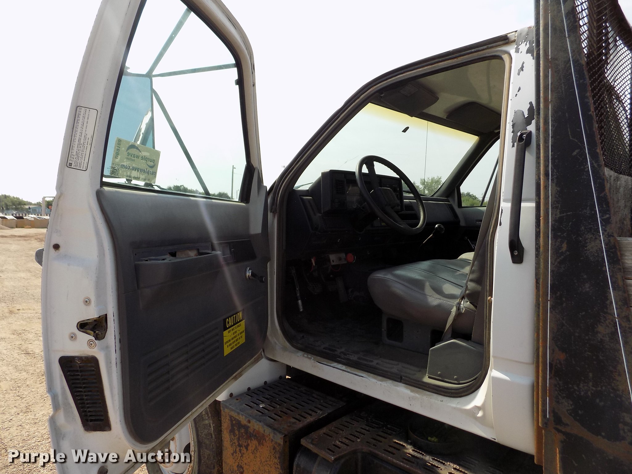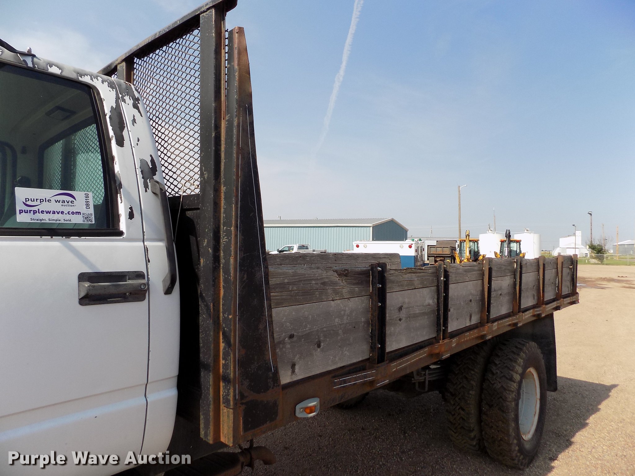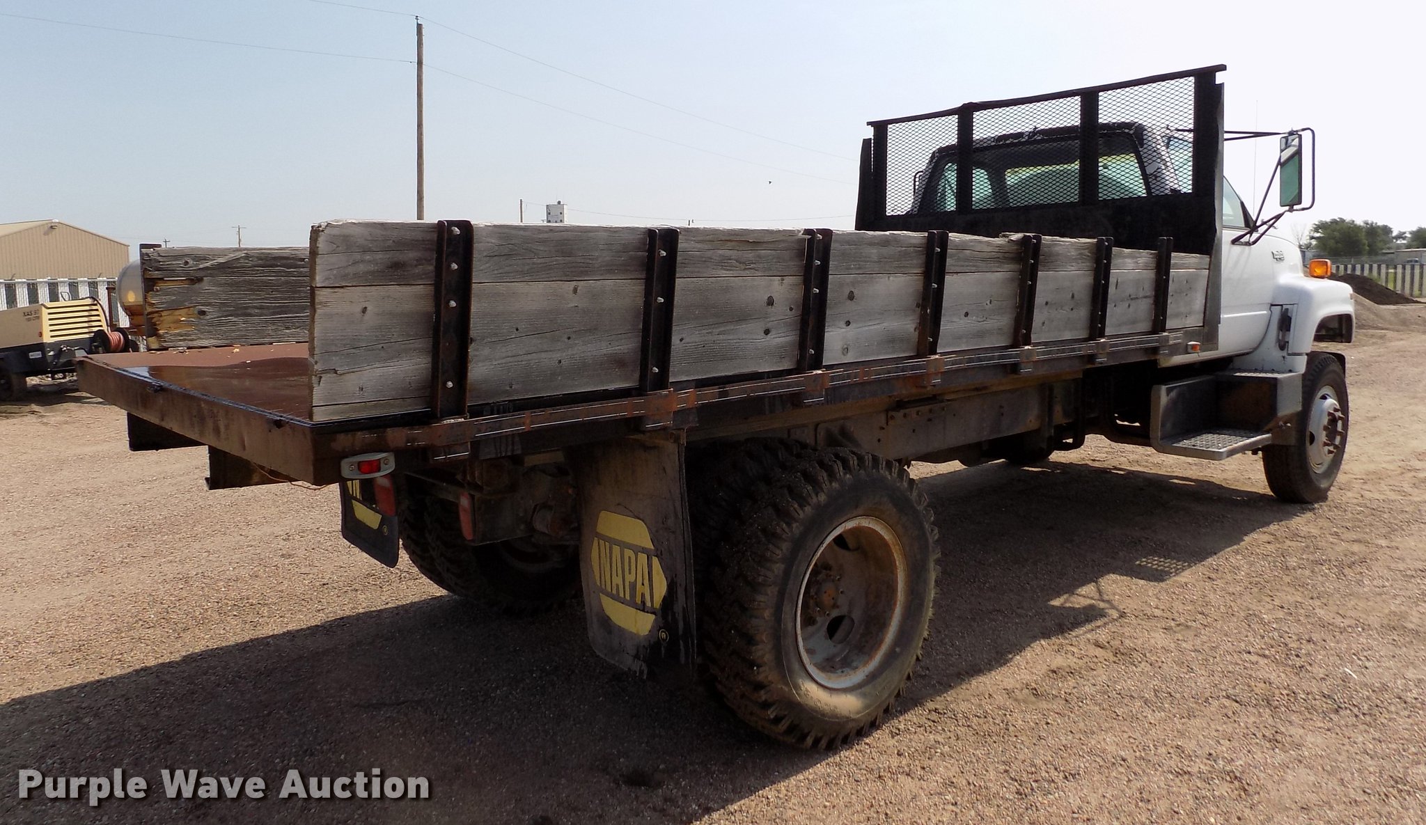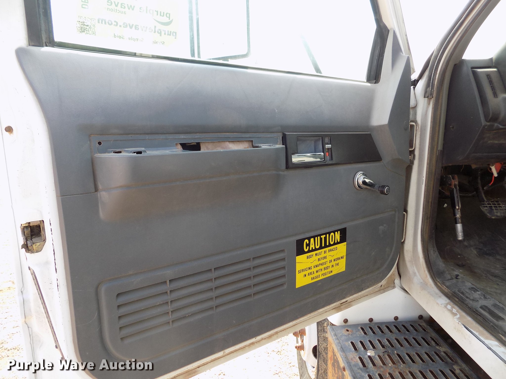 Purple Wave is selling a used Construction Dump Truck in Kansas. This item is a 1993 GMC TopKick dump truck with the following: 64,481 miles on odometer, 6.0L V8 gas engine, Five speed manual transmission, Steerable lift axle, Heat, AM/FM, PTO, 15.5'L x 92"W steel dump bed, 17" side board height, Single ram hoist, Single fuel tank, Spring suspension, Hydraulic brakes, 9.00-20 tires, GVWR 22,300 lbs, FAWR 8,100 lbs, RAWR 14,200 lbs, Windshield cracked, Hydraulic pump weak, Will not lift loaded bed