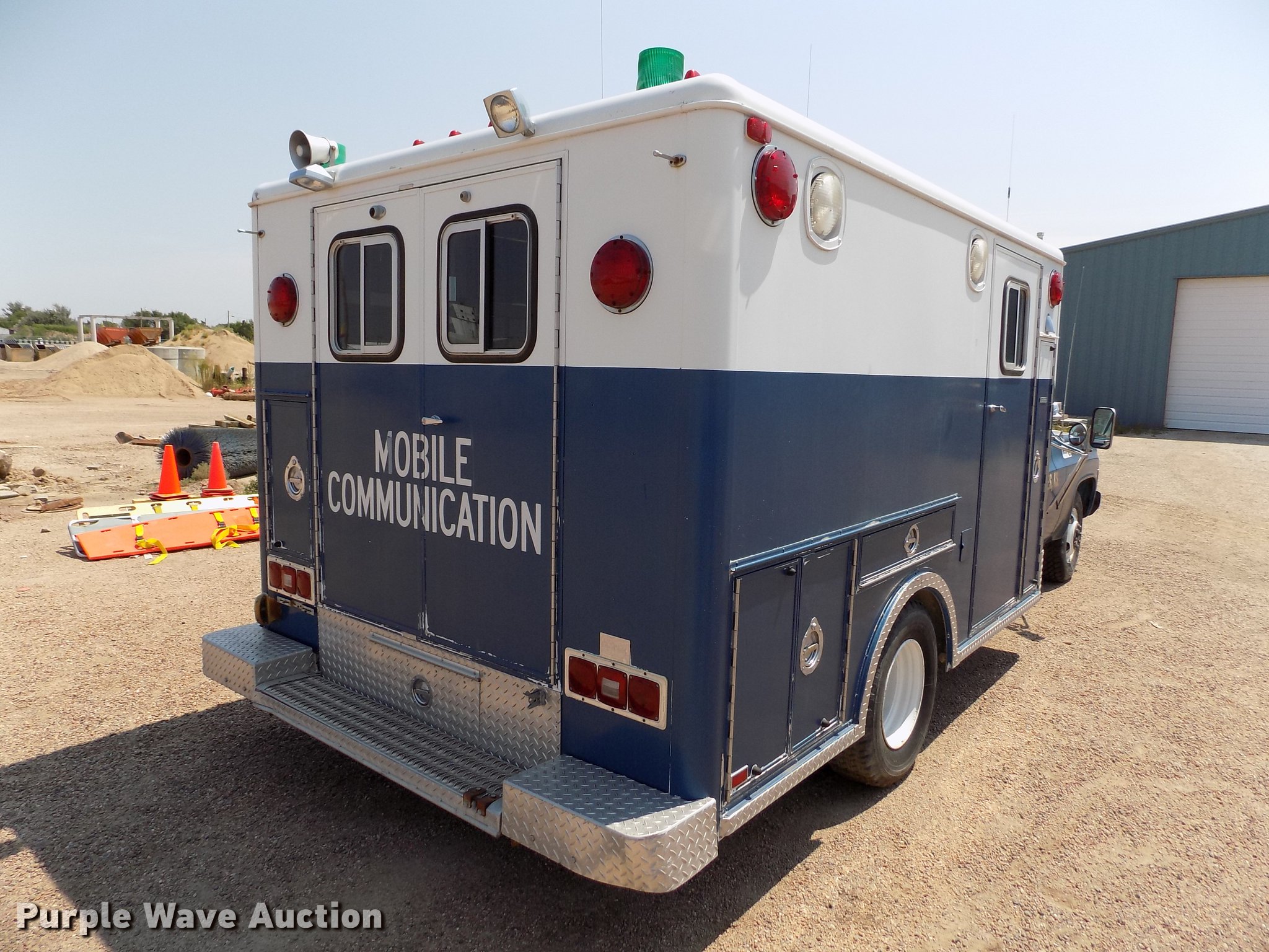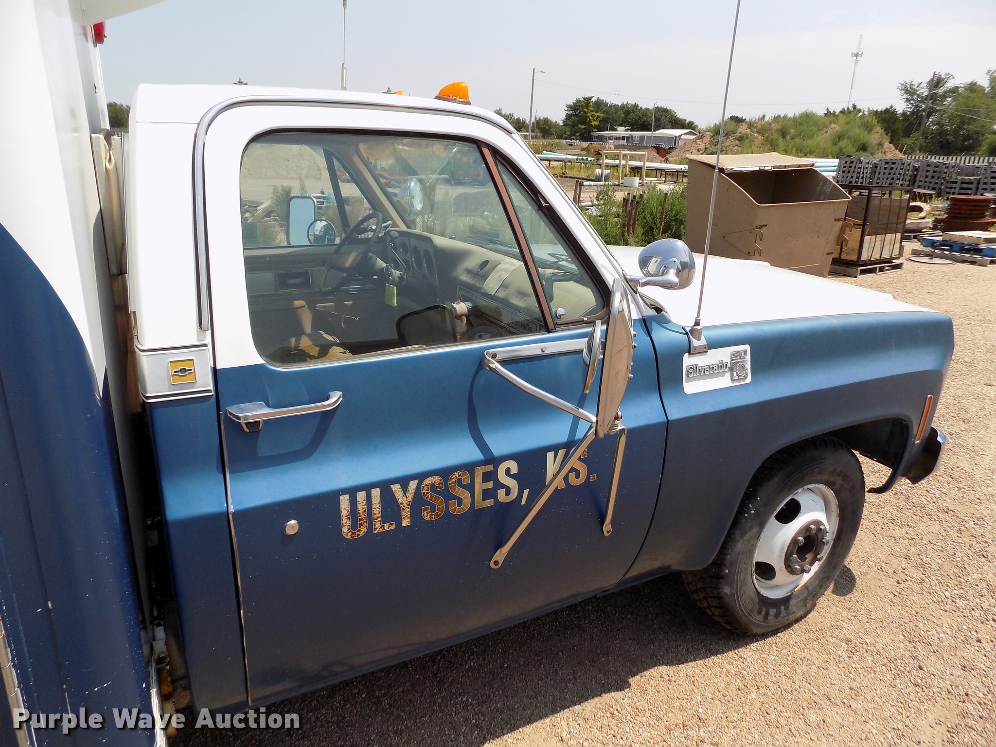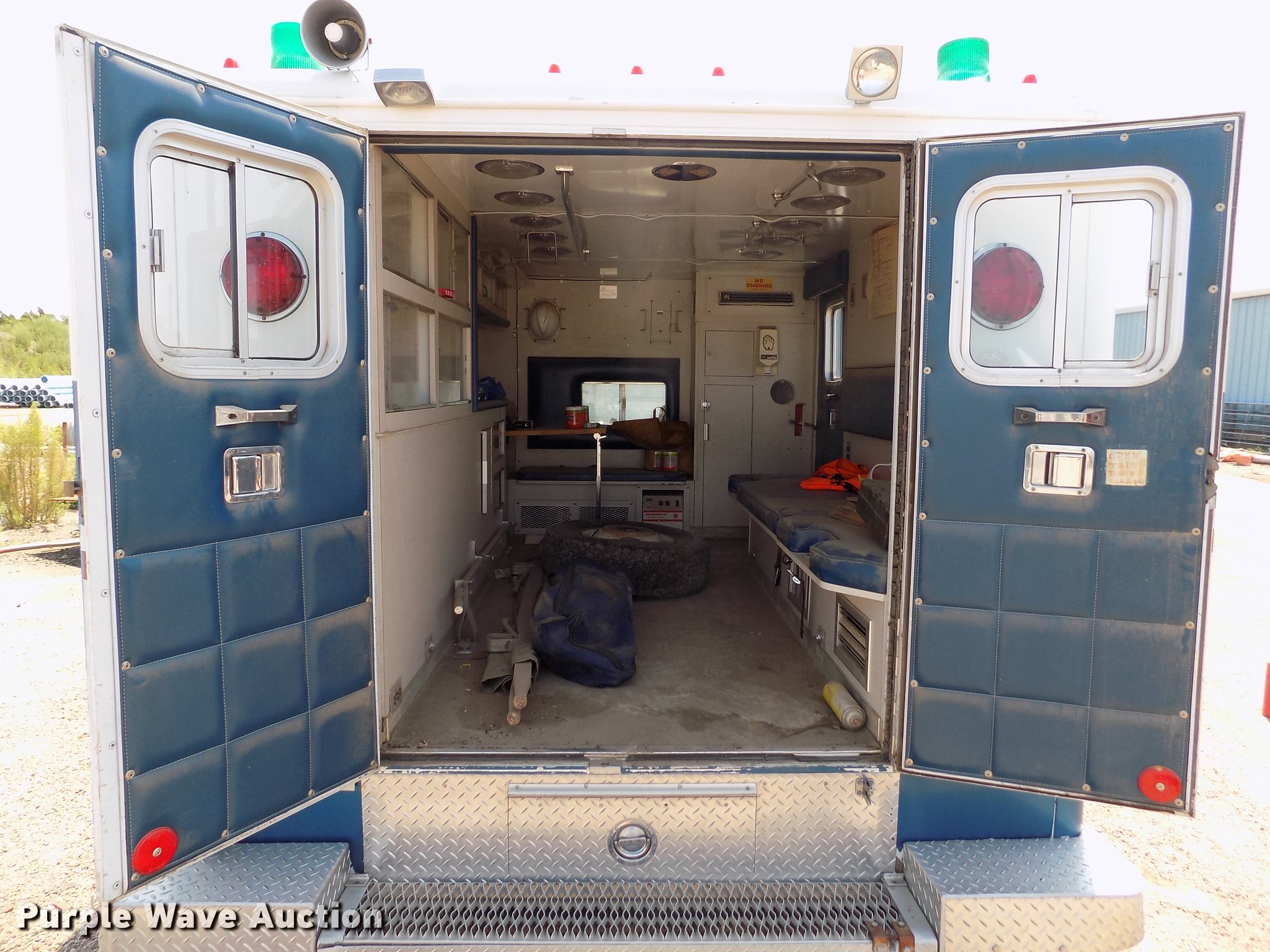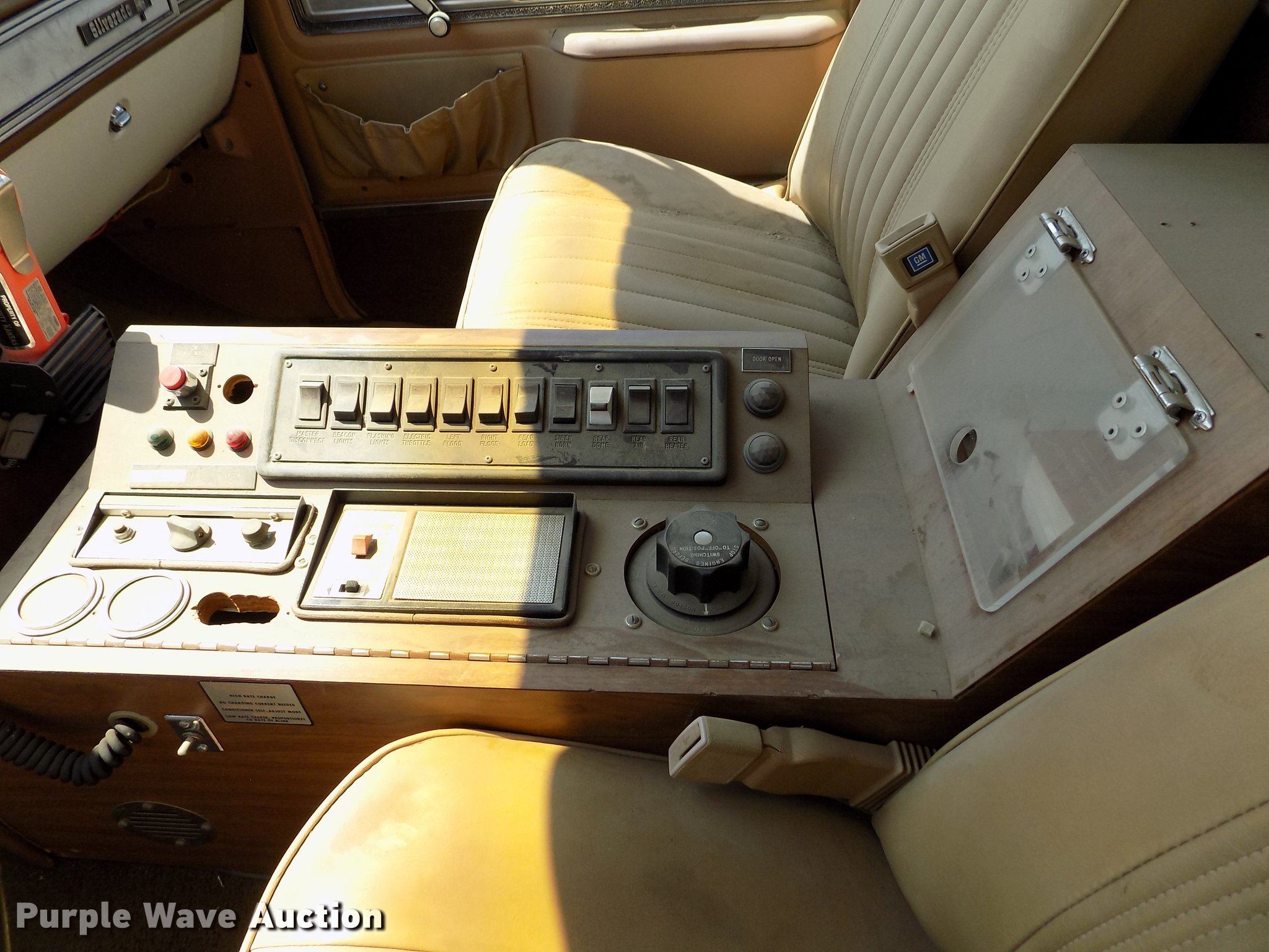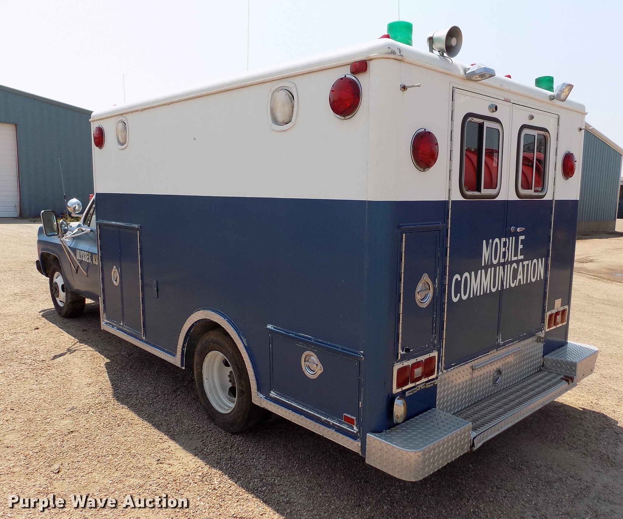 Purple Wave is selling a used Fire Truck or Emergency Vehicle in Kansas. This item is a 1978 Chevrolet C30 ambulance with the following: 48,430 miles on odometer, 7.4L V8 gas engine, Automatic transmission, AC and heat, Cruise, AM/FM, Manual windows and locks, Vinyl interior, Yankee Coach body, Front tow hook, 9.5R16.5 tires, Unknown operating condition, Parts missing