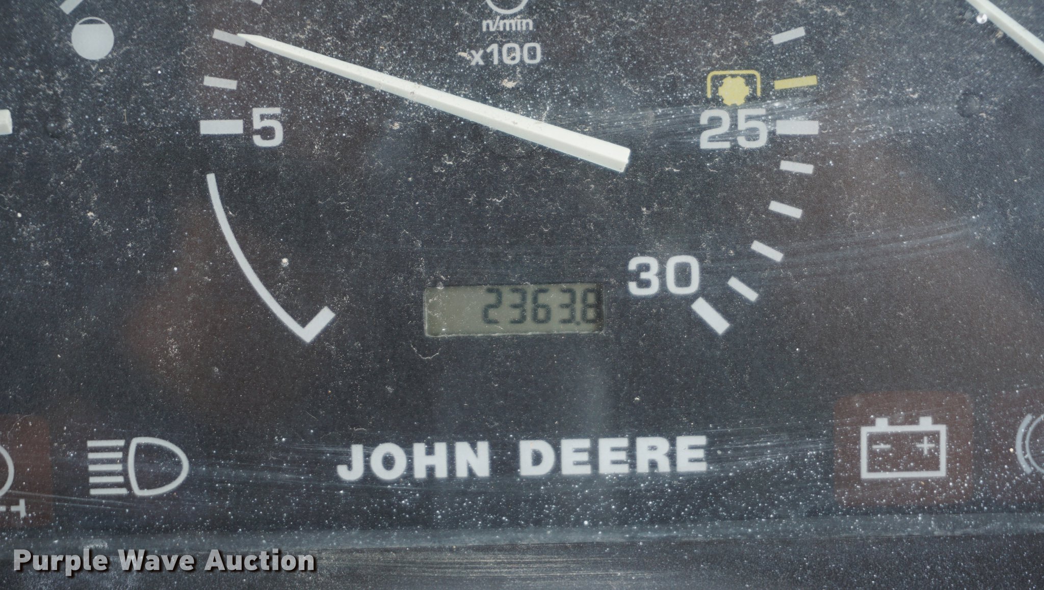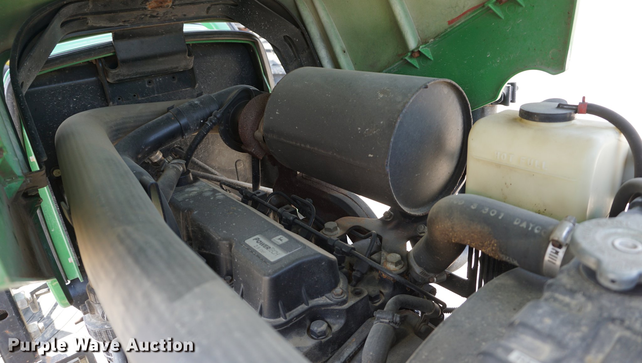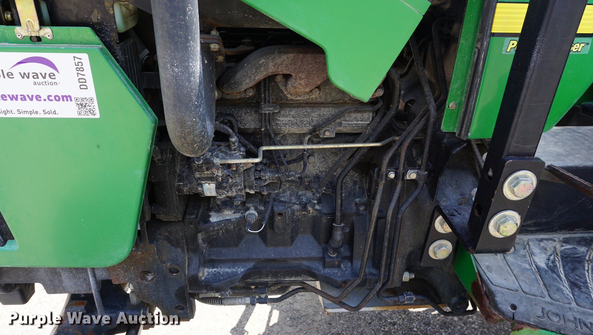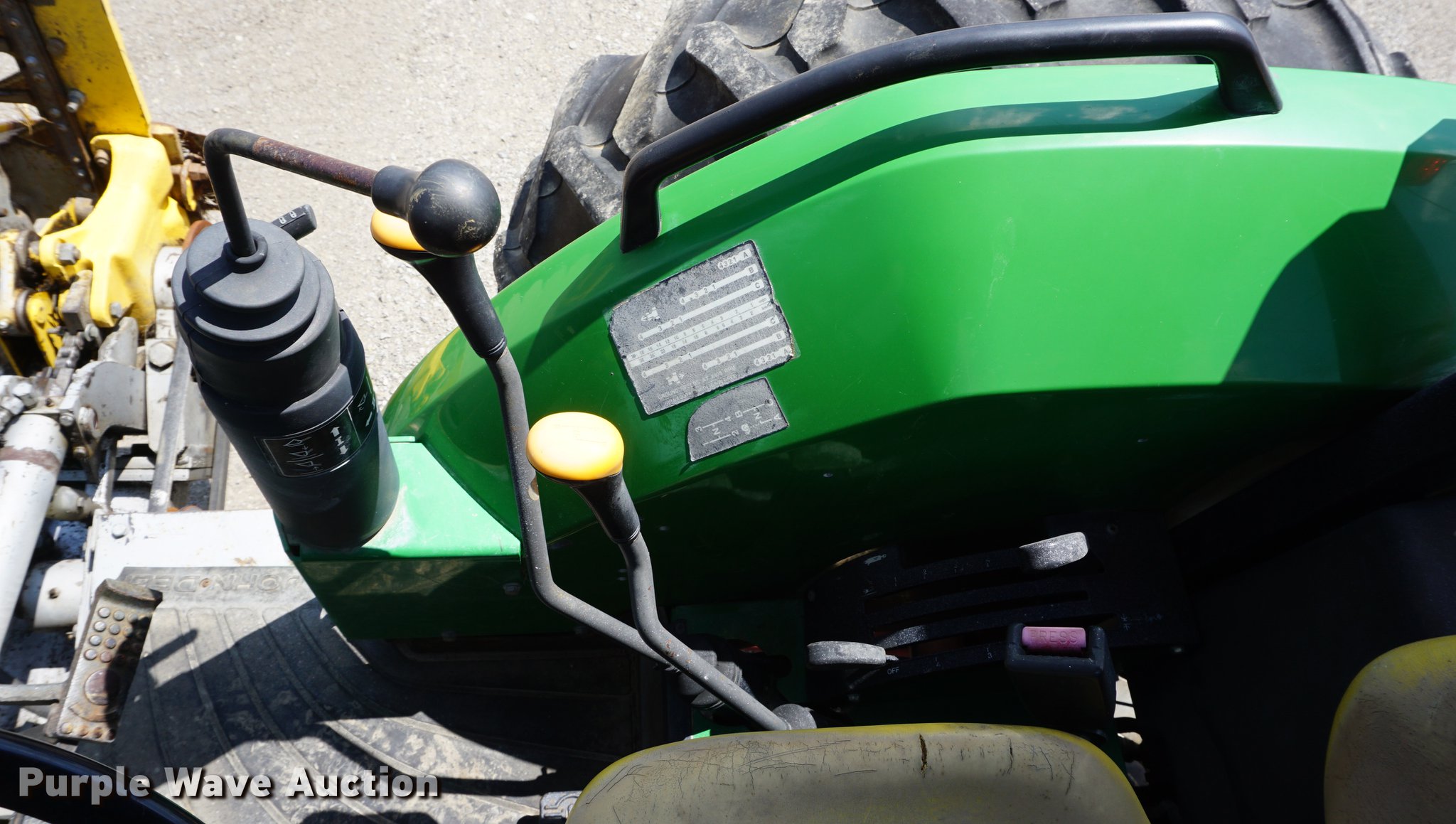 Purple Wave is selling a used Tractor in Missouri. This item is a 2002 John Deere 5320 tractor with the following: 2,364 hours on meter, John Deere 3029T 2.9L three cylinder turbo diesel engine, 64 HP, Power Reverser transmission, 12F-12R gears, Left-hand reverser, Canopy, Suspension seat, Three point, No arms, Seven pin outlet, 540 PTO, 7'W sickle mower, Additional parts, 9.5L-15 front tires, 16.9-28 rear tires, Serial LV5320P236244