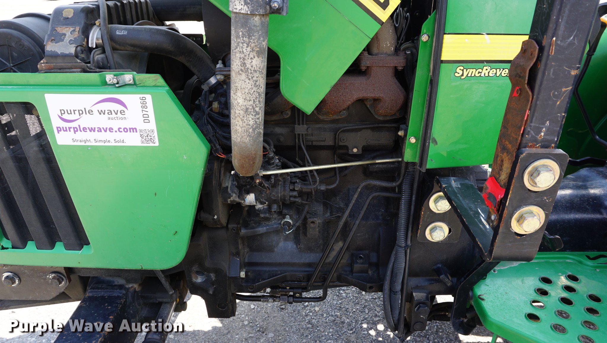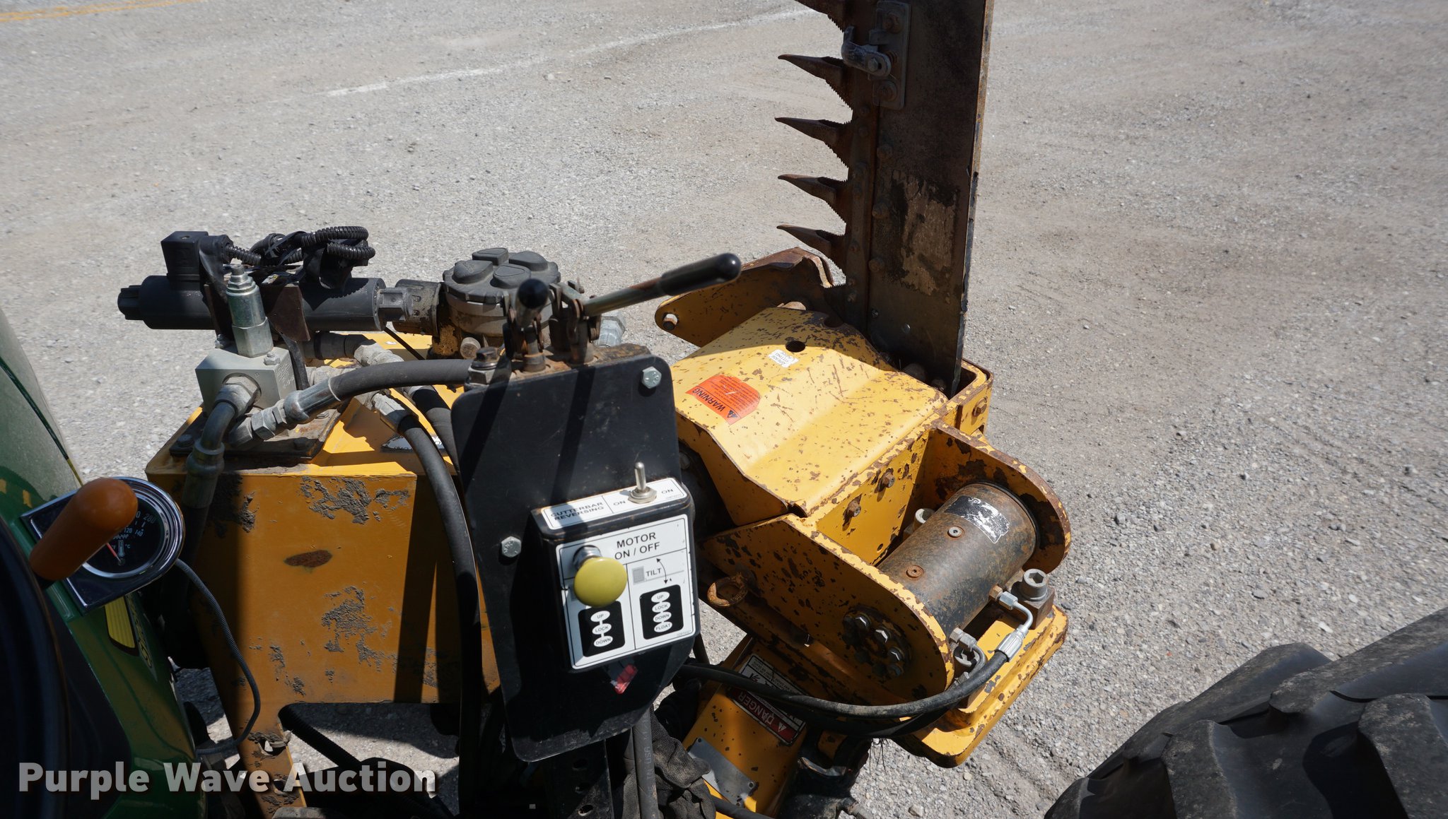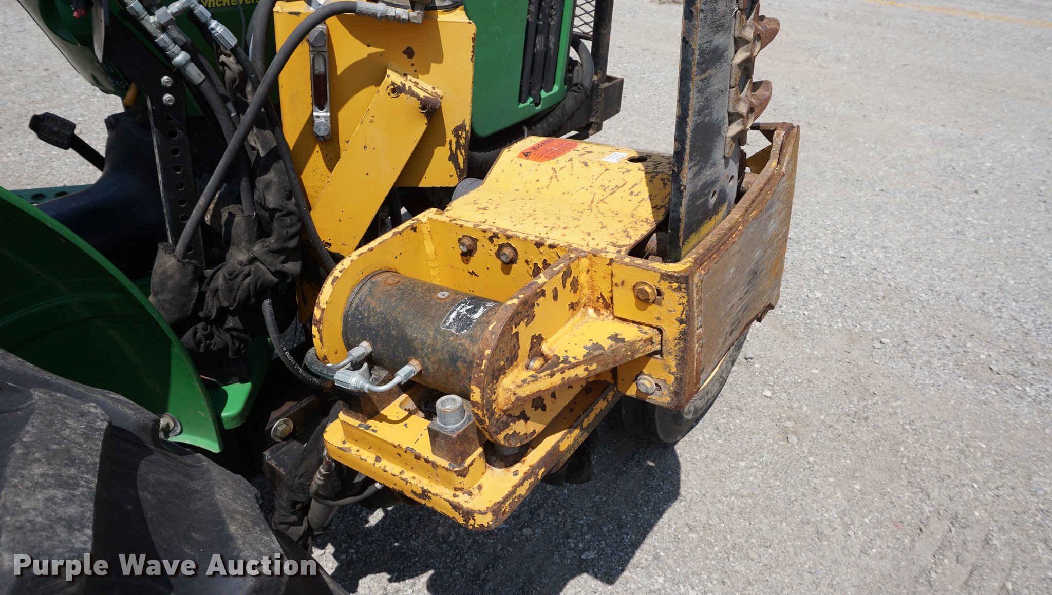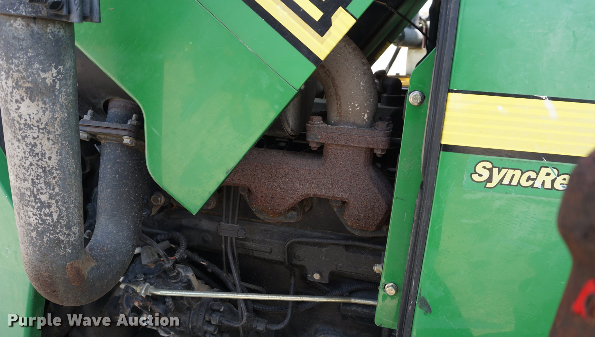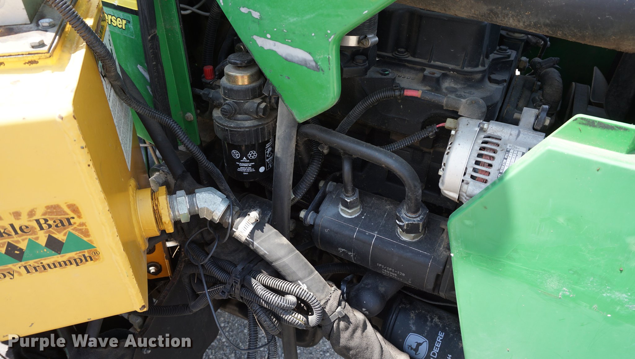 Purple Wave is selling a used Tractor in Missouri. This item is a 2005 John Deere 5205 tractor with the following: 1,472 hours on meter, John Deere 3029D 2.9L three cylinder diesel engine, 53 HP, Sync Reverser transmission, 8F-4R gears, Canopy, Suspension seat, Three point, Top link, 540 PTO, Rear hydraulic remote set, Front mounted hydraulic pump, 6'W sickle mower, 9.5L-15 front tires, 16.9-28 rear tires, Serial LV5205C621416