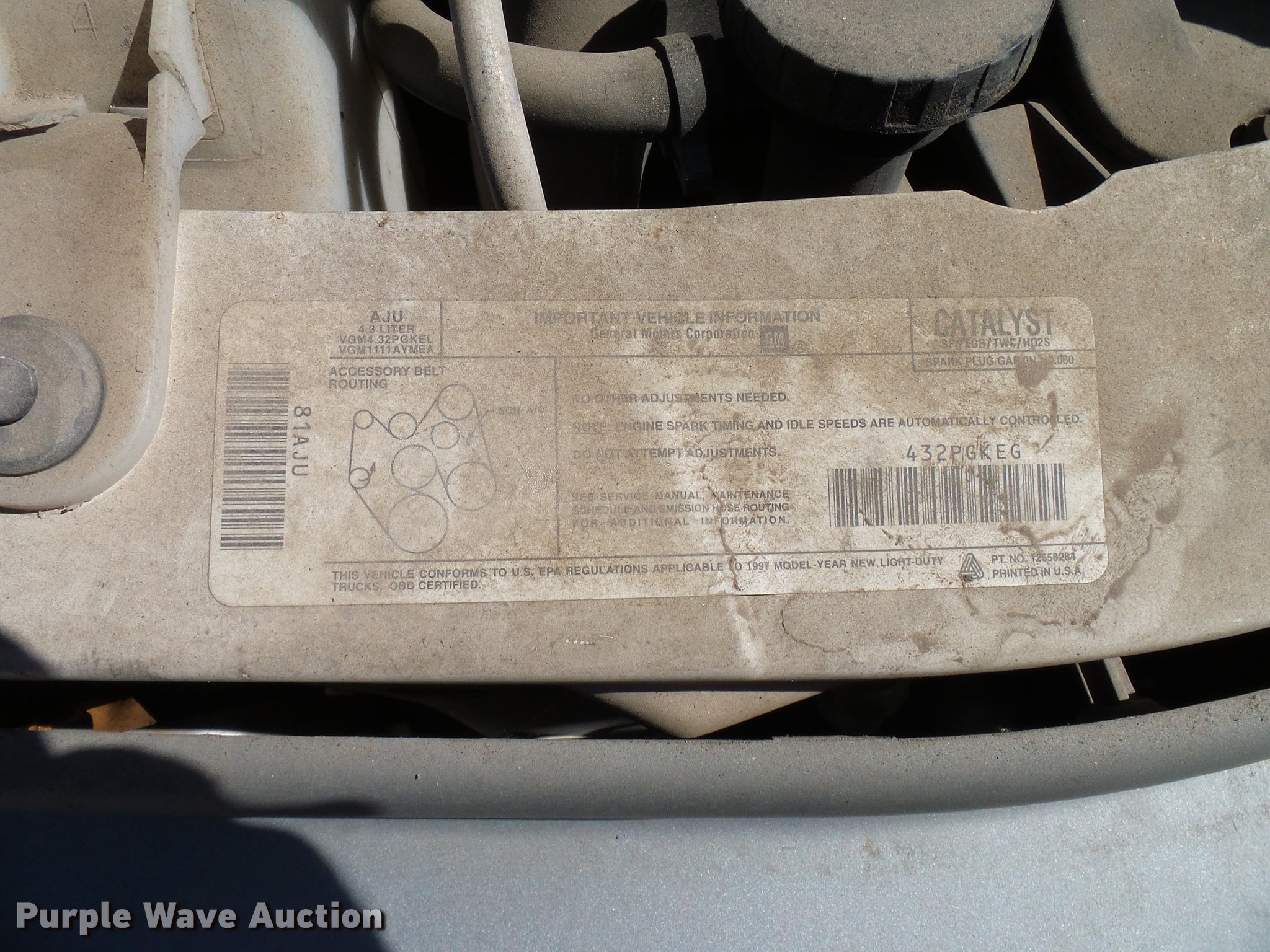 Purple Wave is selling a used Passenger Vehicle in Oklahoma. This item is a 1997 Chevrolet Astro van with the following: 87,297 miles on odometer, 4.3L V6 gas engine, Automatic transmission, AC and heat, Tilt, Cruise, AM/FM/cassette, Power locks, Cloth interior, Weatherguard cage divider, 215/65R15 tires, Weak battery, Unit# 9