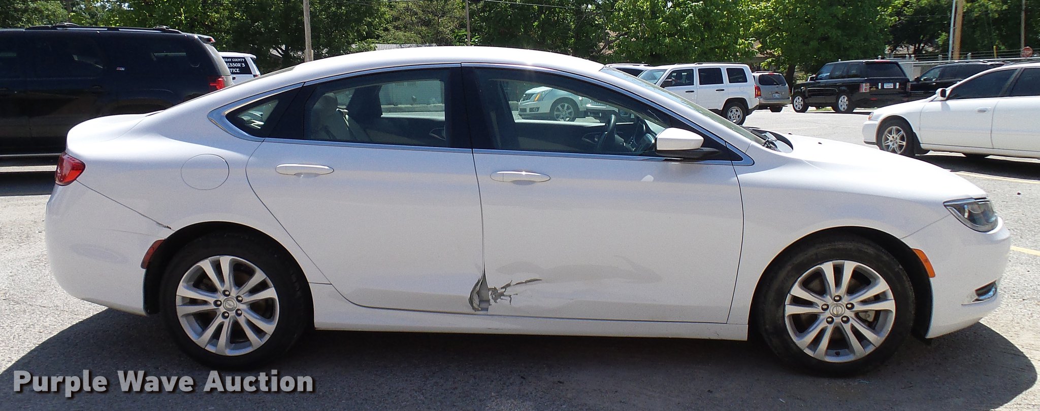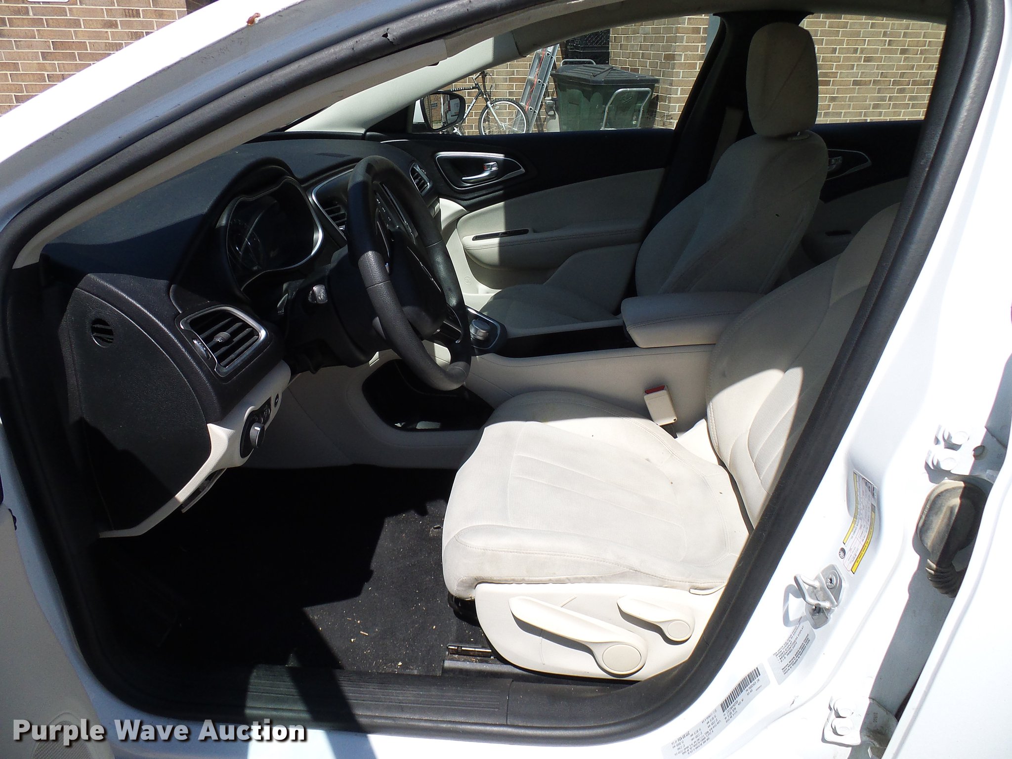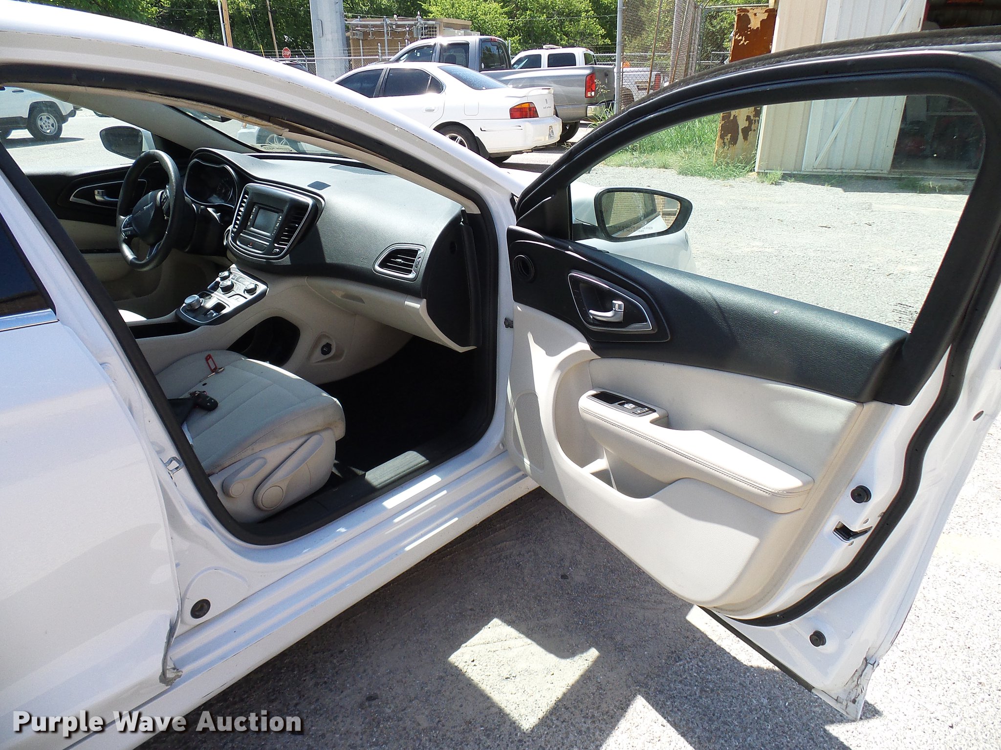 Purple Wave is selling a used Passenger Vehicle in Oklahoma. This item is a 2015 Chrysler 200 with the following: 103,944 miles on odometer, 2.4L L4 gas engine, Automatic transmission, AC and heat, Tilt, Cruise, AM/FM/CD, Power windows, locks, and mirrors, Cloth interior, 215/75R17 tires, Collision damage