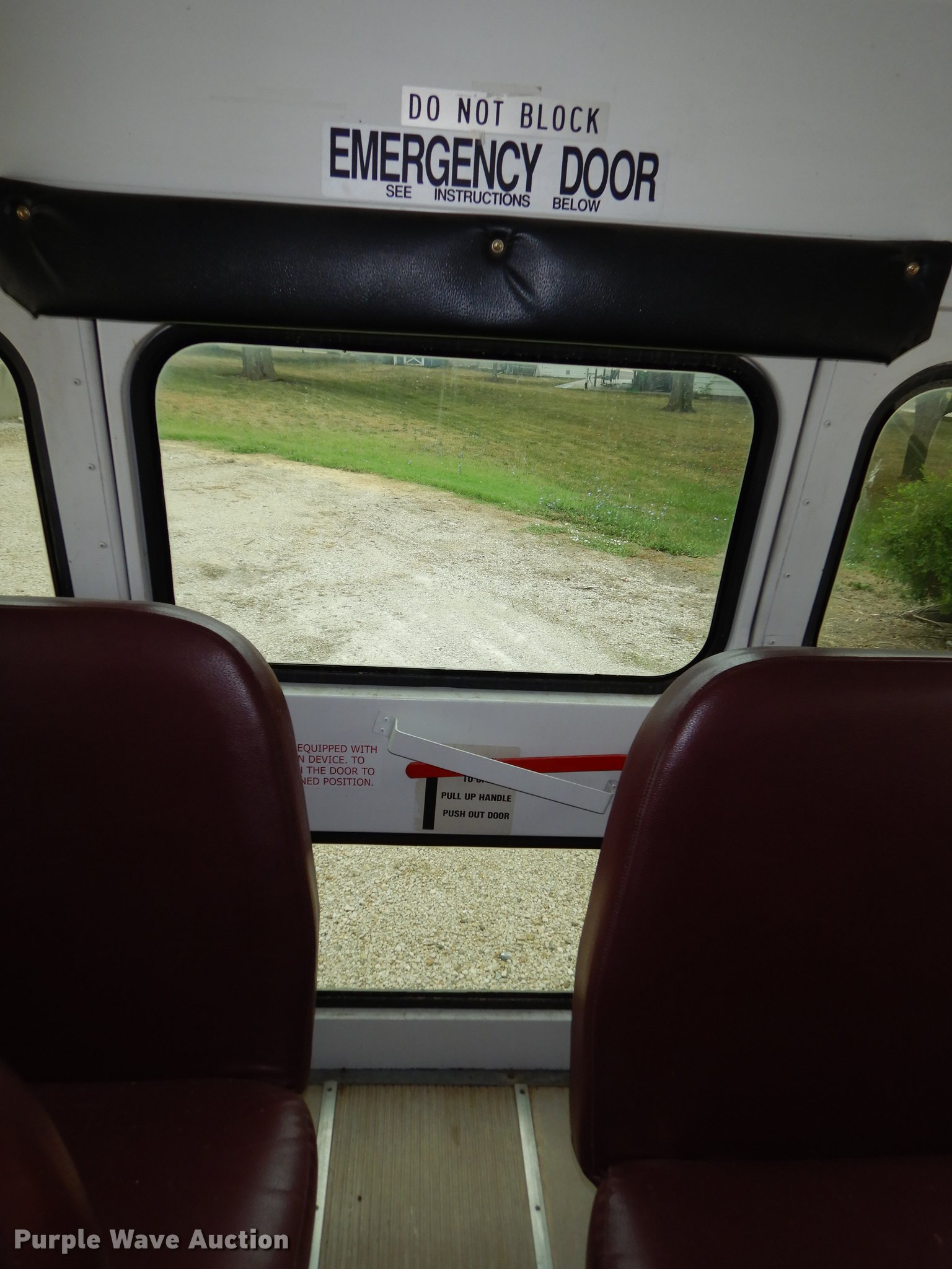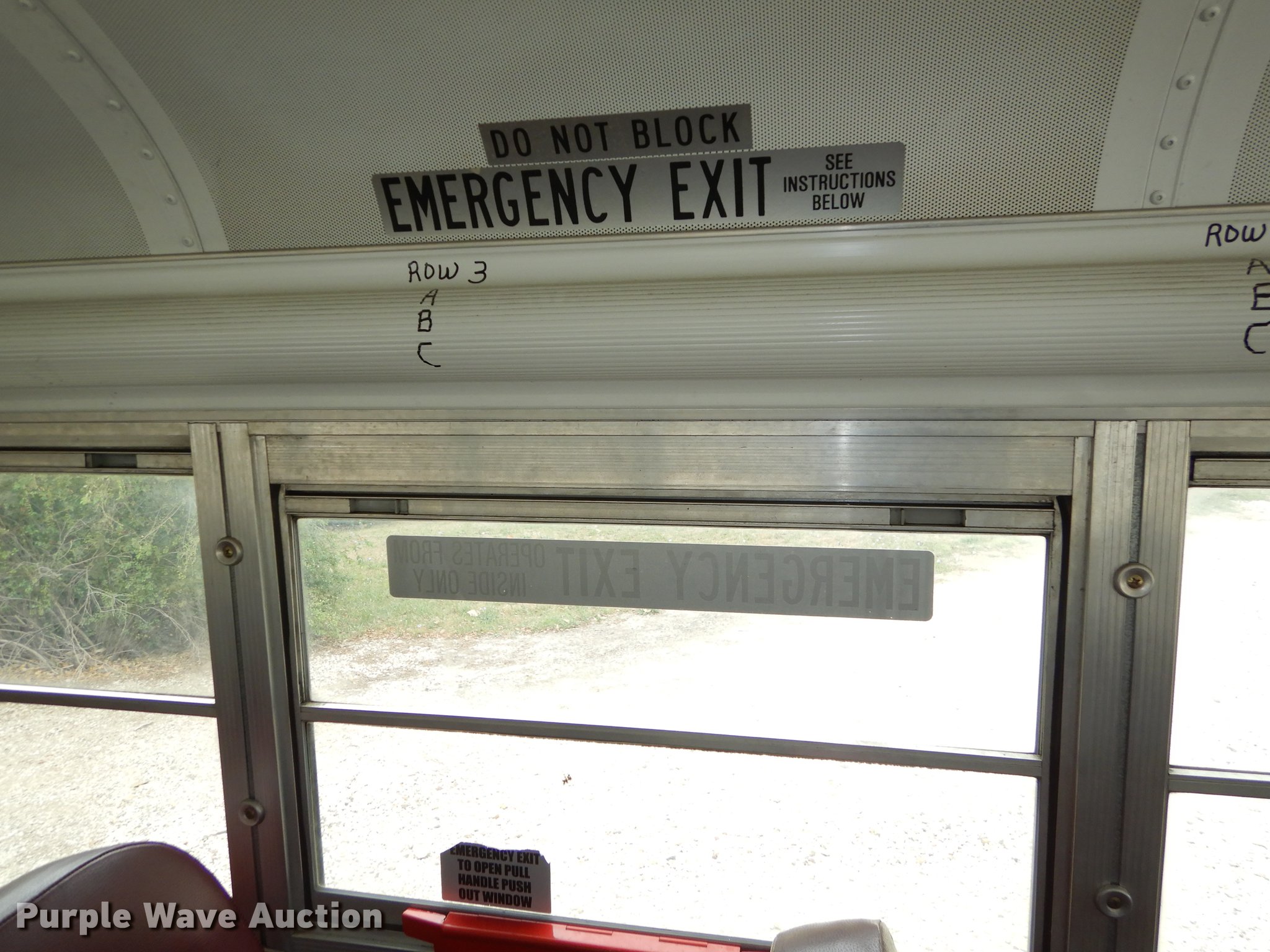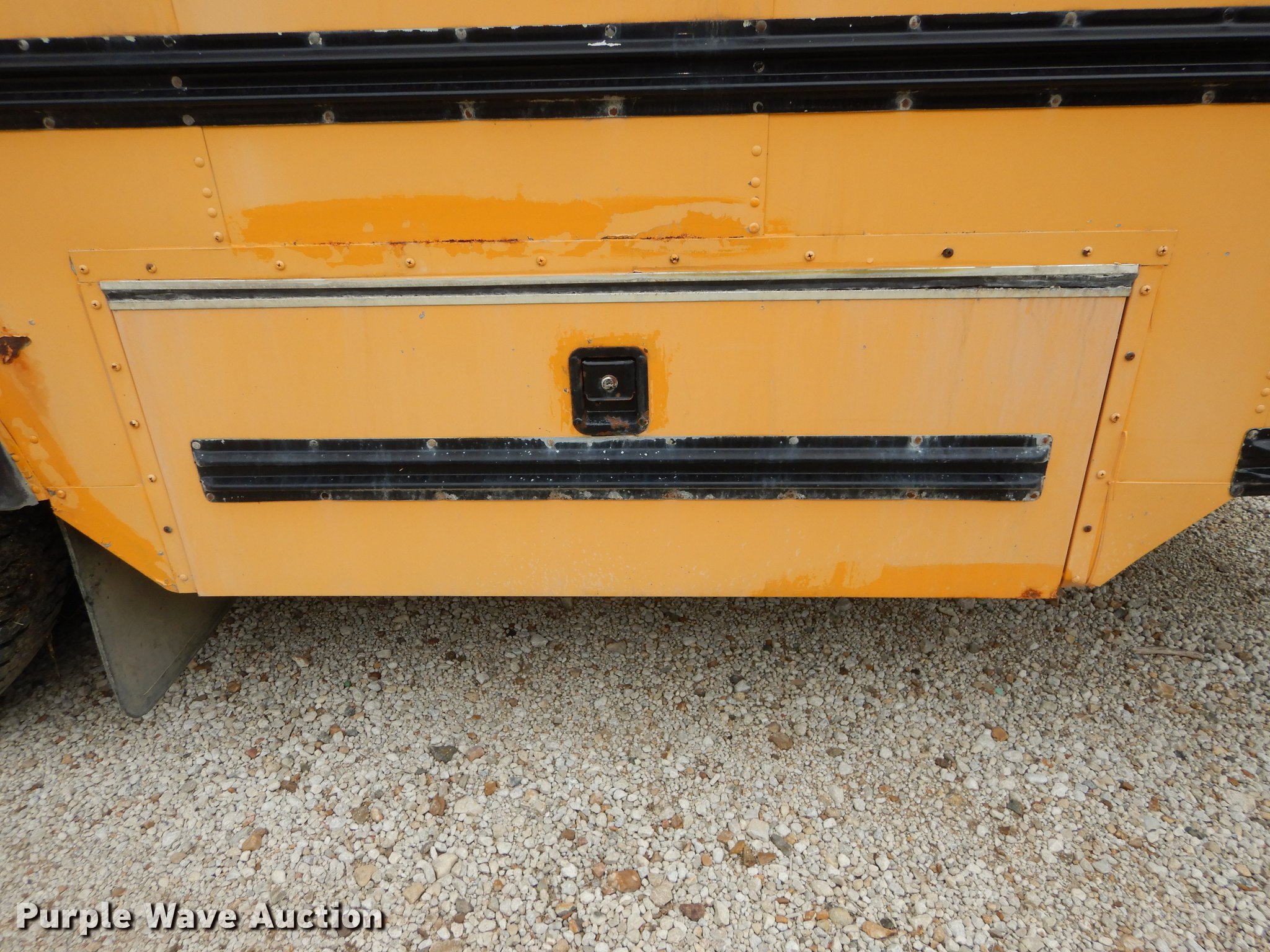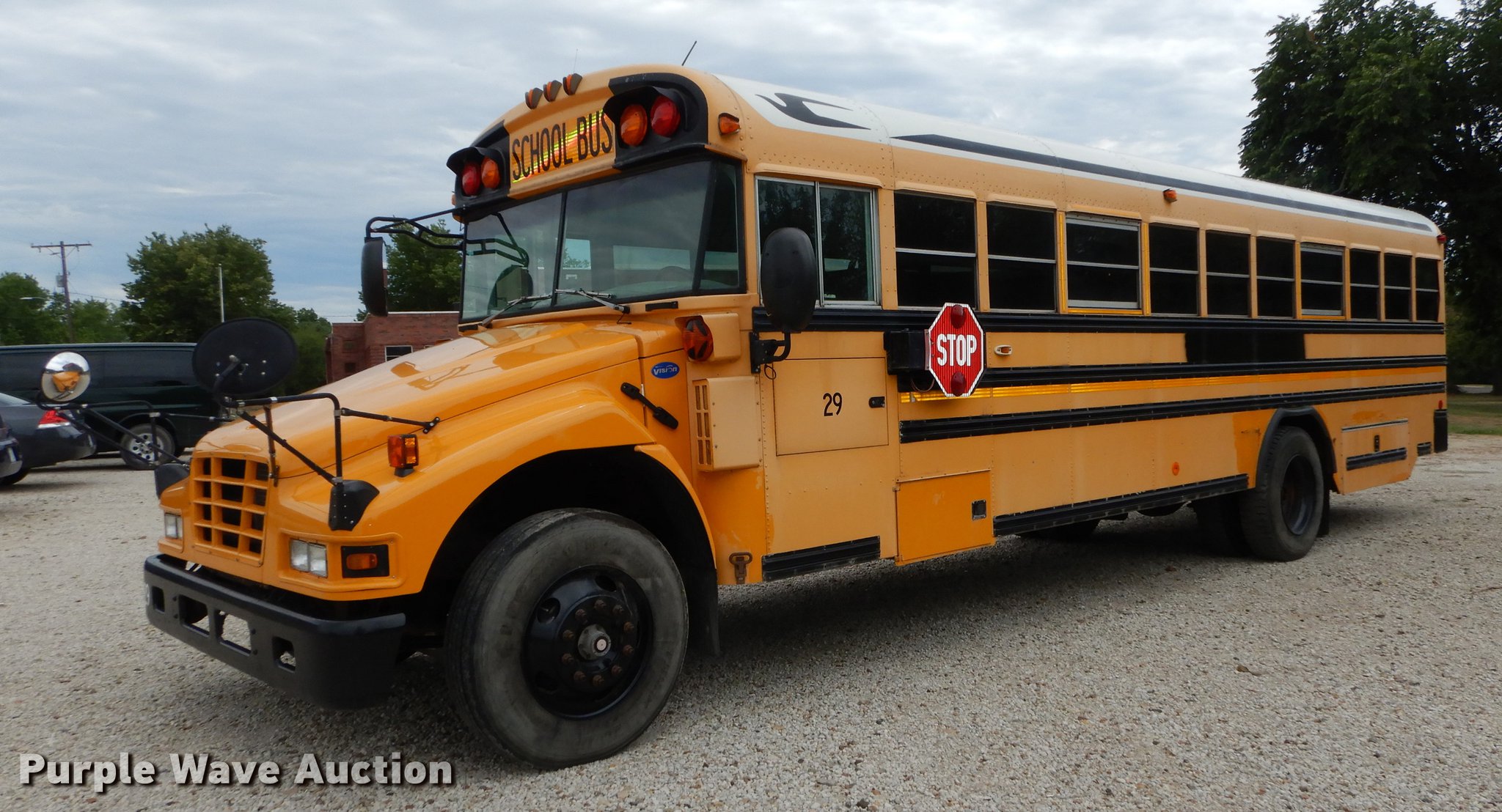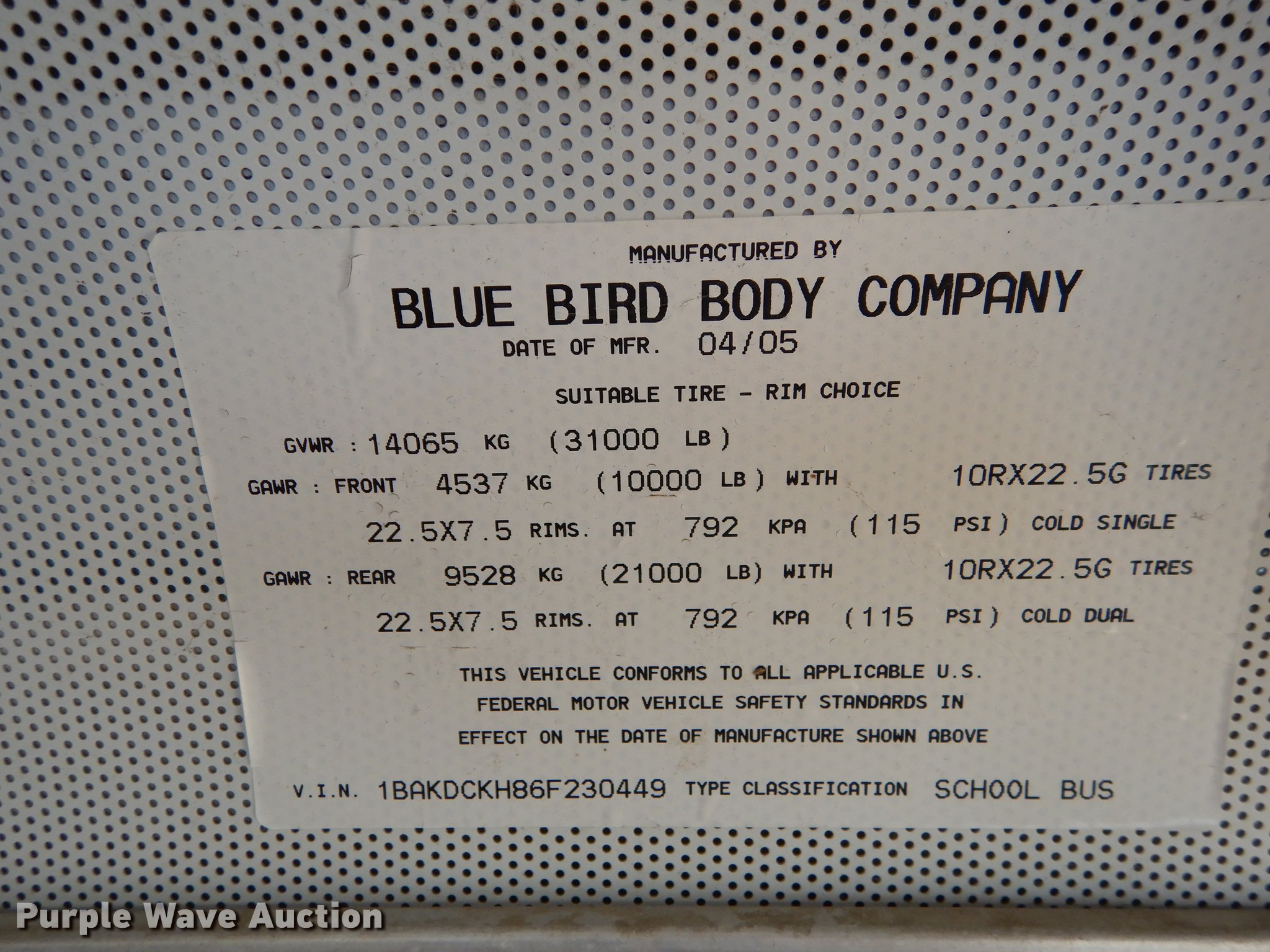 Purple Wave is selling a used Bus in Kansas. This item is a 2006 Blue Bird Vision school bus with the following: 154,536 miles on odometer, 5,968 hours on meter, Caterpillar C7 Acert 7.2L L6 turbo diesel engine, 210 HP, Allison automatic transmission, Single axle, Heat, Cruise, AM/FM/CD, Heated mirrors, Air suspension drivers seat, Vinyl interior, PA system, 59 passenger capacity, Ceiling, rear, and side emergency exits, Lighted stop sign, Backup alarm, Block heater, Luggage compartments, Front and rear tow hooks, Spring suspension, Hydraulic disc brakes, 239" wheelbase, Firestone 10R22.5 tires, GVWR 31,000 lbs, Unit# 29