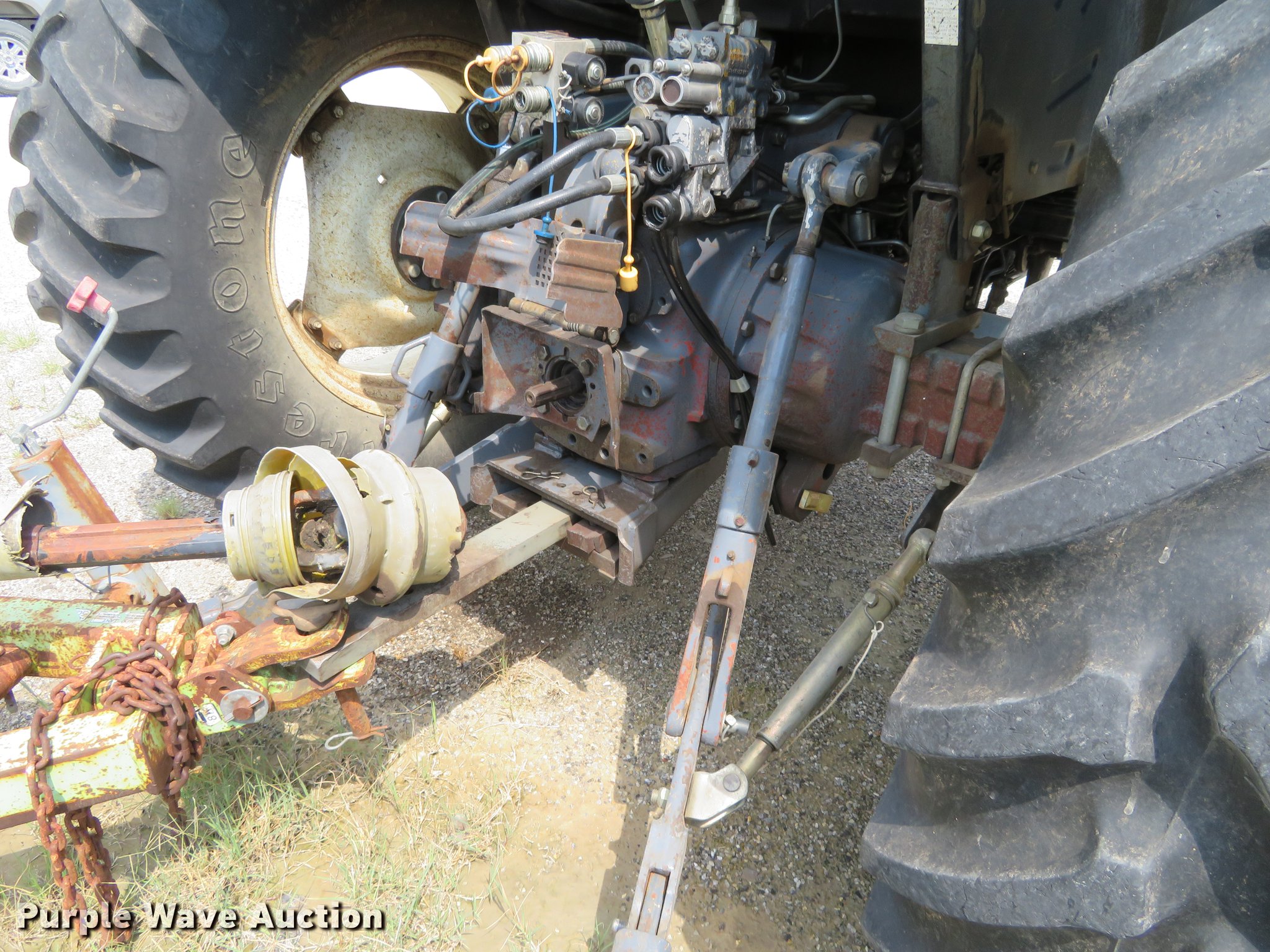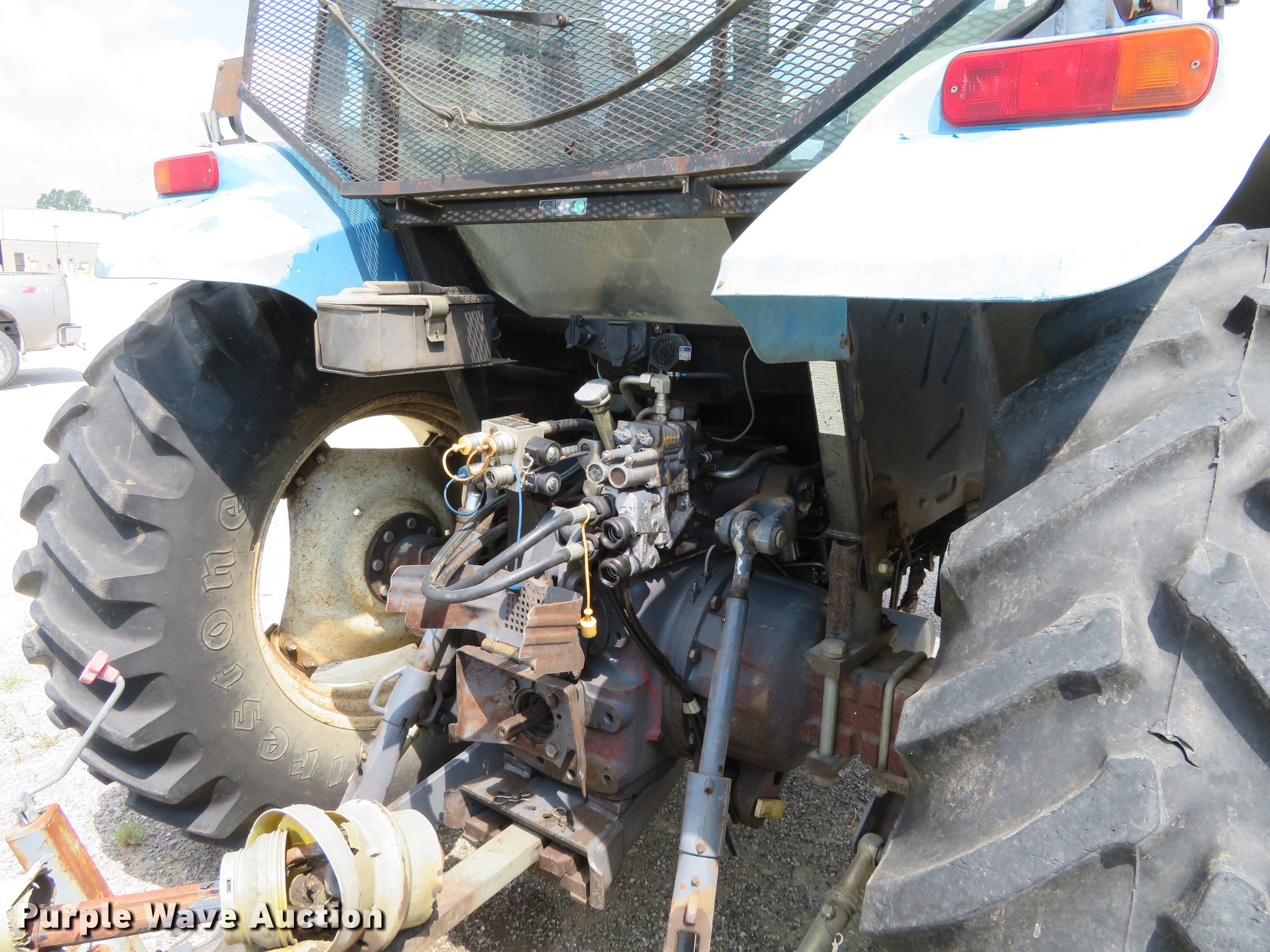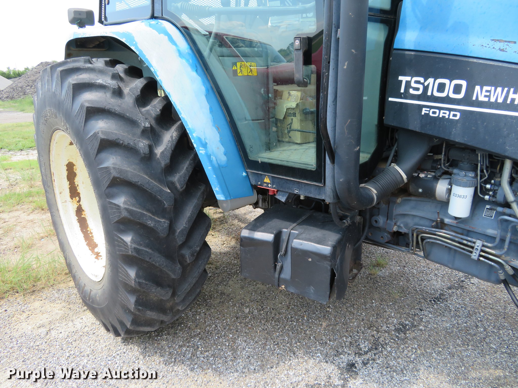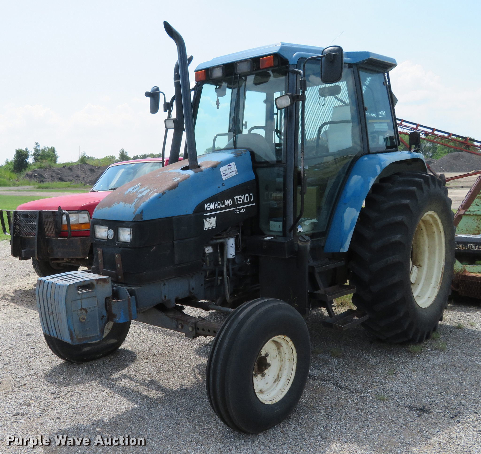 Purple Wave is selling a used Tractor in Kansas. This item is a New Holland TS100 tractor with the following: 6,898 hours on meter, Turbo diesel engine, 12F-12R gears, AC and heat, Suspension seat, Three point, 540 PTO, (4) rear hydraulic remote sets, (8) suitcase weights, 10.00-16 front tires, 18.4R34 rear tires, Serial 092082B61820R68052