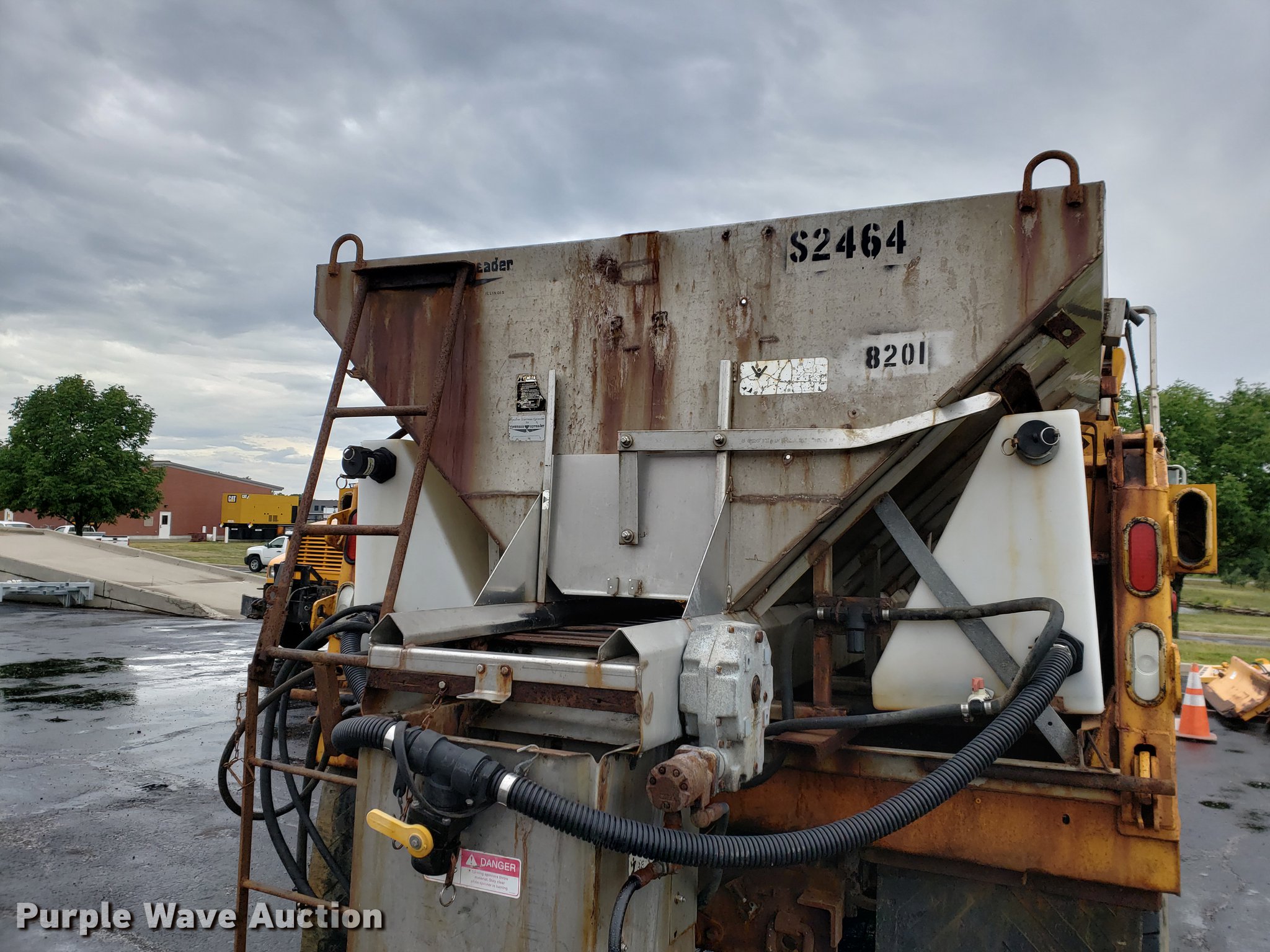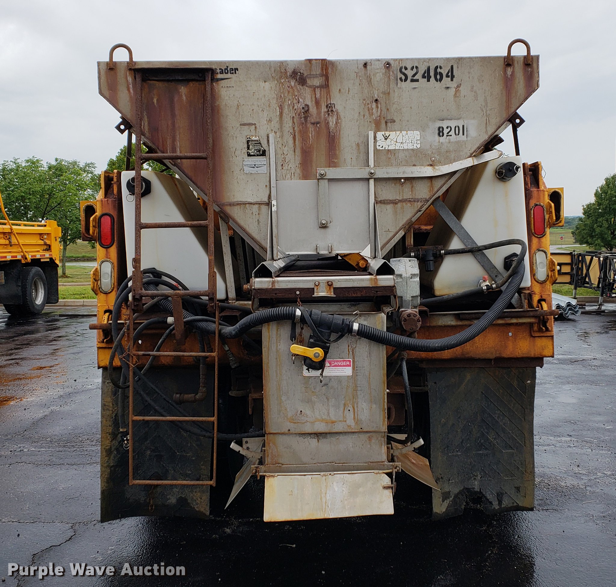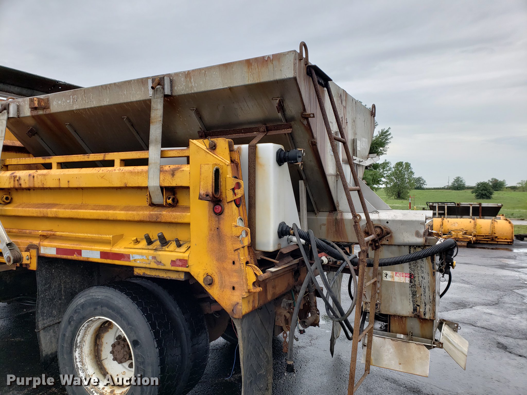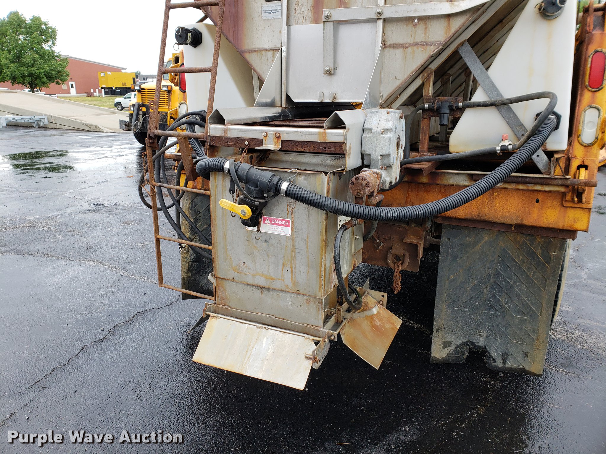 2000 International 4900 dump truck. 160,705 miles on odometer, 12,732 hours on meter, International DT466 7.6L L6 turbo diesel engine, Automatic transmission, Single axle, Cruise, AM/FM, Heated mirrors, Air suspension seat, PTO, 10'L x 8'W dump bed 24" side height, Roll tarp, Front plow mount Plow lights, Swenson stainless steel spreader 9'L x 7'W, Spring suspension, Air brakes, 11R22.5 tires, Non-operational dump bed Hydraulic line blown, Unsafe to operate bed, Driveline clamp bolts loose, Cab supports rusted out, Cab rusted out, Unit# 6198. Missouri title. 1HTSDAAR2YH246273. Missouri Department of Transportation (MODOT). 600 NE Colbern Road. Lee's Summit, MO 64086