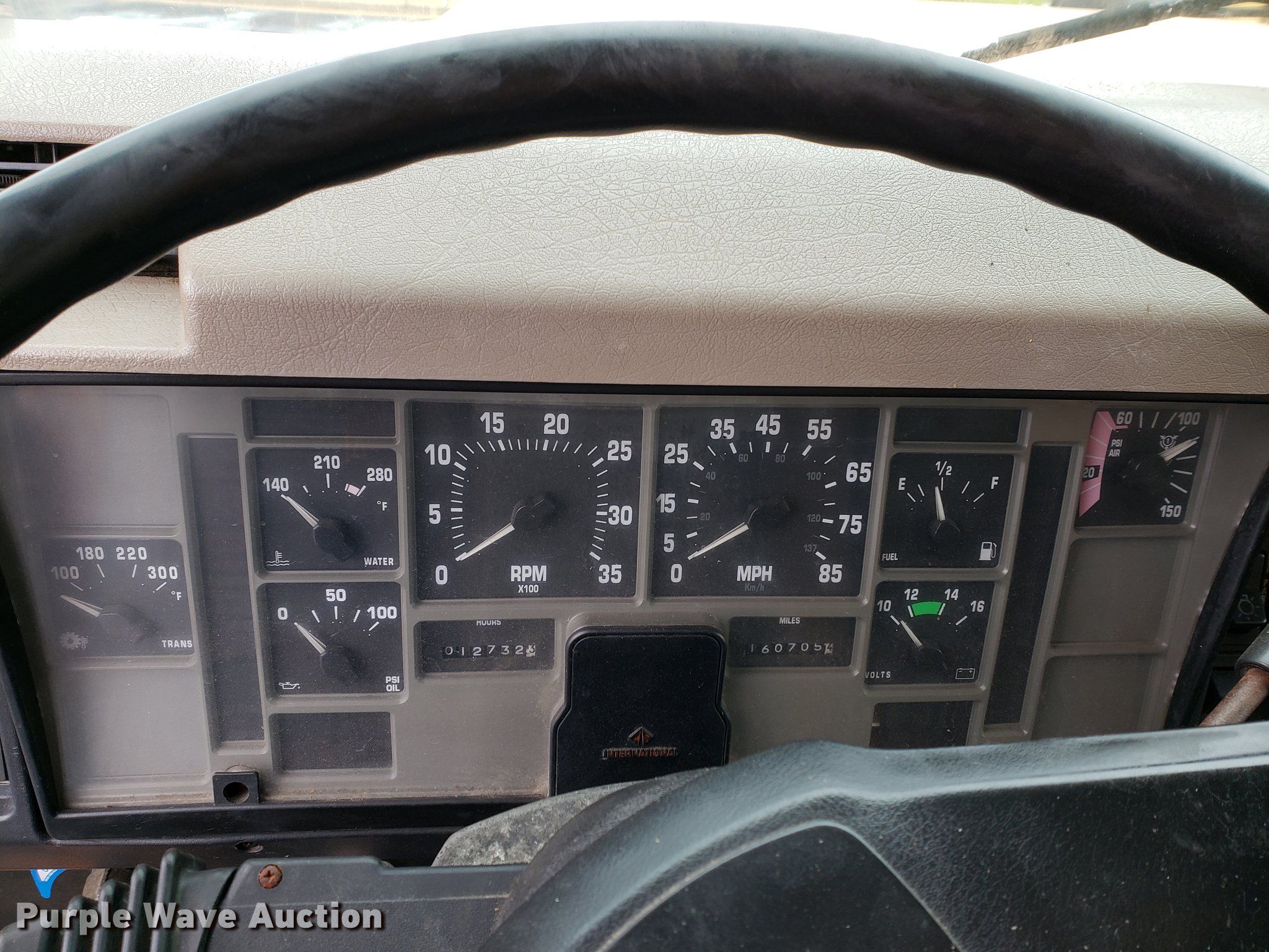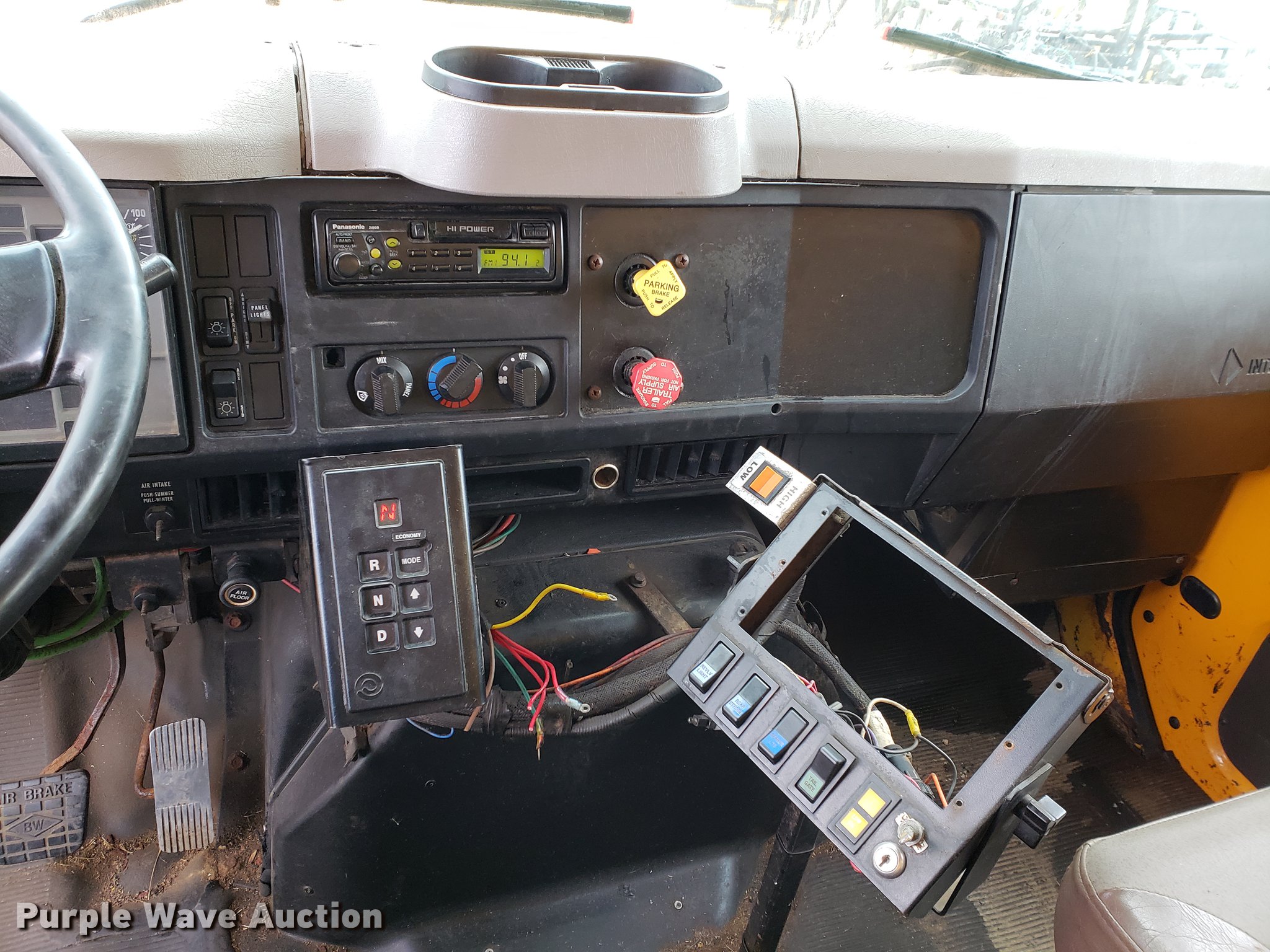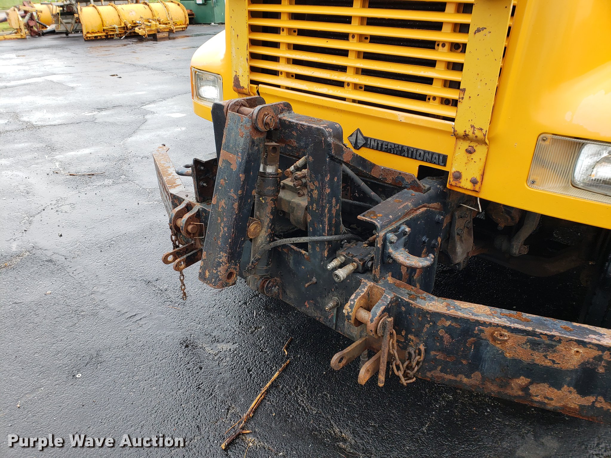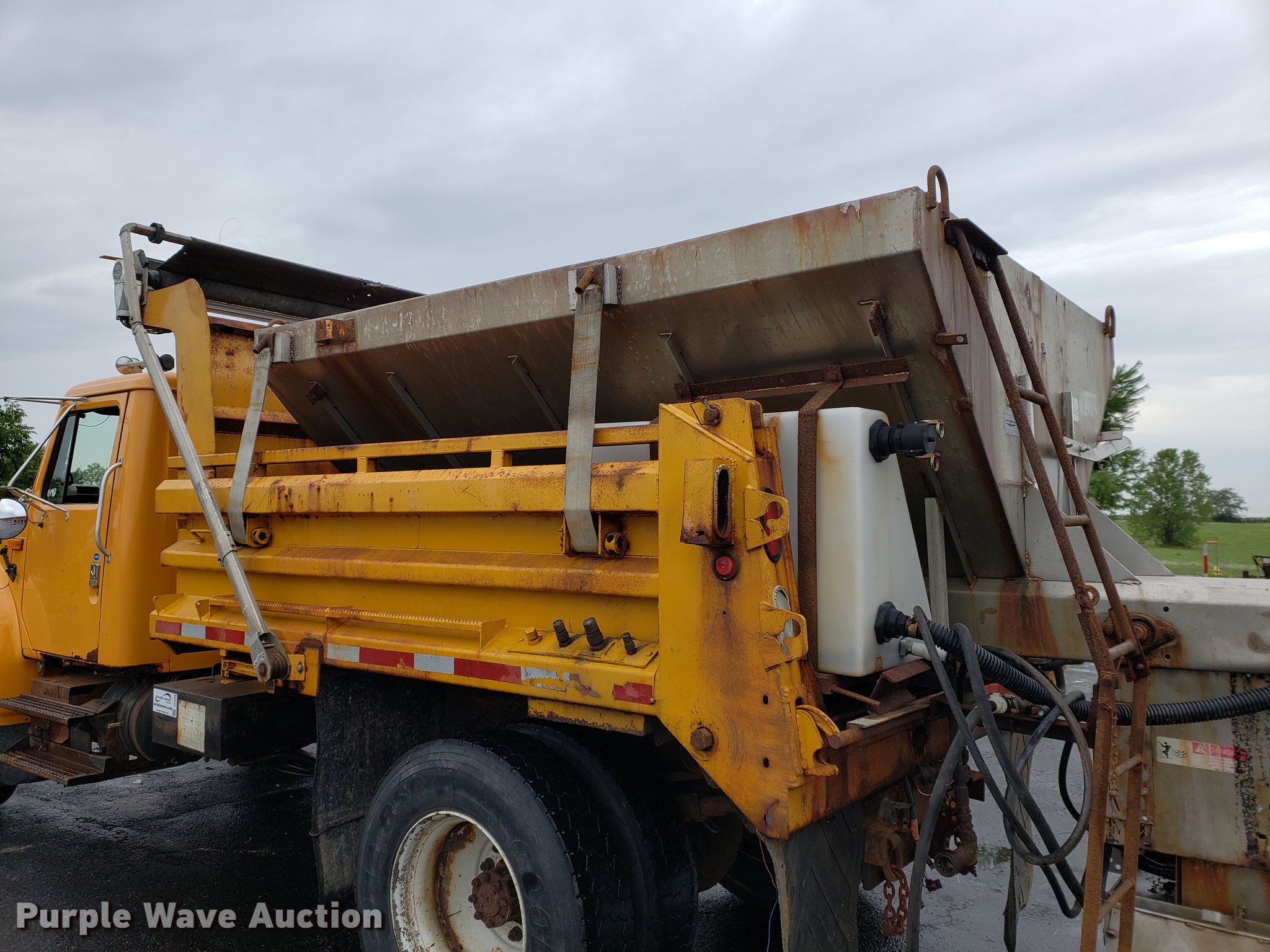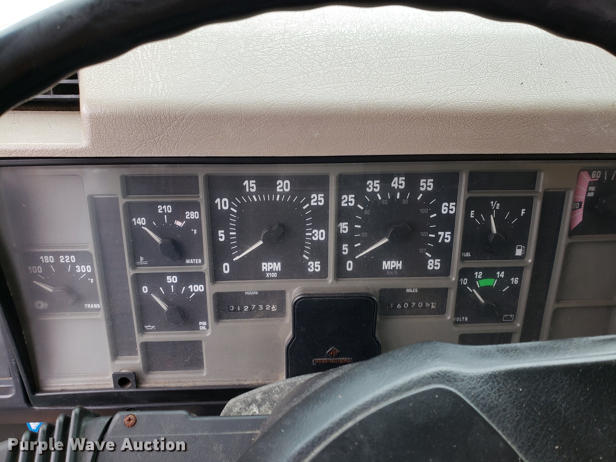 Purple Wave is selling a used Construction Dump Truck in Missouri. This item is a 2000 International 4900 dump truck with the following: 160,705 miles on odometer, 12,732 hours on meter, International DT466 7.6L L6 turbo diesel engine, Automatic transmission, Single axle, Cruise, AM/FM, Heated mirrors, Air suspension seat, PTO, 10'L x 8'W dump bed, 24" side height, Roll tarp, Front plow mount, Plow lights, Swenson stainless steel spreader, 9'L x 7'W, Spring suspension, Air brakes, 11R22.5 tires, Non-operational dump bed, Hydraulic line blown, Unsafe to operate bed, Driveline clamp bolts loose, Cab supports rusted out, Cab rusted out, Unit# 6198