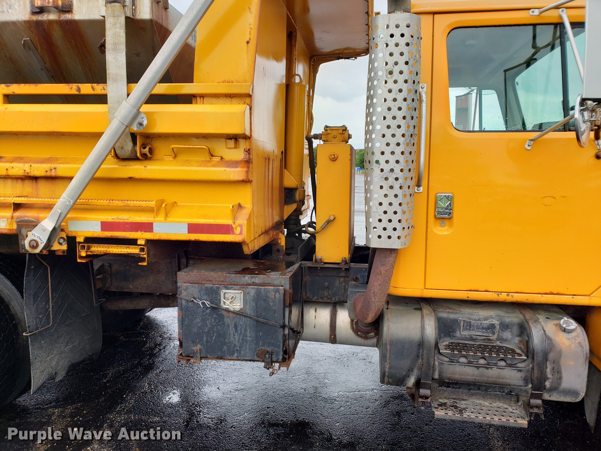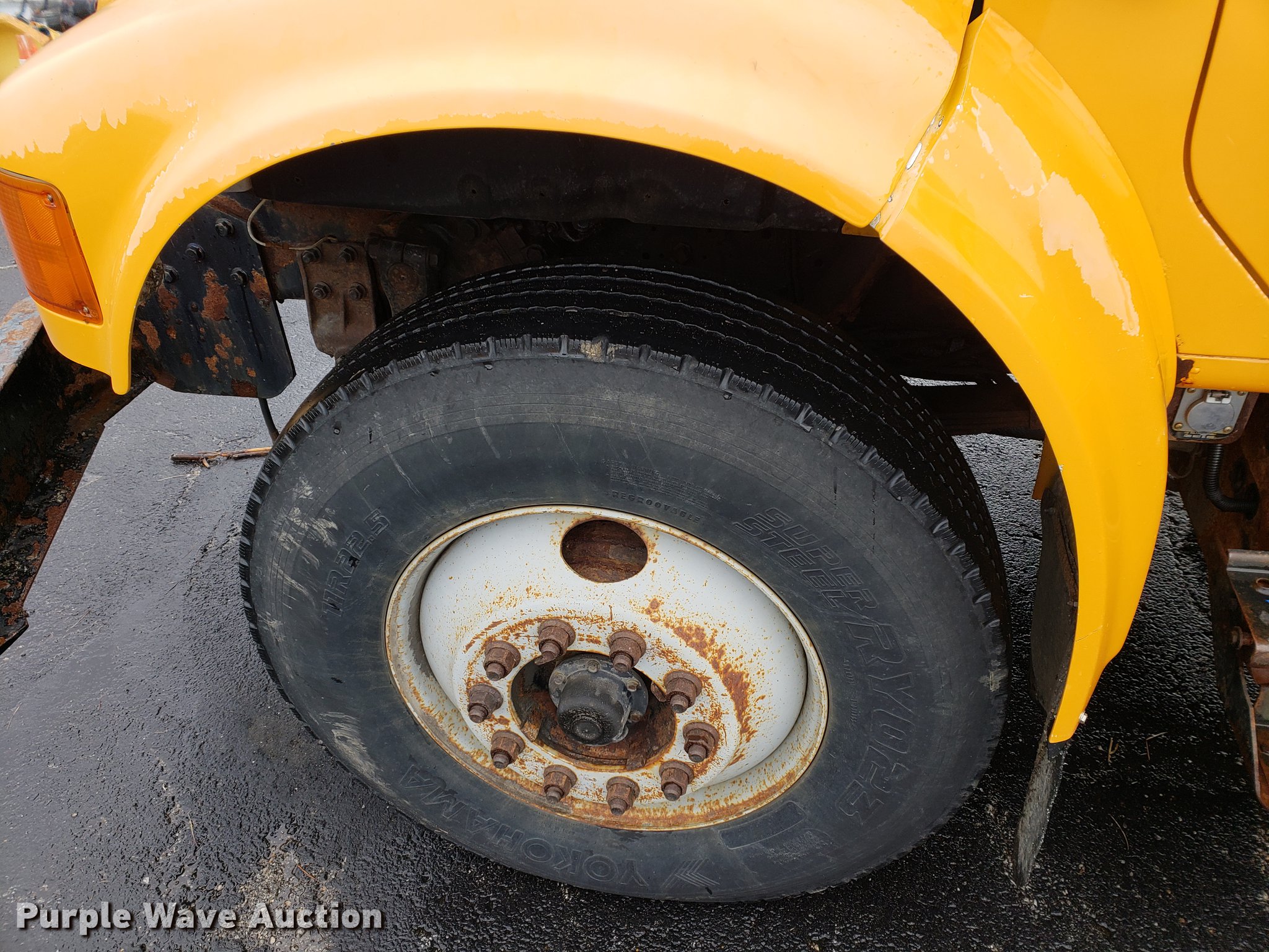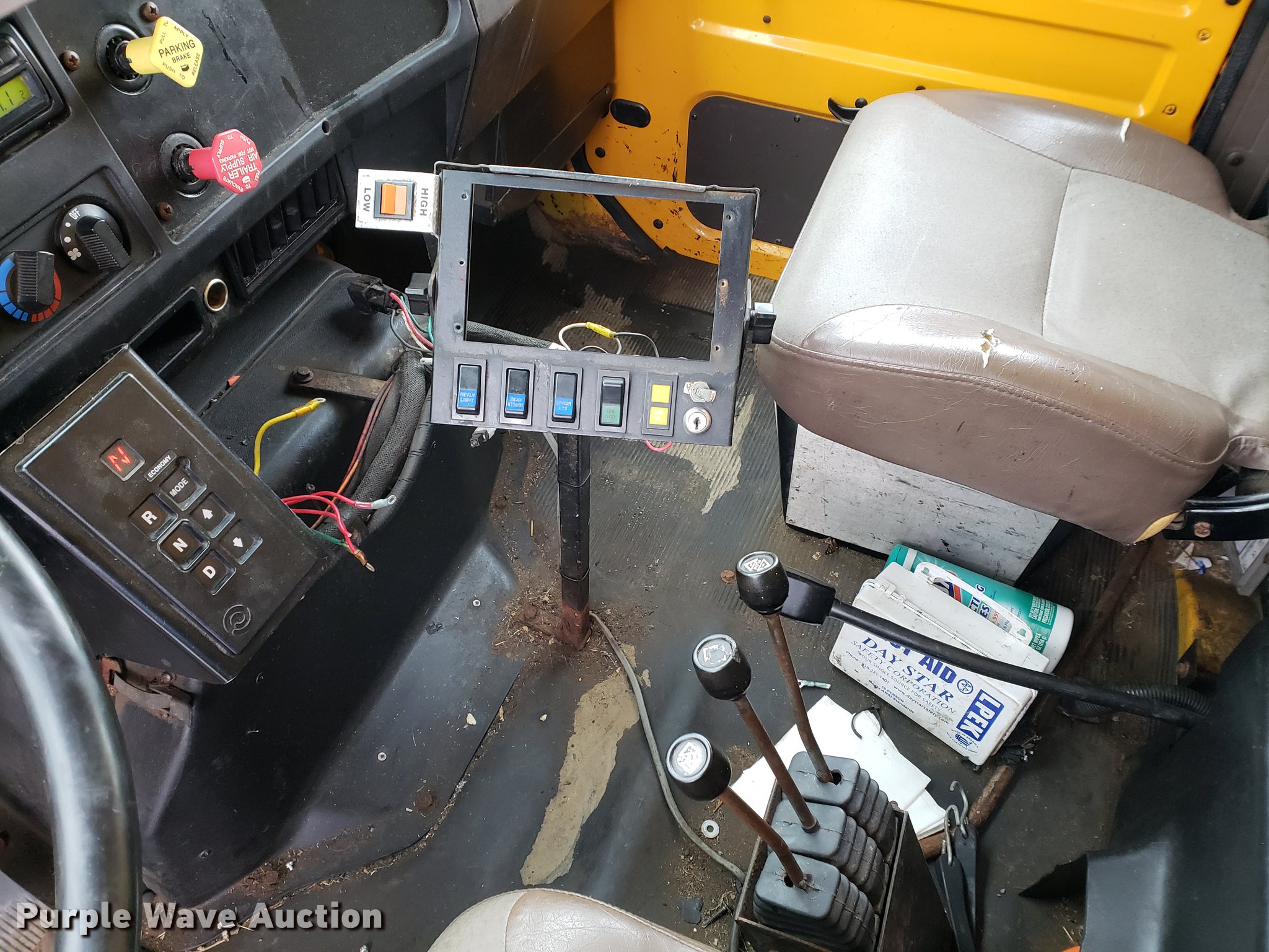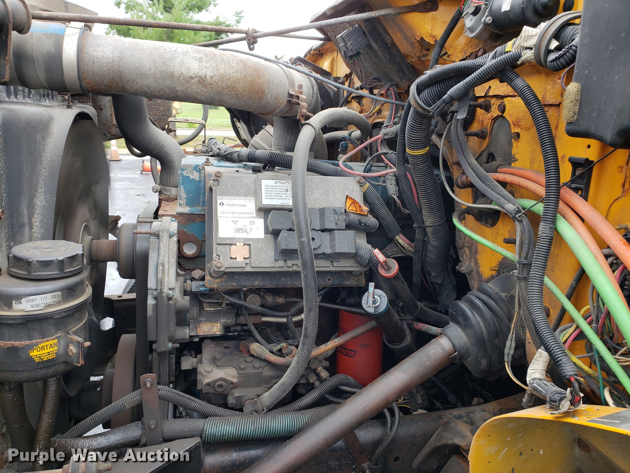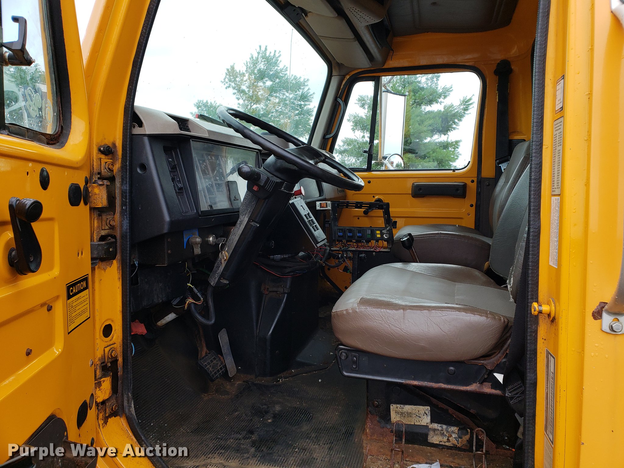 Purple Wave is selling a used Construction Dump Truck in Missouri. This item is a 2000 International 4900 dump truck with the following: 160,705 miles on odometer, 12,732 hours on meter, International DT466 7.6L L6 turbo diesel engine, Automatic transmission, Single axle, Cruise, AM/FM, Heated mirrors, Air suspension seat, PTO, 10'L x 8'W dump bed, 24" side height, Roll tarp, Front plow mount, Plow lights, Swenson stainless steel spreader, 9'L x 7'W, Spring suspension, Air brakes, 11R22.5 tires, Non-operational dump bed, Hydraulic line blown, Unsafe to operate bed, Driveline clamp bolts loose, Cab supports rusted out, Cab rusted out, Unit# 6198
