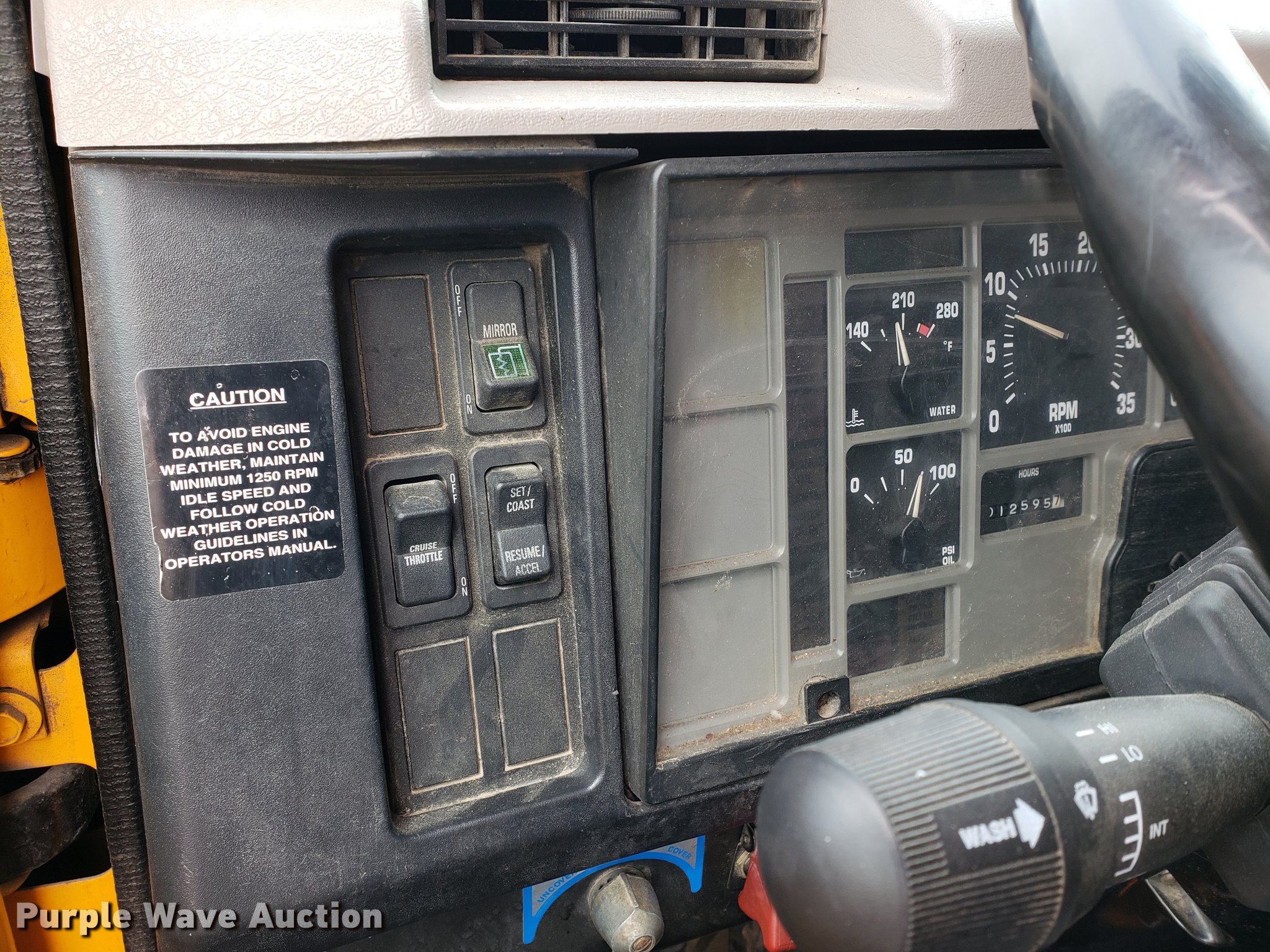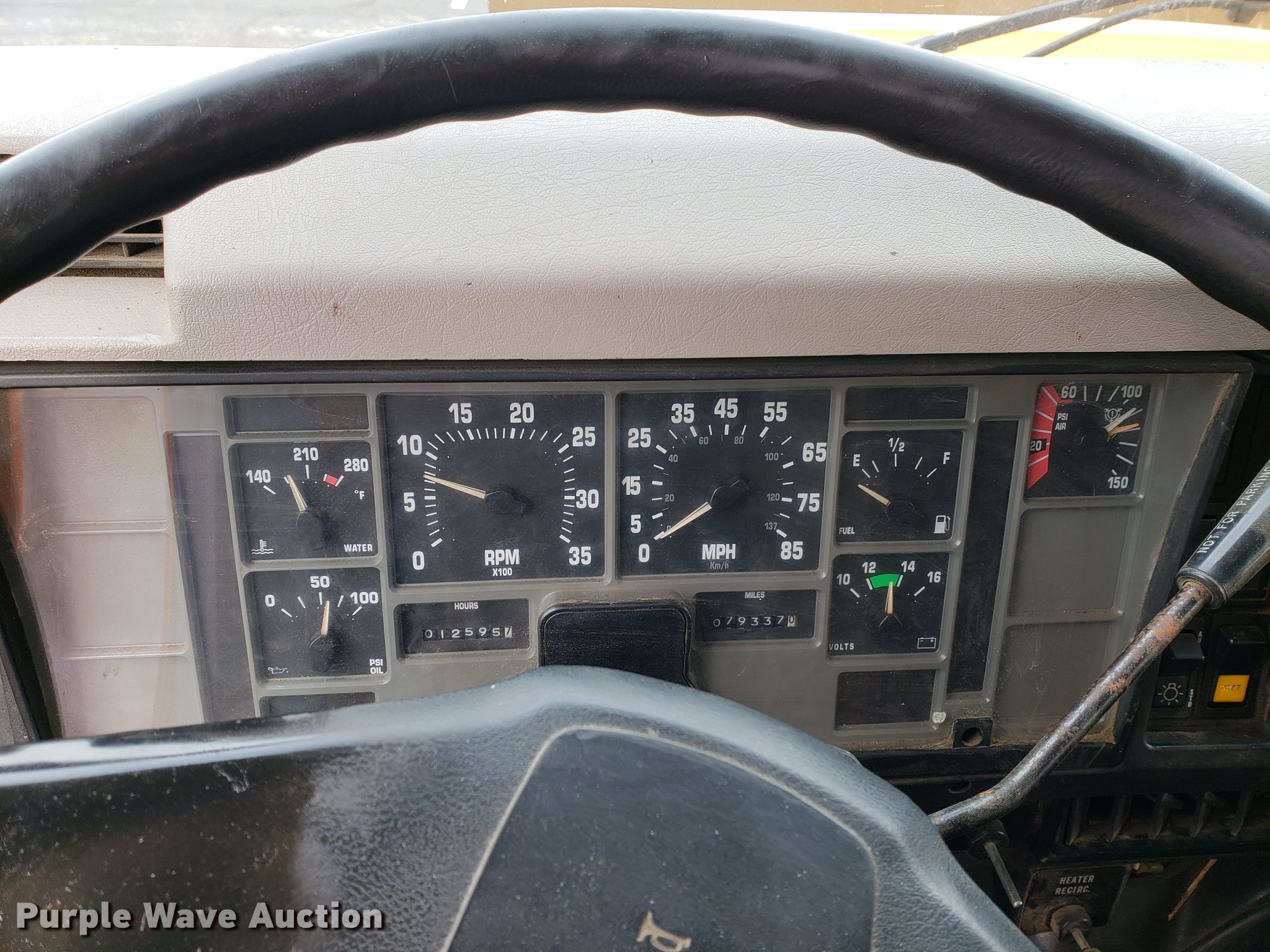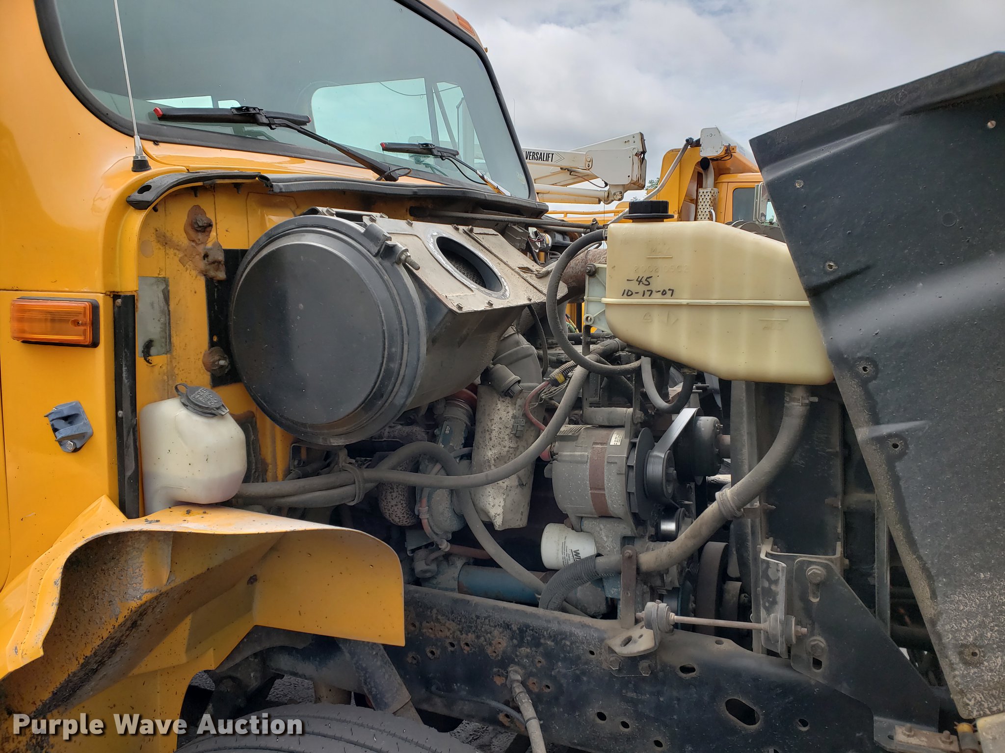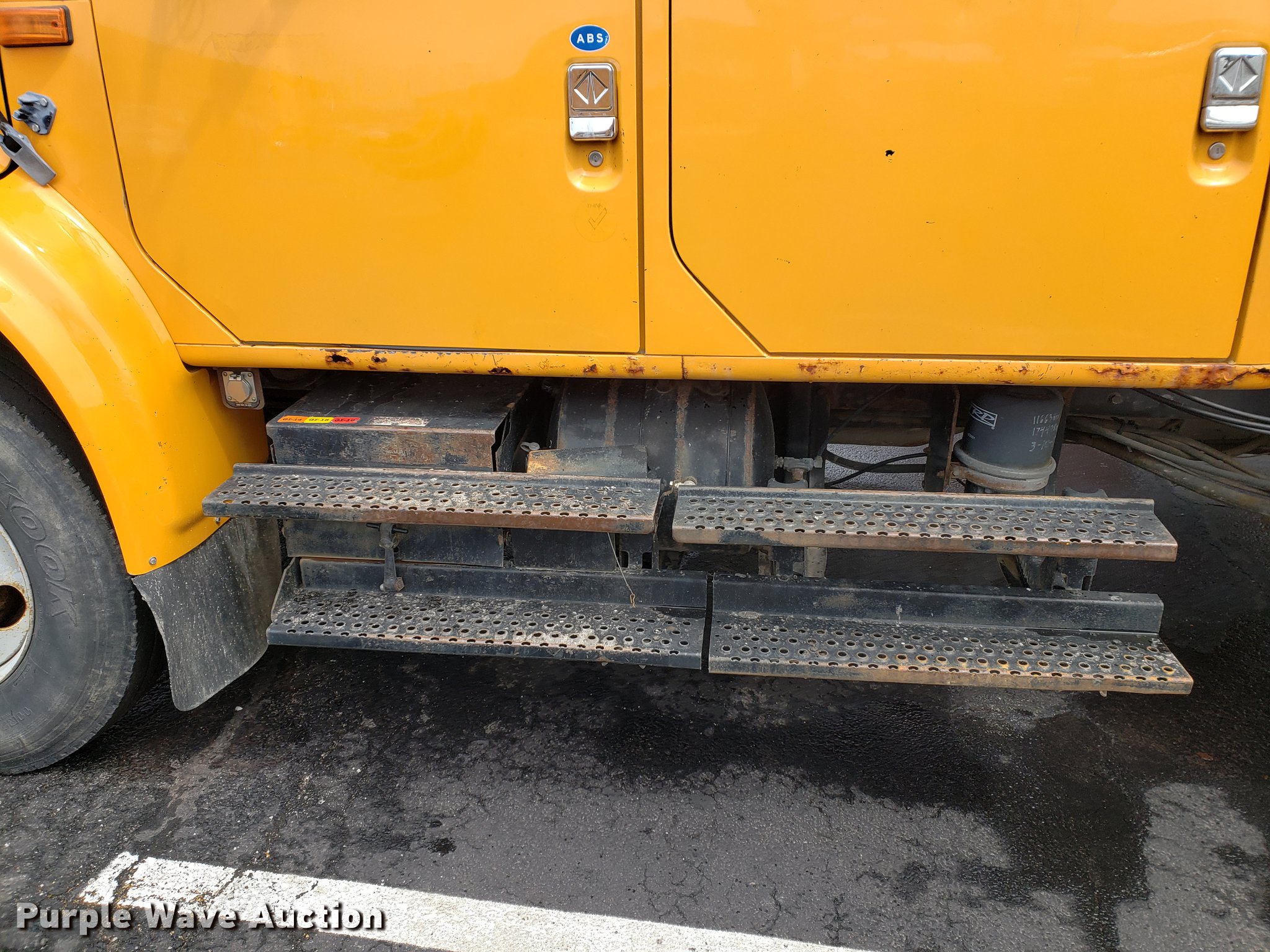 Purple Wave is selling a used Construction Dump Truck in Missouri. This item is a 2000 International 4900 dump truck with the following: 79,337 miles on odometer, 12,595 hours on meter, International DT466E 7.6L L6 turbo diesel engine, Seven speed manual transmission, Single axle, Heat, Cruise, Heated mirrors, Air suspension seat, 10'L x 8'W dump bed, 24" side height, Roll tarp, Front plow mount, Plow lights, Spring suspension, Air brakes, 11R22.5 tires, PTO shaft u-joint loose, Hole in exhaust muffler, Engine and hydraulic leaks, ABS light on, Batteries need replaced, Unit# 6132
