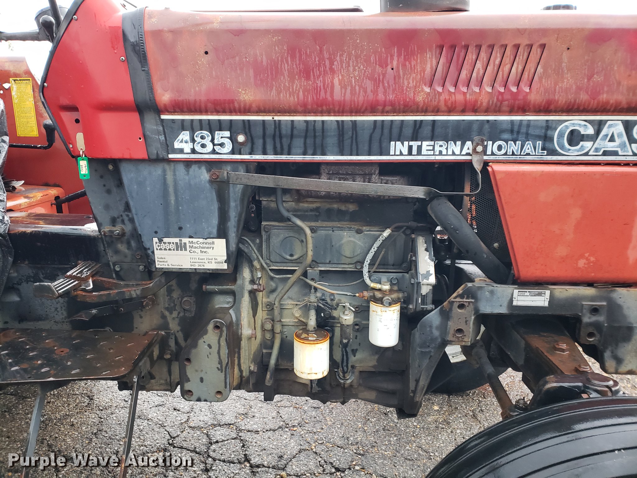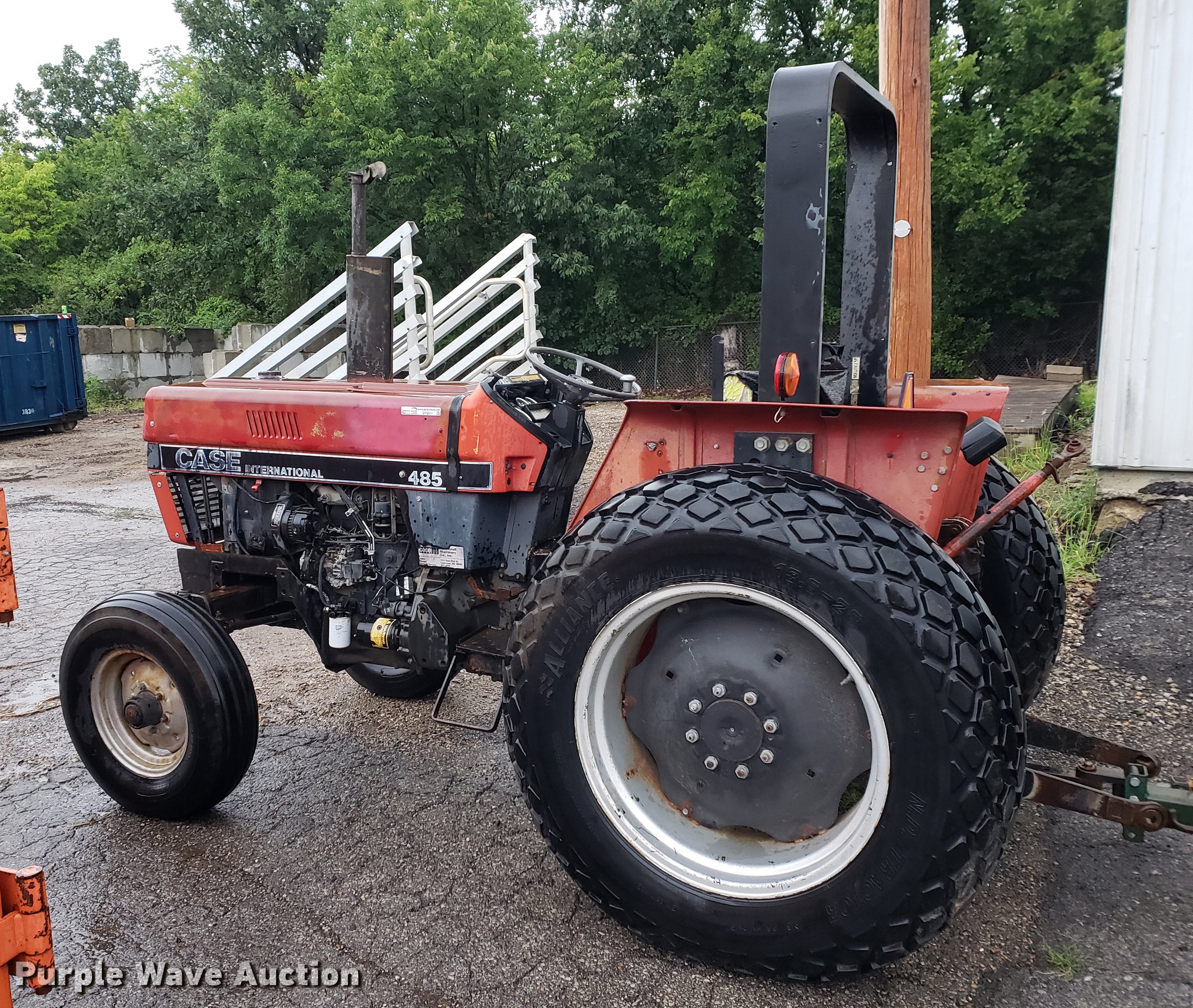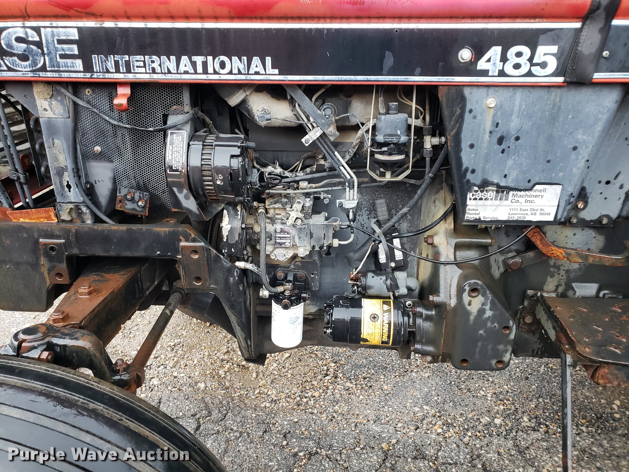 Purple Wave is selling a used Tractor in Kansas. This item is a Case IH 485 tractor with the following: 2,646 hours on meter, Three cylinder diesel engine, Manual transmission, 8F-4R gears, Three point, 540 PTO, Draw bar, 7.50-16 front tires, 13.6-28 rear tires, Does not drive, Serial B480017B021053
