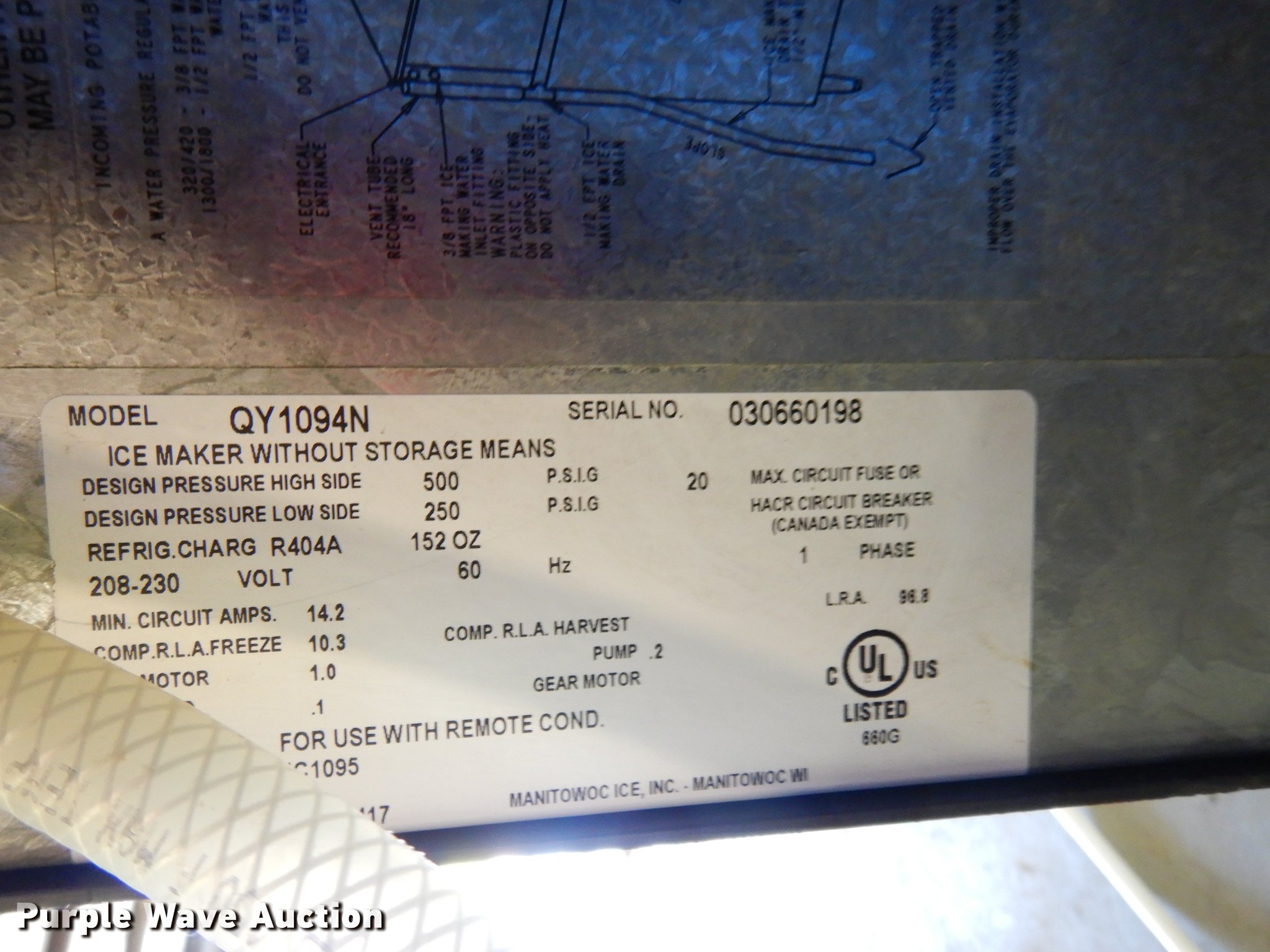 Purple Wave is selling a used Appliances in Kansas. This item is a Manitowoc S970 ice machine with the following: Last used six months ago, Serial 030622377