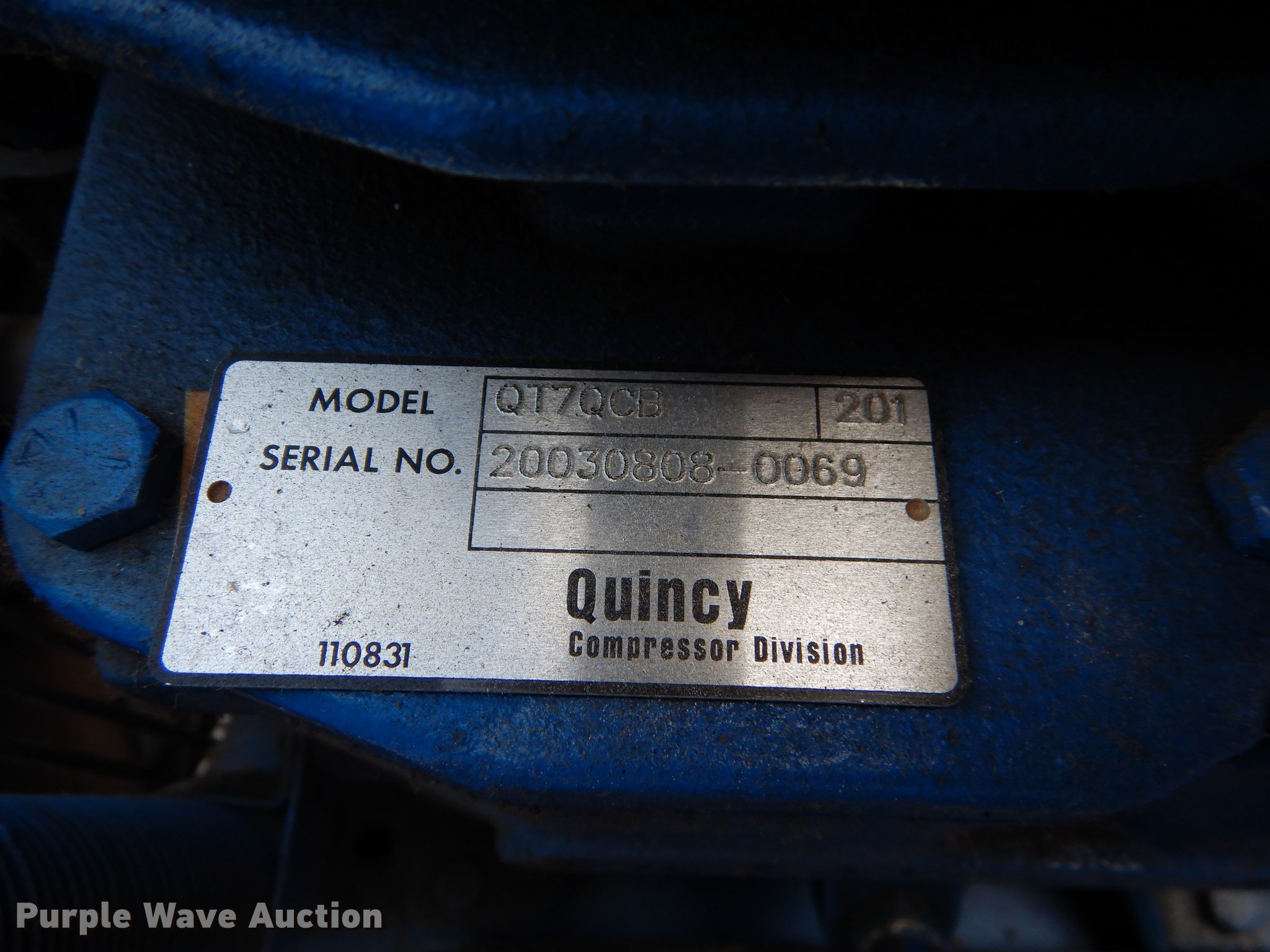 2003 Quincy air compressor has sold in Bonner Springs, Kansas for $1100. Item EM9630 sold on September 11th, 2018.
