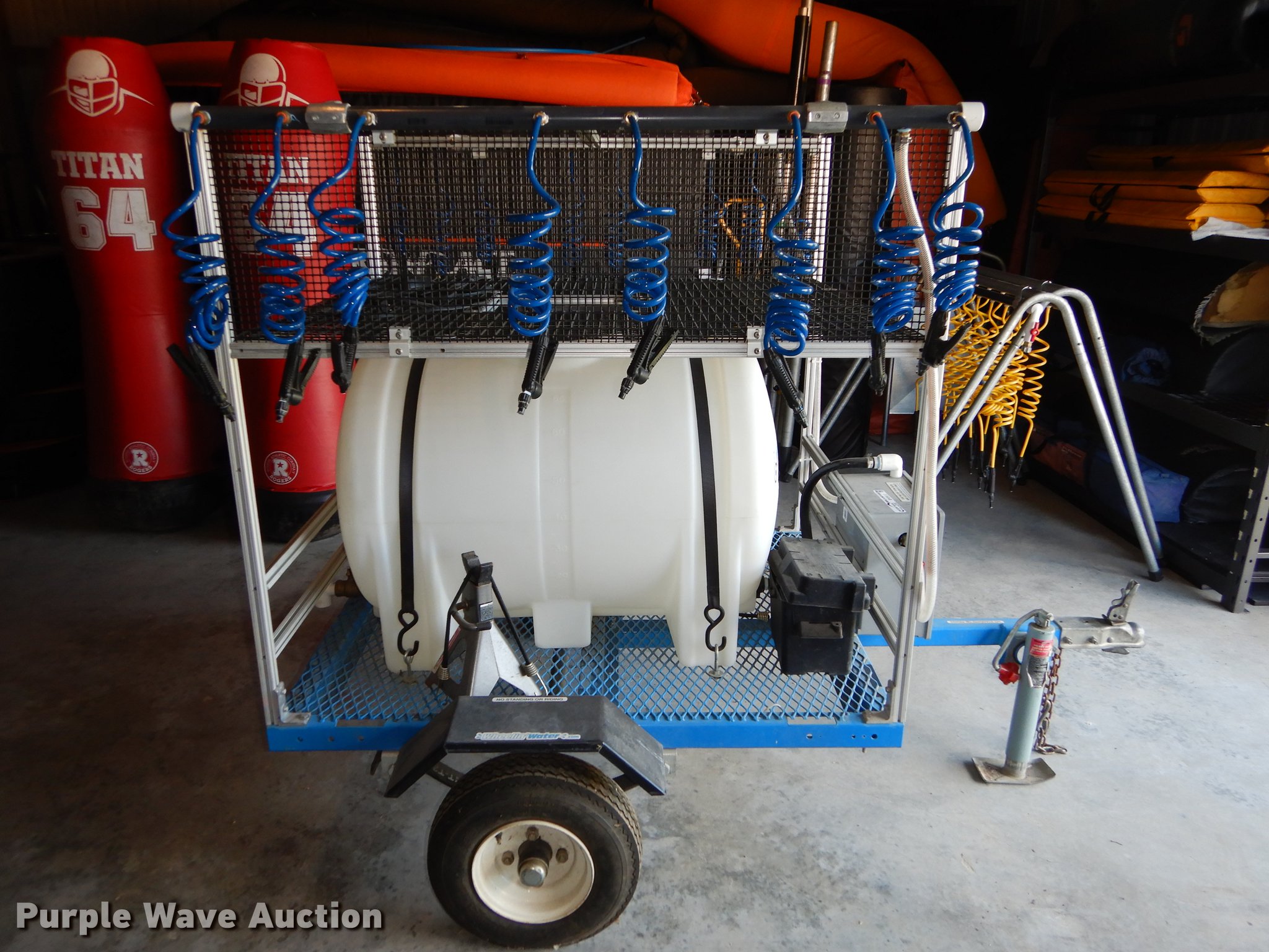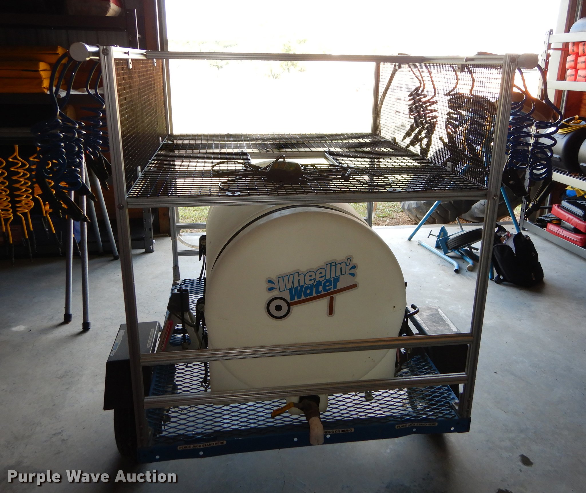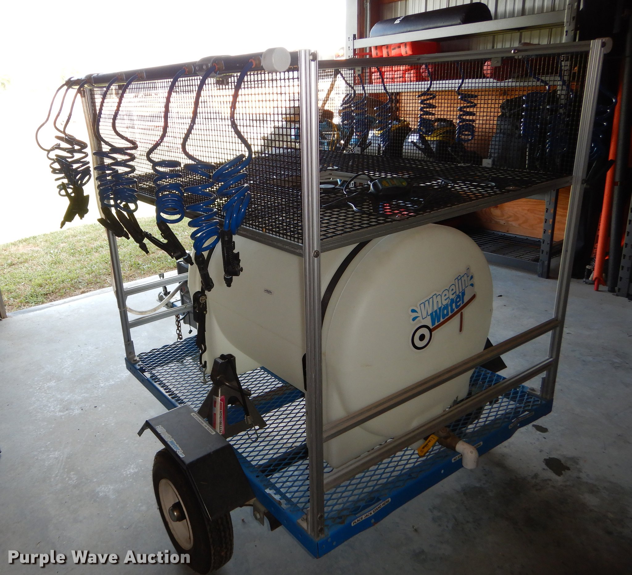 Purple Wave is selling a used Lawn and Garden in Kansas. This item is a Wheelin water hydration system with the following: 65 gallon capacity, (12) drinking nozzles, 110V outlet for battery, 1 7/8" ball hitch, Rear stabilizing jacks, 4.80-8 tires, Last used in 2017
