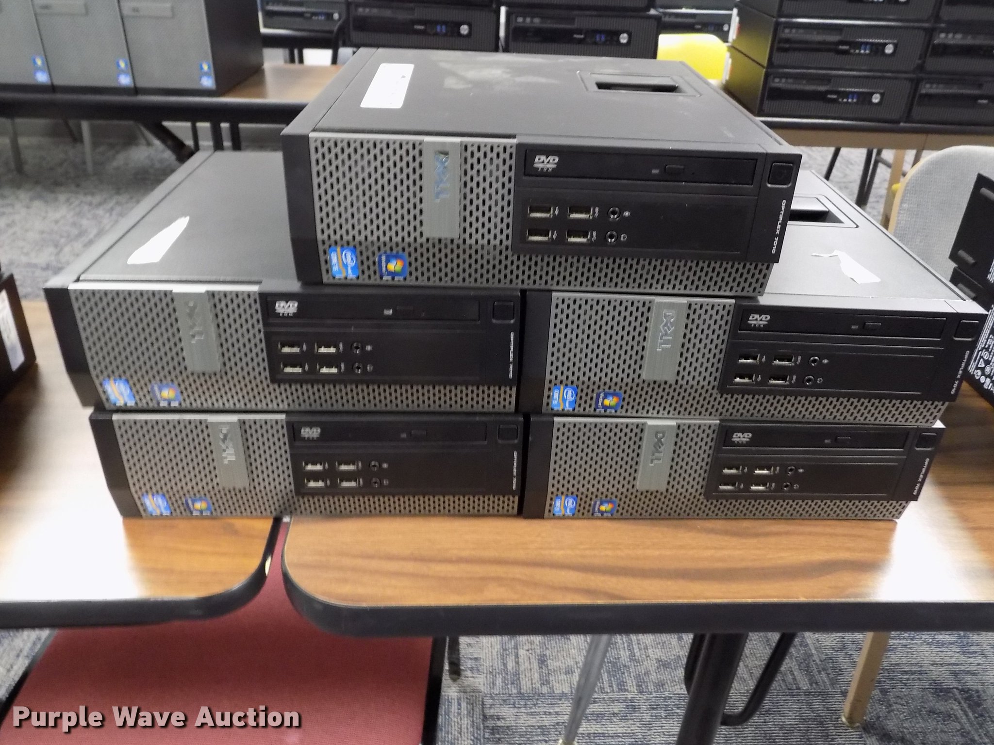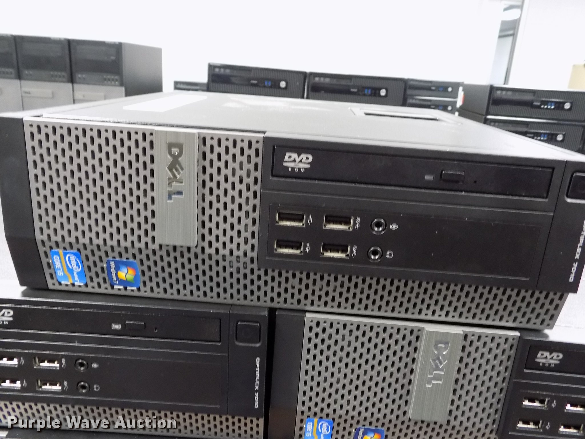 Purple Wave is selling a used Computers in Kansas. This item is a (5) Dell Optiplex 7010 mini computers with the following: Intel i5-3470 3.4Ghz four core processor, 8 GB RAM, 250 GB HDD, Power cord, Hard drives have been reformatted and no operating system installed