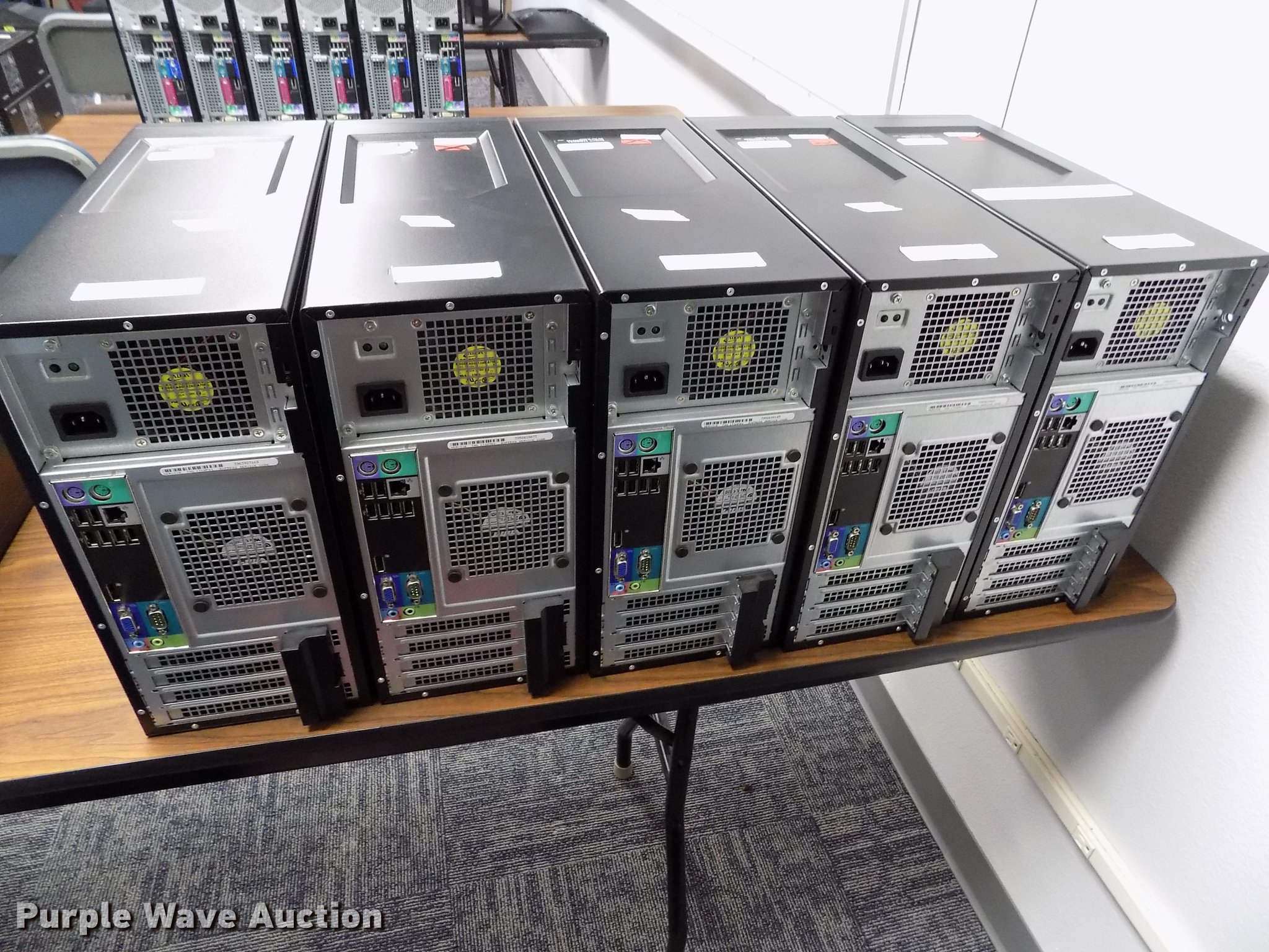 Purple Wave is selling a used Computers in Kansas. This item is a (5) Dell Optiplex 790 computers with the following: Intel i3-2128 3.3Ghz processor, 4 GB RAM, 250 GB HDD, Power cord, Hard drives have been reformatted and no operating system installed