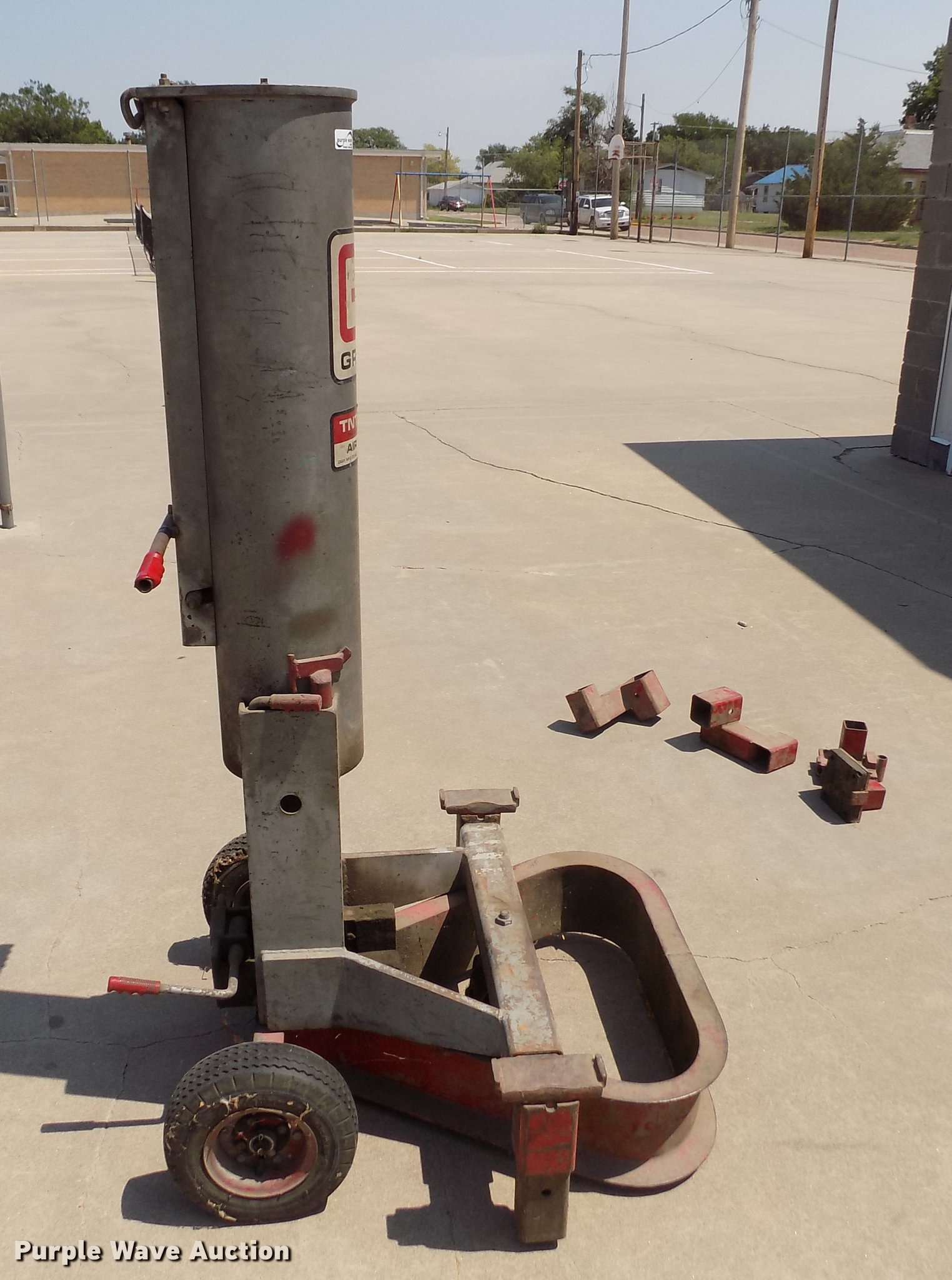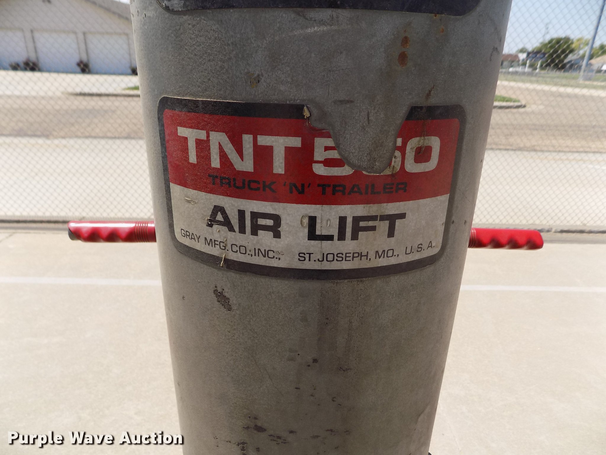 Purple Wave is selling a used Tools in Kansas. This item is a Gray TNT 550 jack with the following: 5.5 ton capacity, Pneumatic operation, Extensions, 4.10/3.50-6 tires