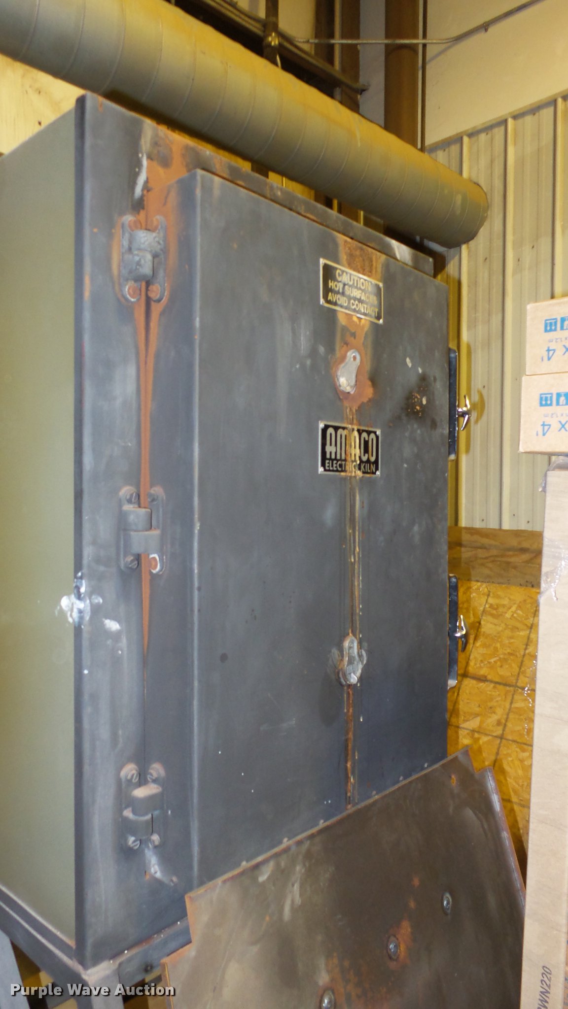 Purple Wave is selling a used Tools in Kansas. This item is a Amco kiln with the following: Approx. 31" x 34" x 66"H, Controls, Three phase, Four prong plug, Unknown operating condition