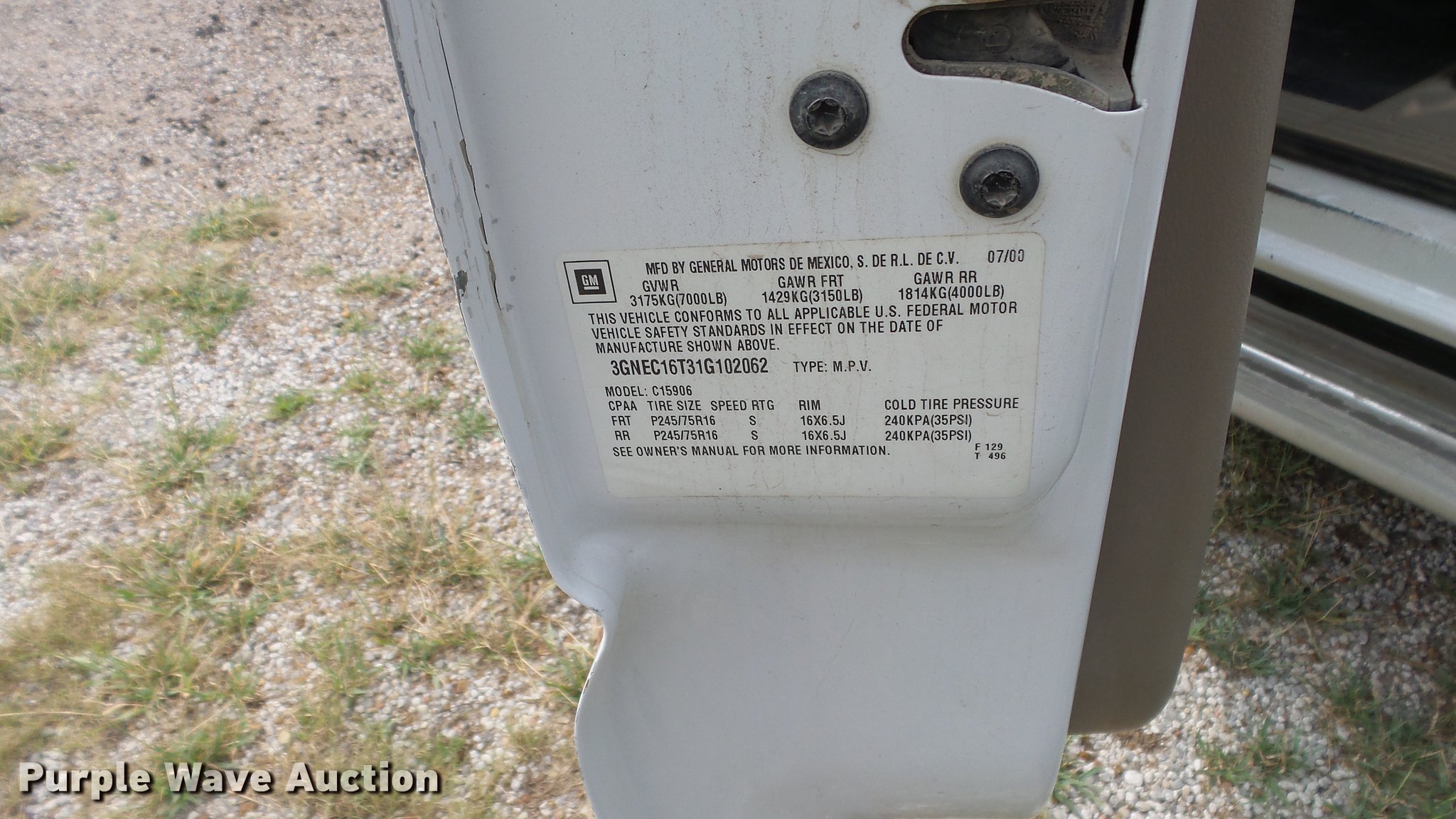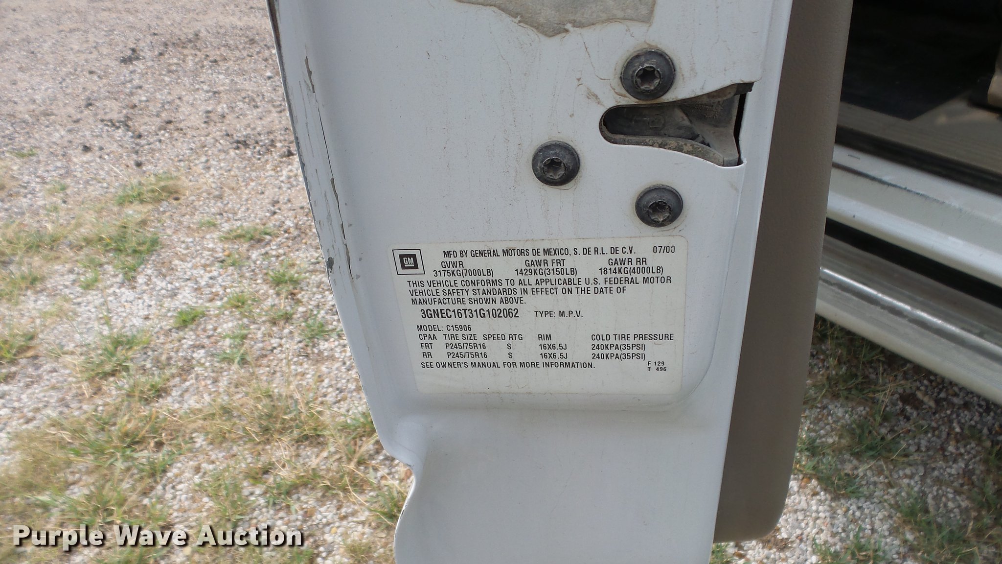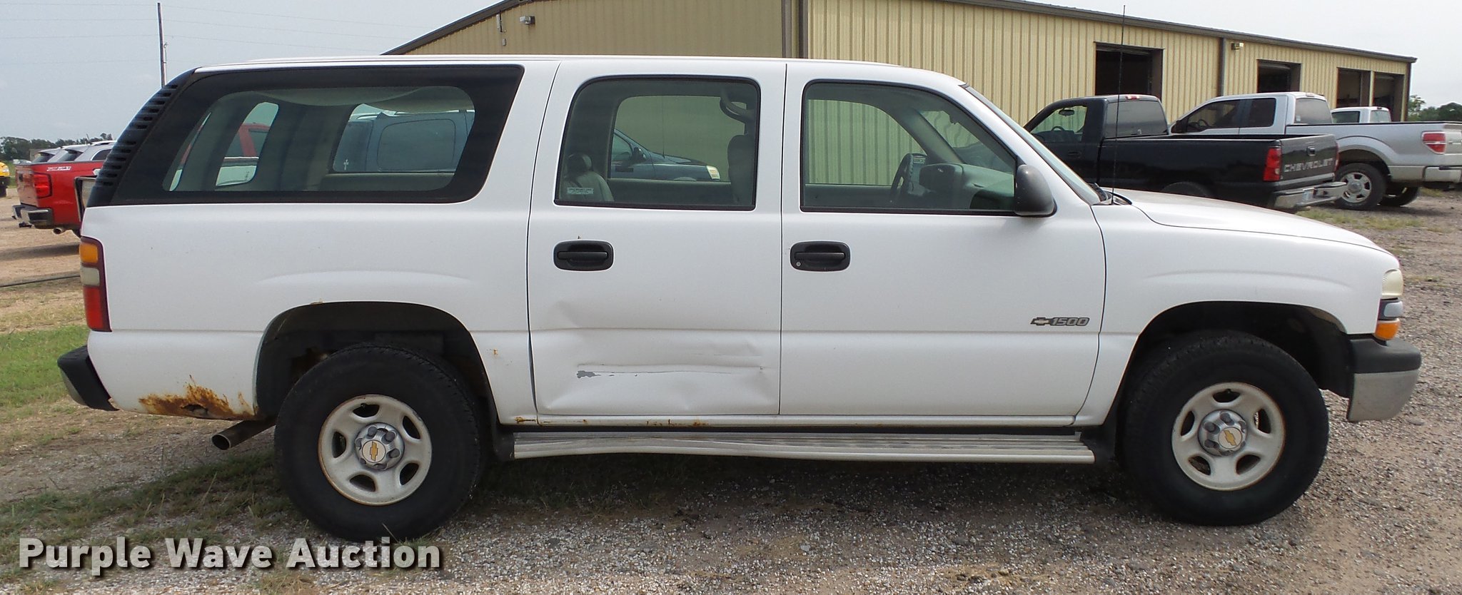 Purple Wave is selling a used Passenger Vehicle in Kansas. This item is a 2001 Chevrolet Suburban C1500 SUV with the following: 161,616 miles on odometer, 5.3L V8 16V OHV gas engine, Automatic transmission, AC and heat, Tilt, Cruise, AM/FM, Manual windows and locks, Vinyl interior, Running boards, 265/75R16 tires