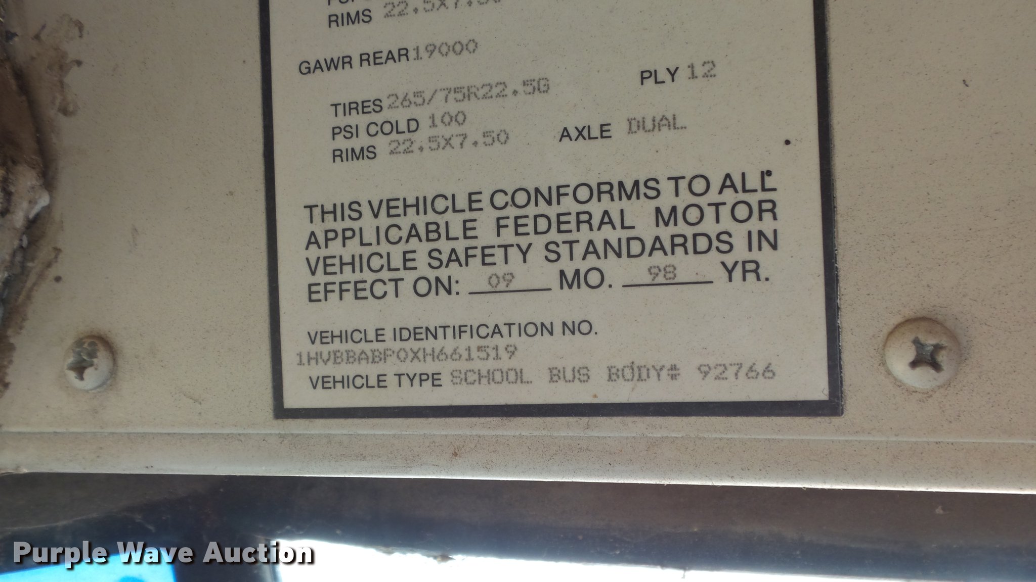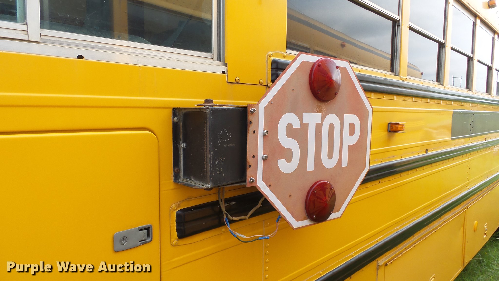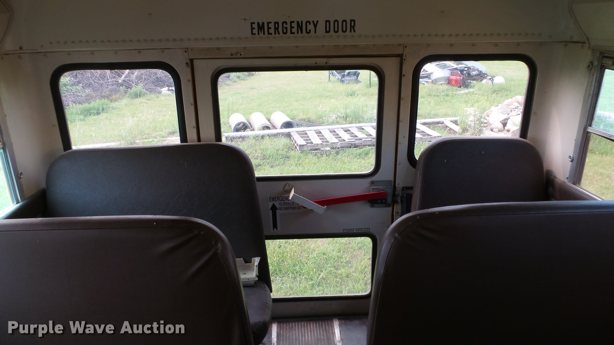 Purple Wave is selling a used Bus in Kansas. This item is a 1999 International 3800 school bus with the following: 158,842 miles on odometer, 7,997 hours on meter, International T444 7.3L V8 diesel engine, Spicer five speed manual transmission, Heat, AM/FM, Vinyl interior, Roof, rear, and side emergency exits, Block heater, Tow hooks, Hydraulic brakes, 10R22.5 tires, Dead battery