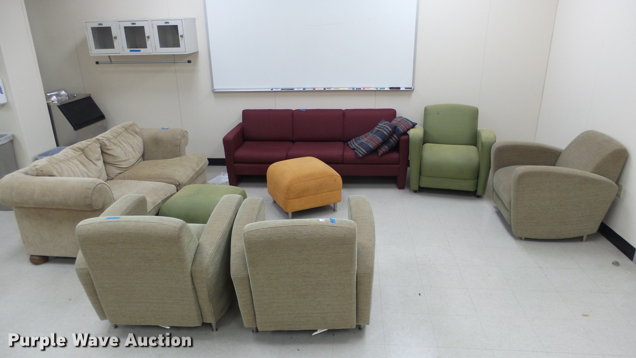 Purple Wave is selling a used Furniture in Kansas. This item is a Furniture with the following: (4) chairs, Love seat, Sofa, (2) foot rests