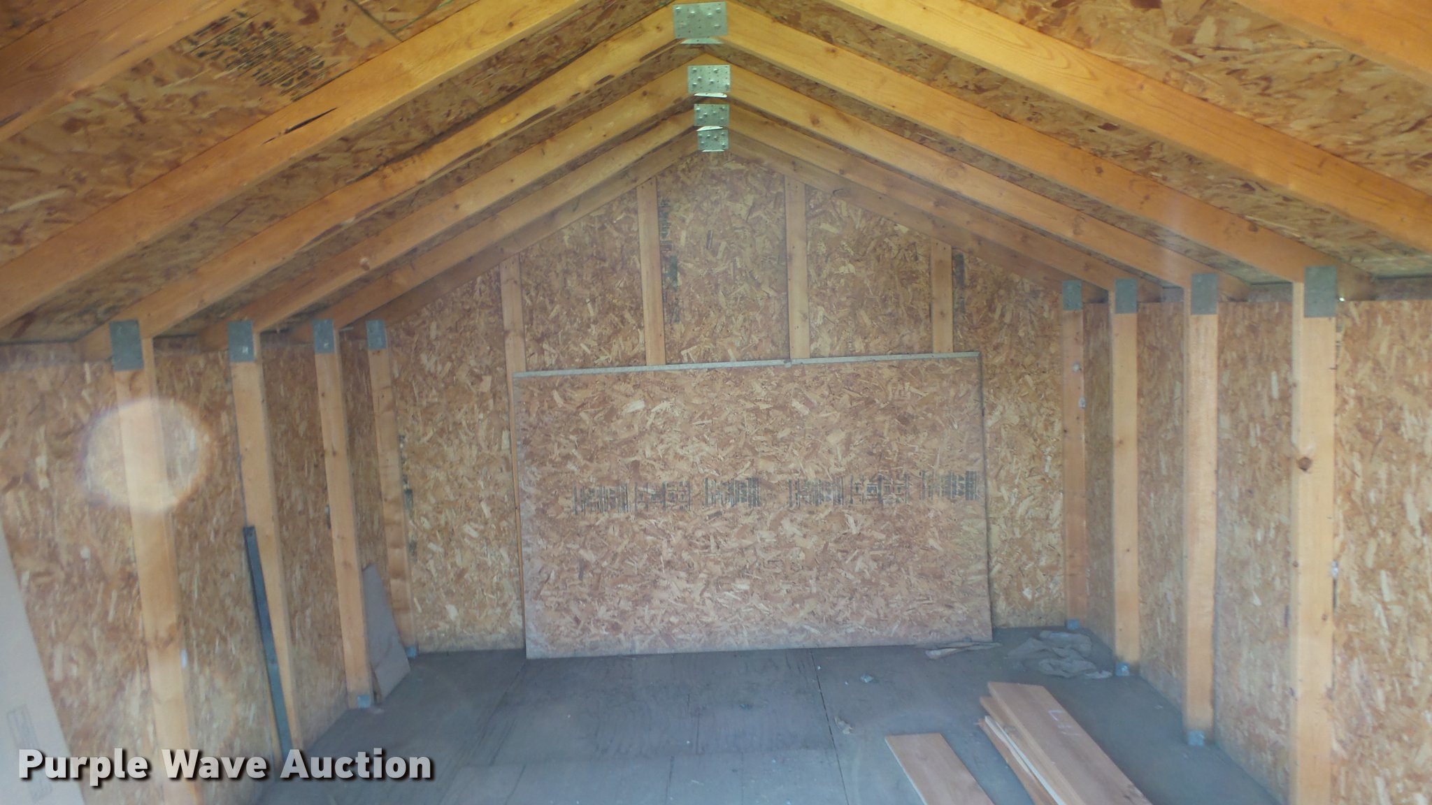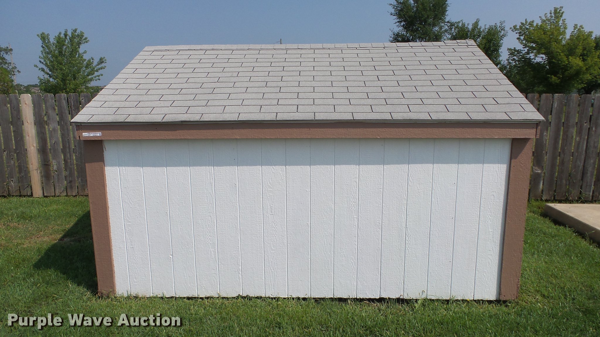 Purple Wave is selling a used Building Materials in Kansas. This item is a Wood shed with the following: 12' x 130" x 8'H, Front swing door, Shingled roof, Contents not included