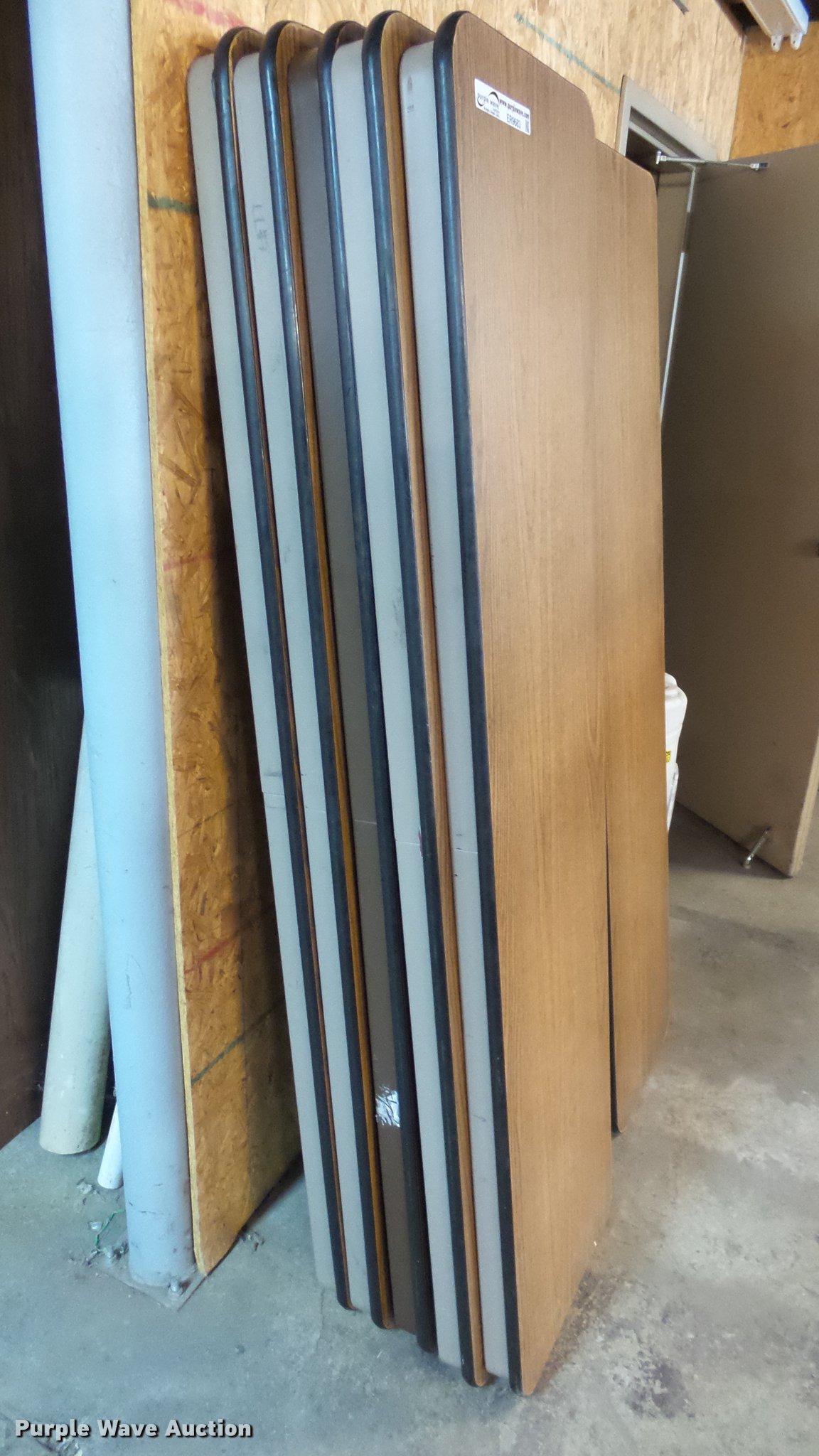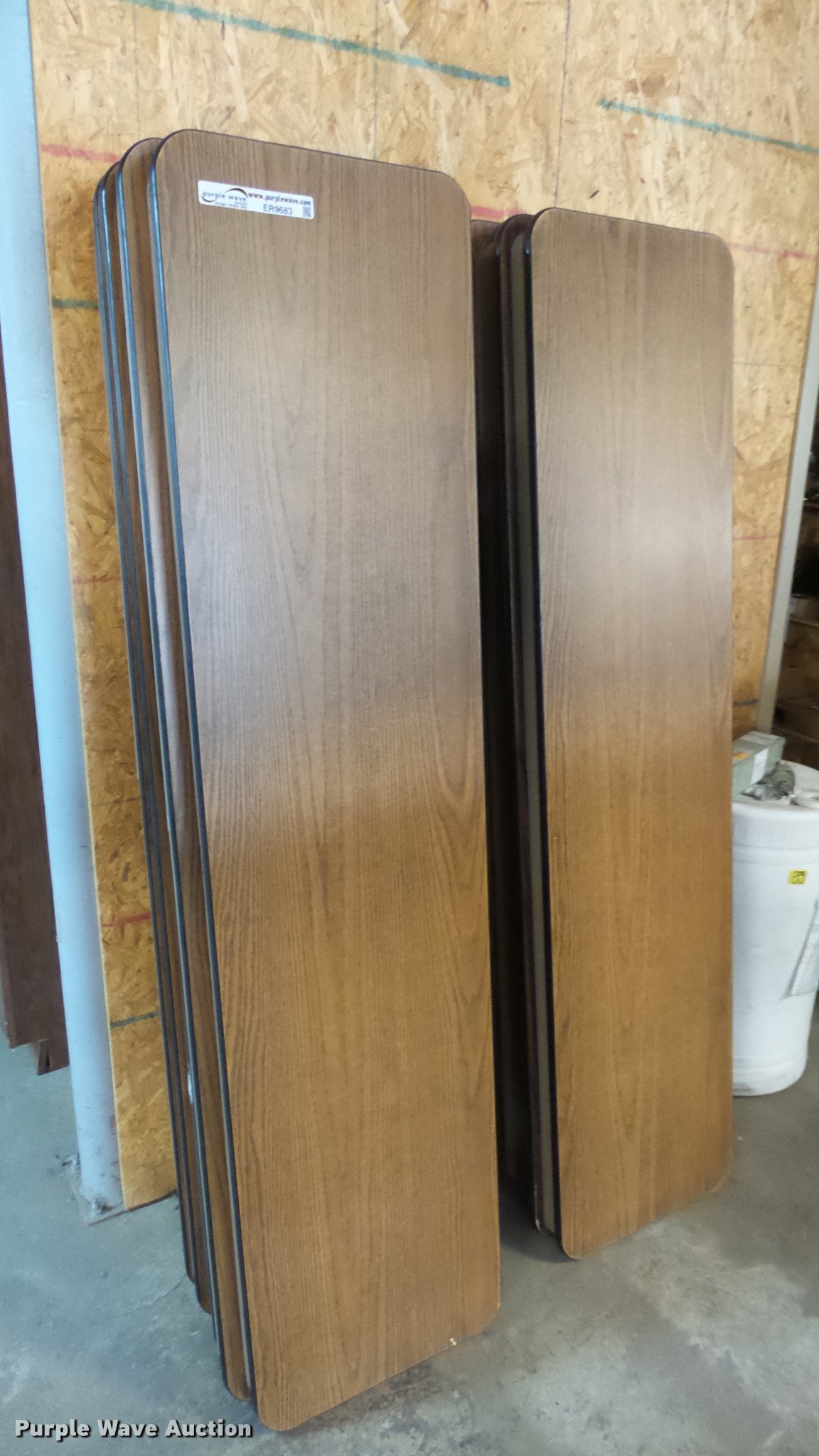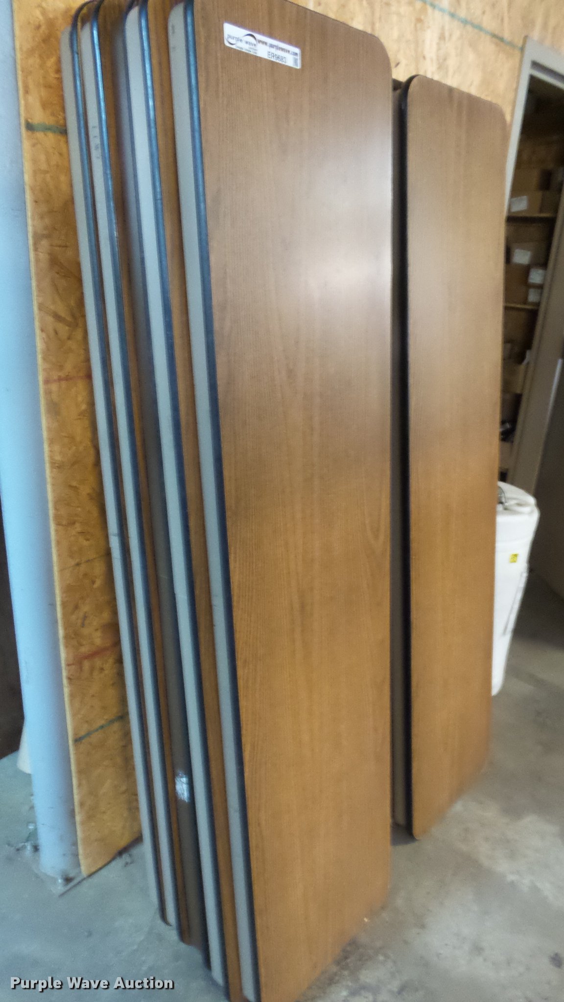Purple Wave is selling a used Furniture in Kansas. This item is a Approximately 10 folding tables with the following: 6'L x 18"W