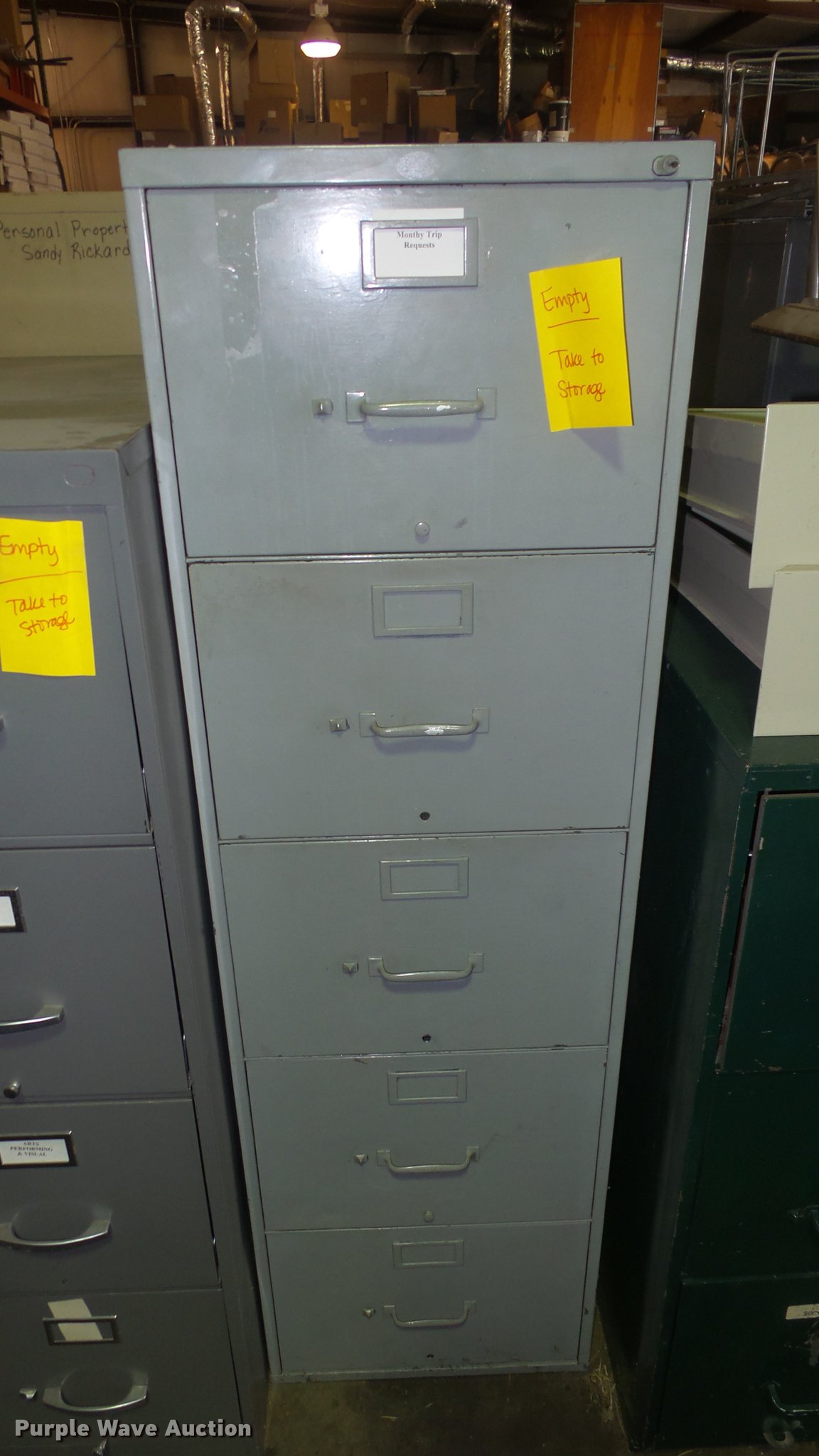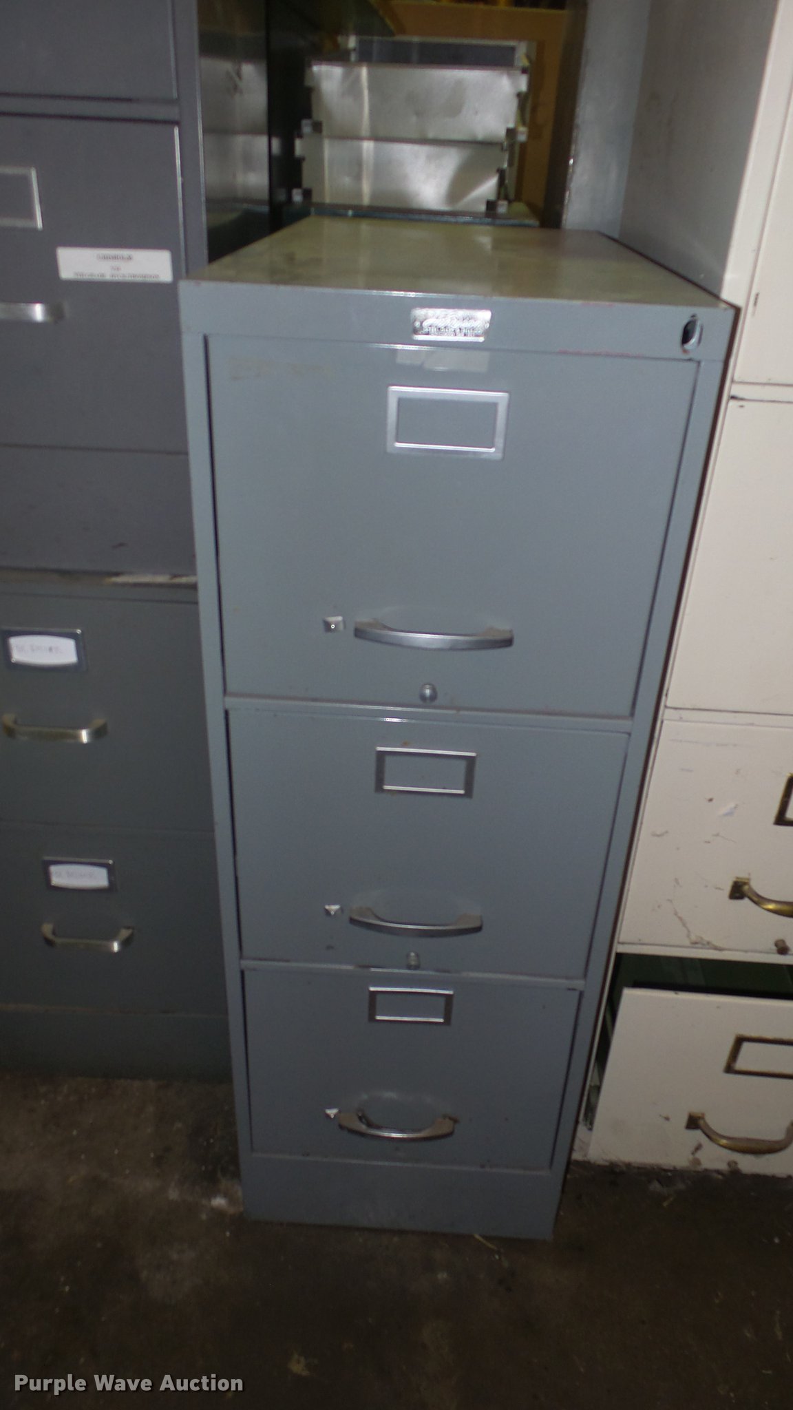 Purple Wave is selling a used Office Supplies and Equip. in Kansas. This item is a (21) filing cabinets with the following: (2) five drawer, (12) four drawer, (4) three drawer, (3) two drawer