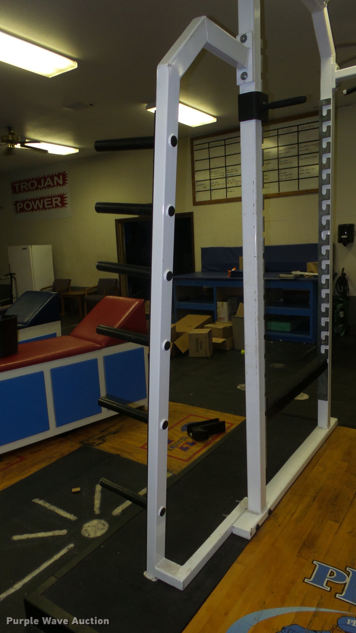 Purple Wave is selling a used Sporting Goods in Kansas. This item is a Prostar steel squat rack with the following: Approx. 77" x 80" x 10'H, Adjustable bar heights, Platform not included