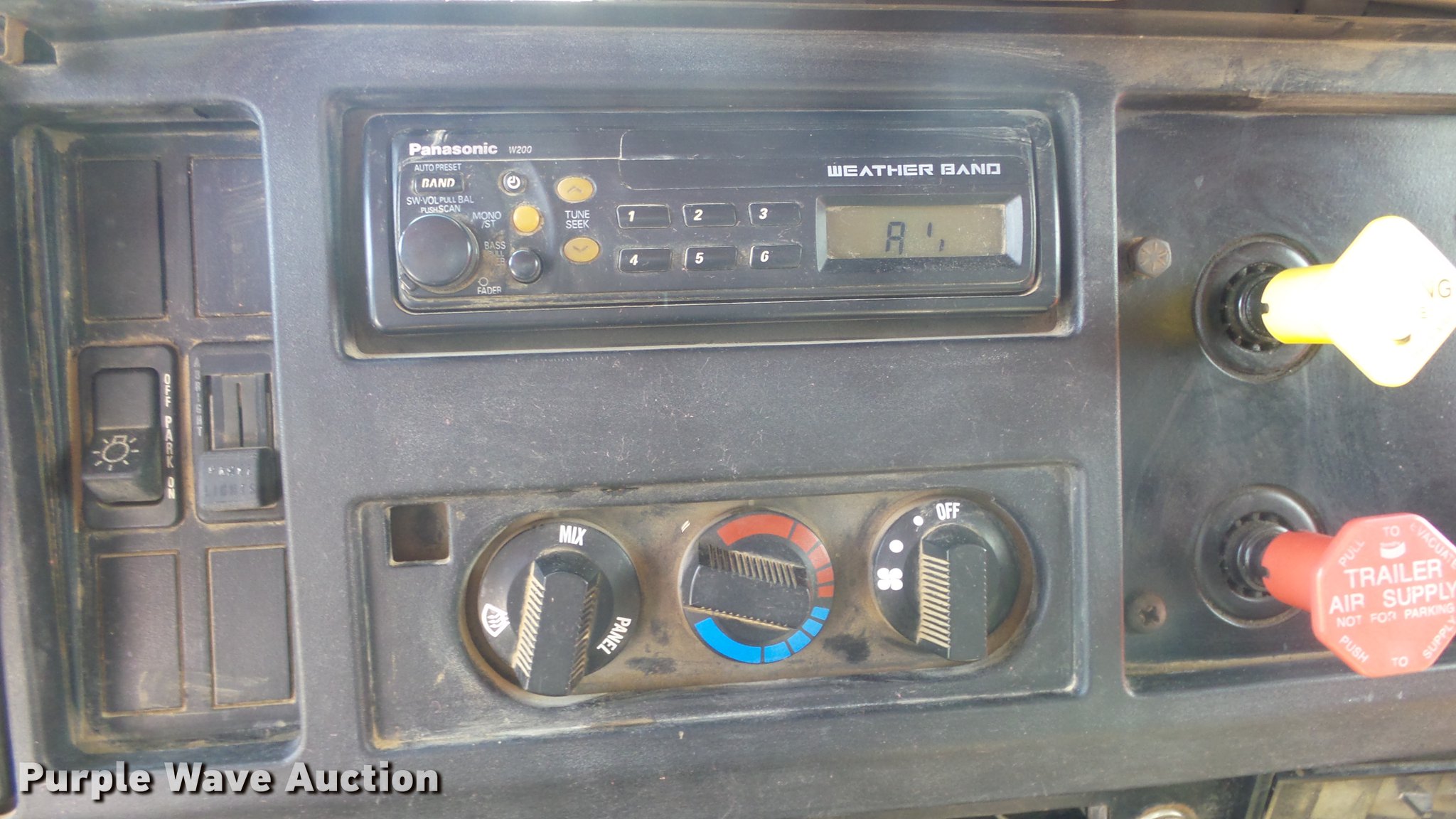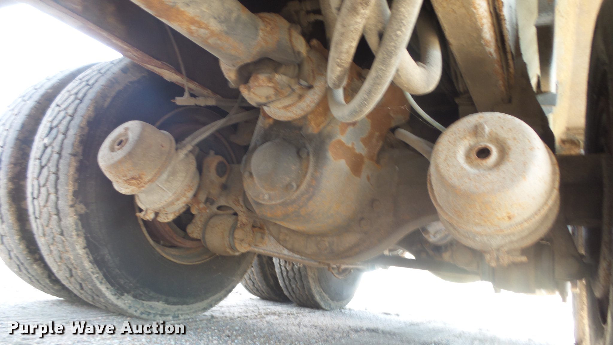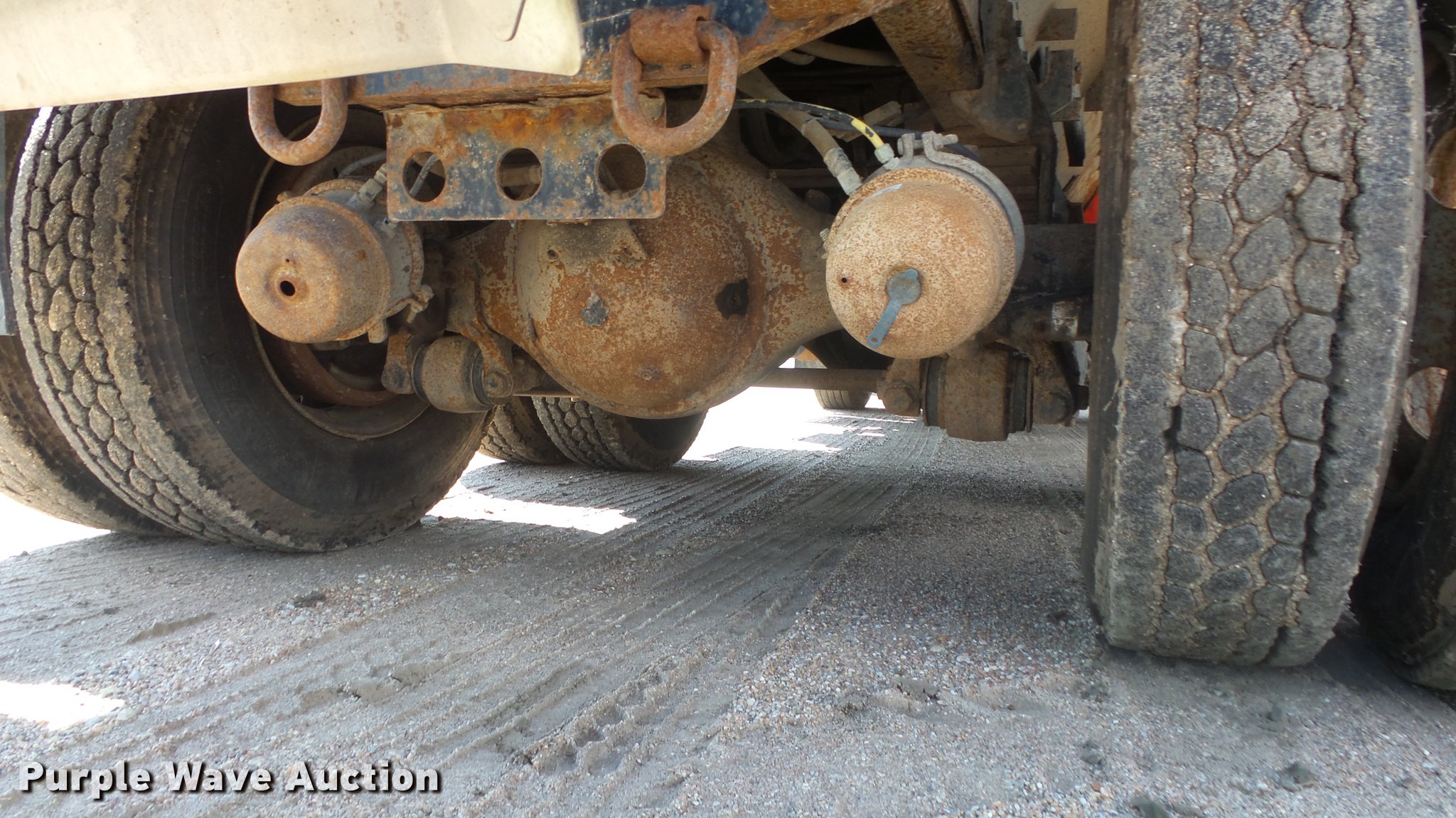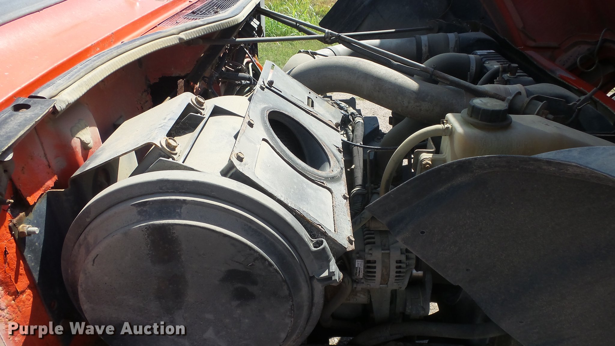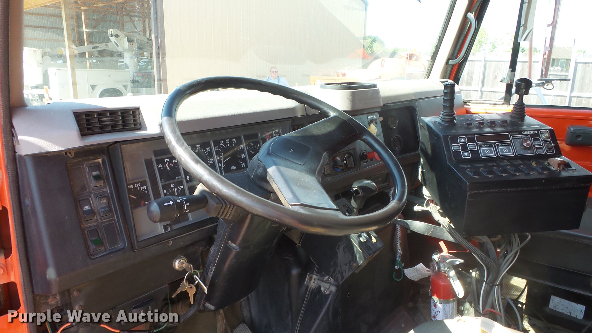 Purple Wave is selling a used Construction Dump Truck in Kansas. This item is a 1999 International 4900 dump truck with the following: 221,883 miles on odometer, 10,223 hours on meter, International DT530 8.7L L6 diesel engine, Automatic transmission, Tandem axle, Power divider lock, AC and heat, Cruise, Heated mirrors, Air suspension seat, Vinyl interior, Beacon light, Gresen cab controls, 13'L x 8'W steel dump bed, 45" side height, Roll tarp, 11'W plow, Lights, Stainless steel spreader, Single fuel tank, Pintle hitch, Spring suspension, Air brakes, 11R22.5 front tires, 295/75R22.5 rear tires