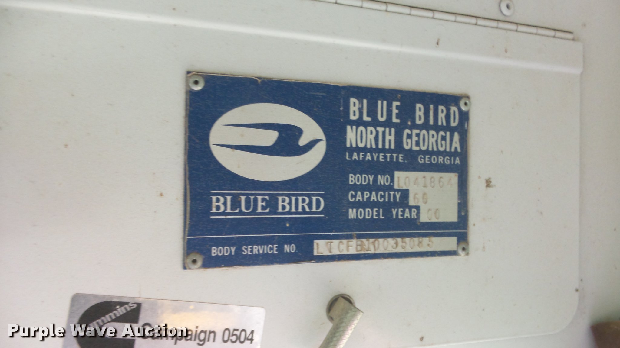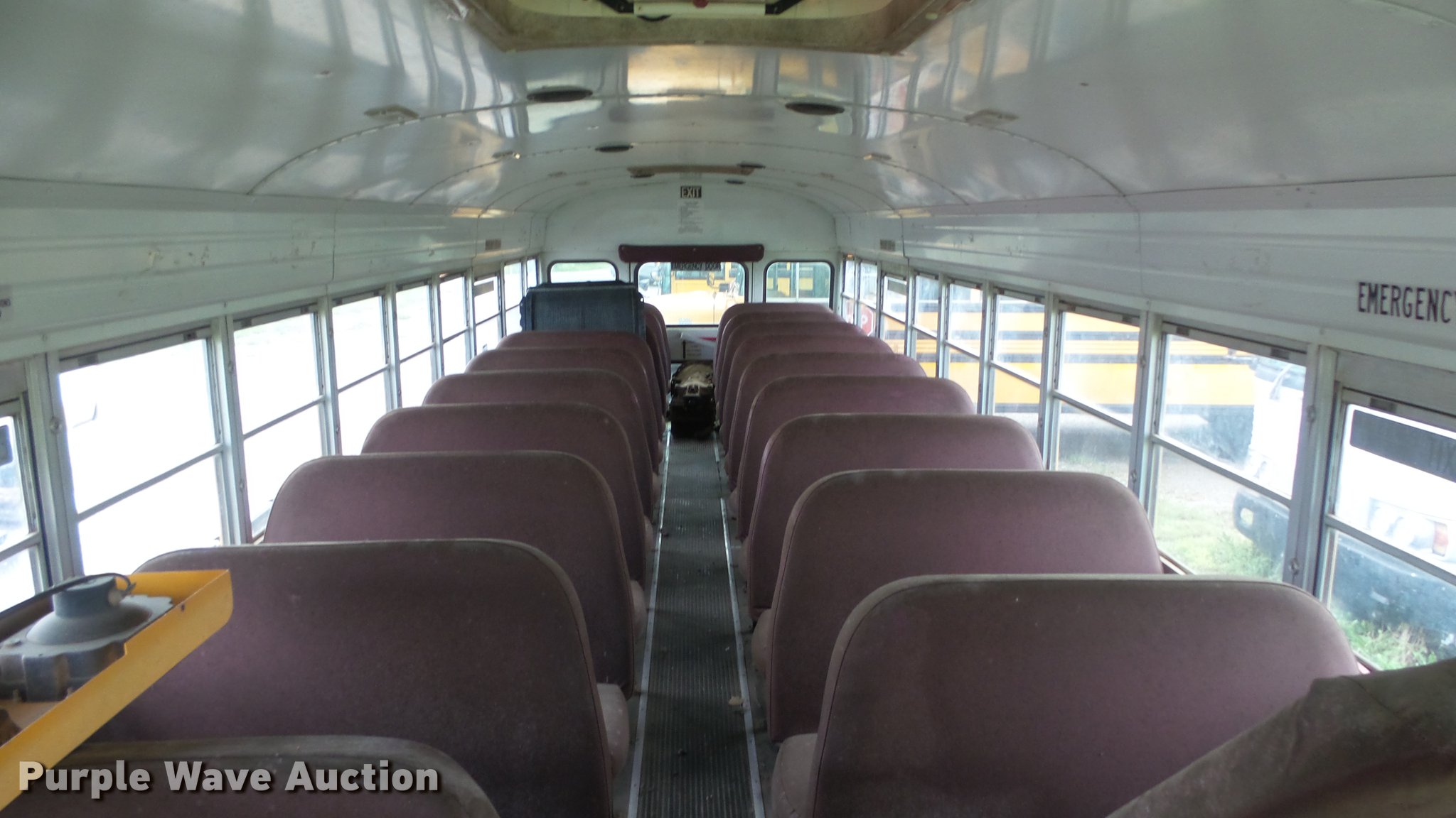 Purple Wave is selling a used Bus in Kansas. This item is a 2000 Blue Bird TC2000 school bus with the following: Unknown miles on odometer, Cummins ISB 5.9L L6 diesel engine, Automatic transmission, Single axle, Heat, Vinyl interior, 60 passenger capacity, Roof, side, and rear emergency exits, Hydraulic brakes, 10R22.5 tires, Front bumper missing, Parts missing, Non-operational unit