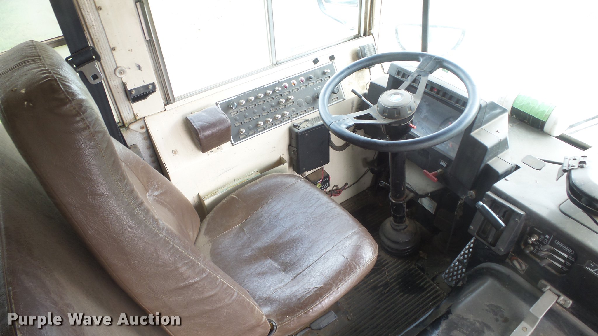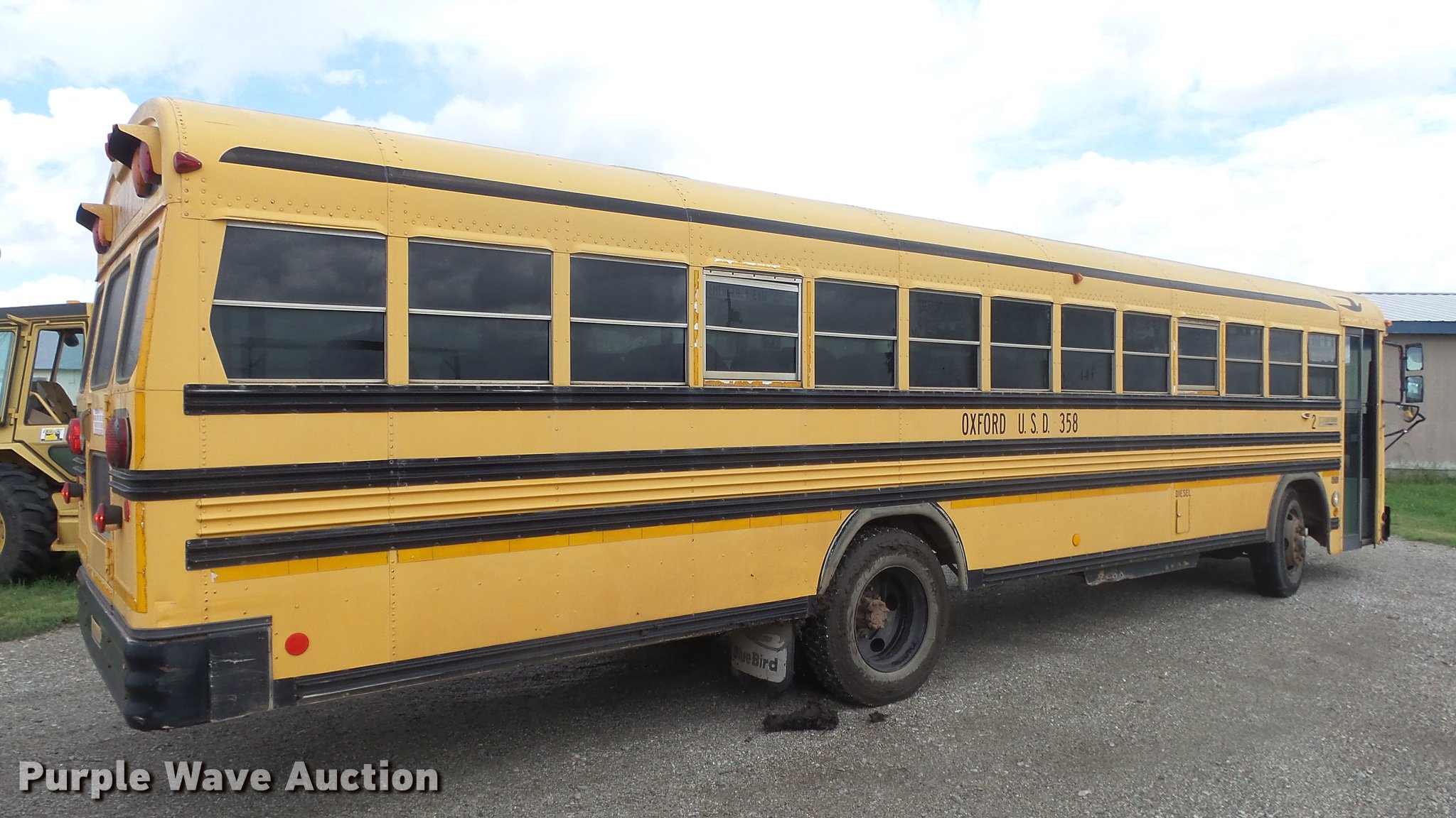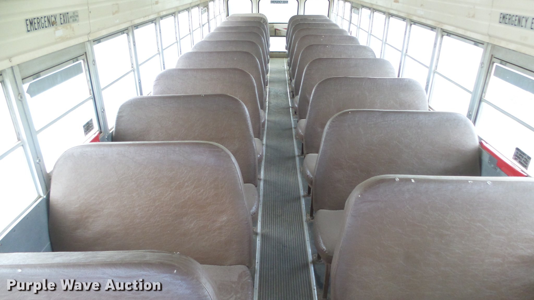 Purple Wave is selling a used Bus in Kansas. This item is a 1996 Blue Bird TC2000 school bus with the following: 227,482 miles on odometer, Cummins 5.9L L6 diesel engine, Automatic transmission, Single axle, Heat, AM/FM, Vinyl interior, Light monitor, 66 passenger capacity, Roof, side, and rear egress, Hydraulic brakes, 10R22.5 tires